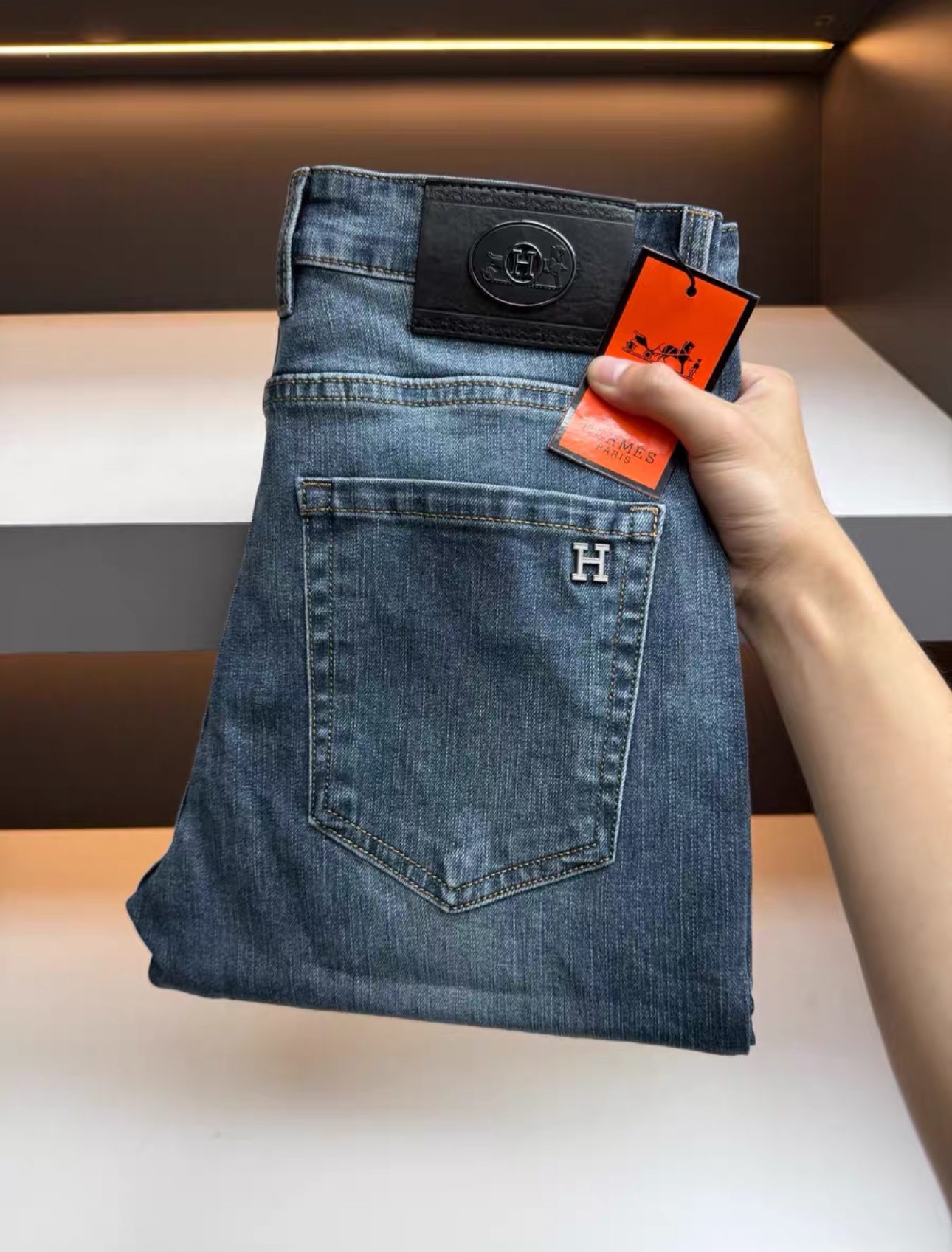 Hermès new men's jeans, slim fit stretch, slimming, advanced washing process, versatile style 29-40.