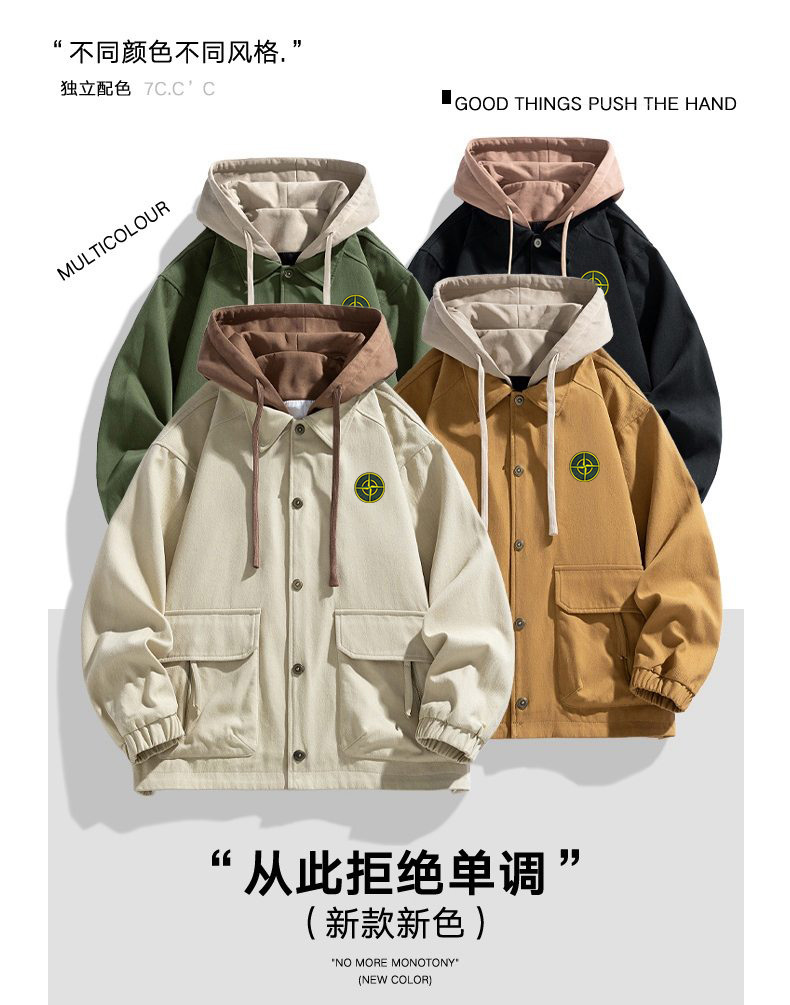 High-quality Stone Island 25SS men's hooded jacket, 4 colors, unisex, loose fit, durable cotton. Sizes M-4XL.
