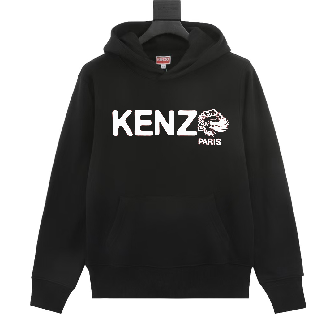 KENZO new print hoodie, 420g terry. Colors: Black, Gray. Sizes: XS-L.