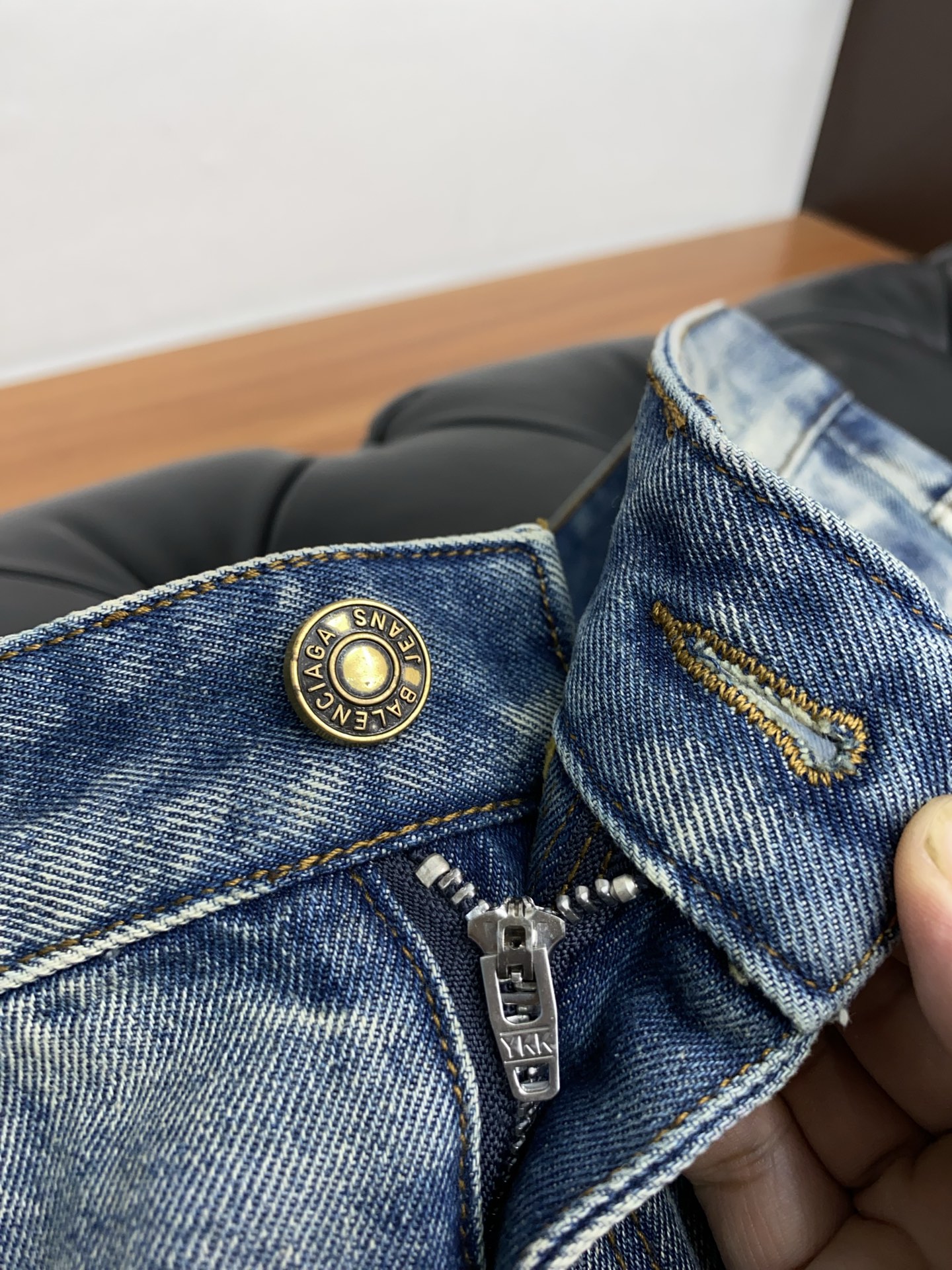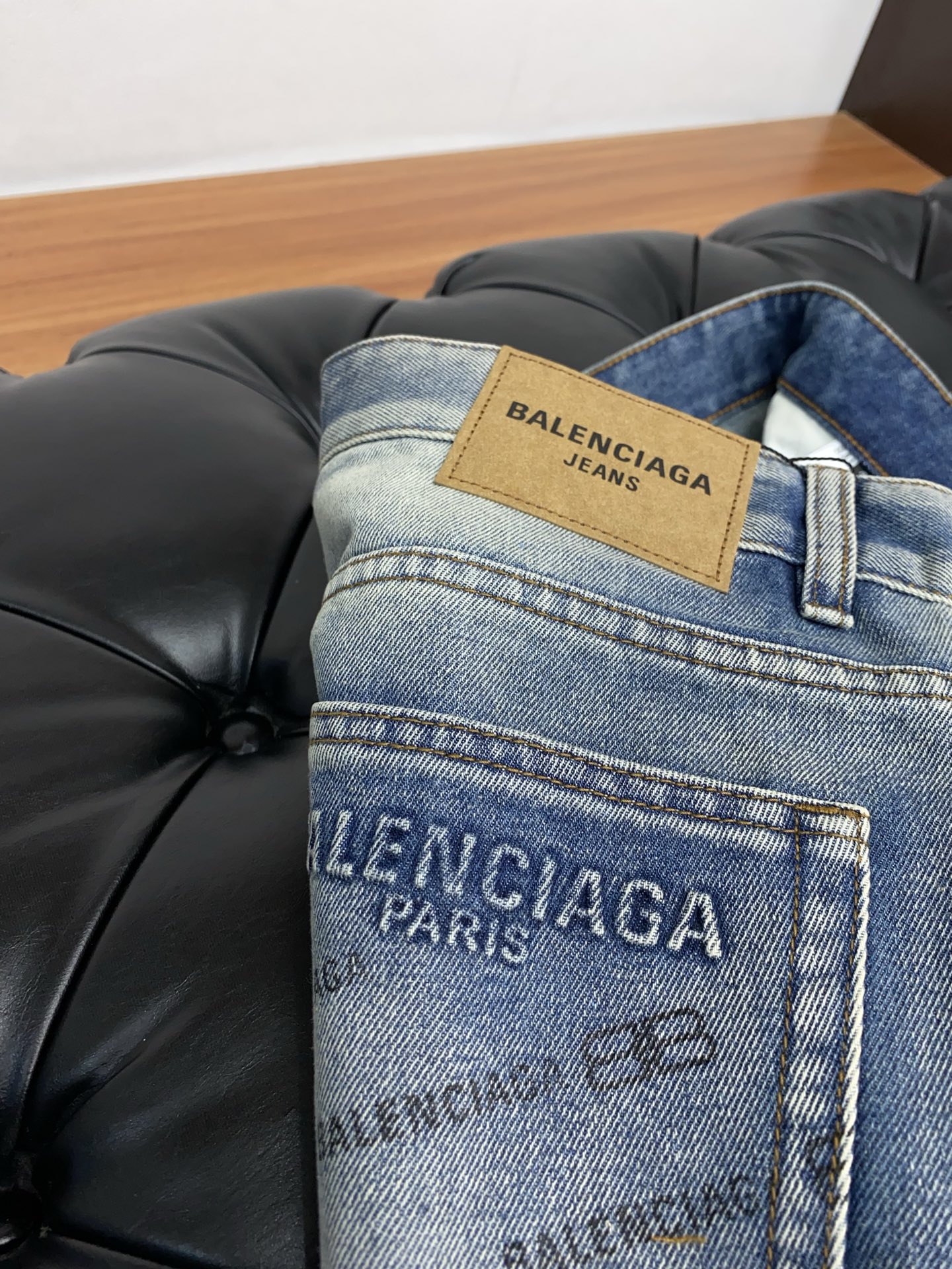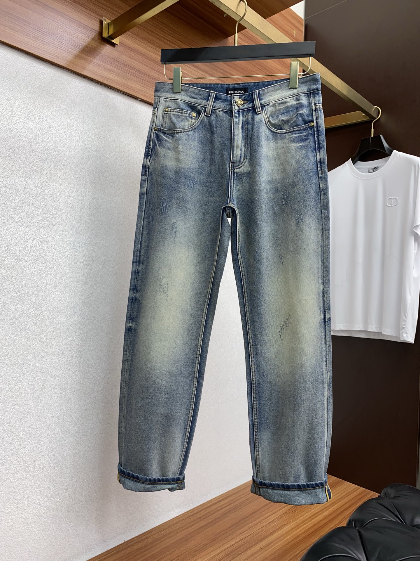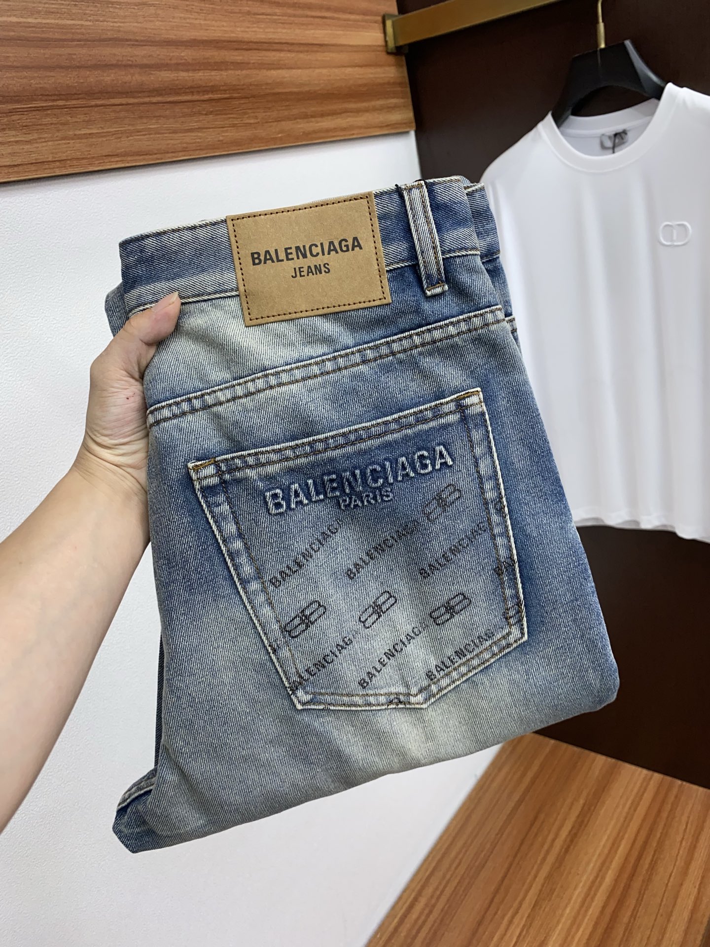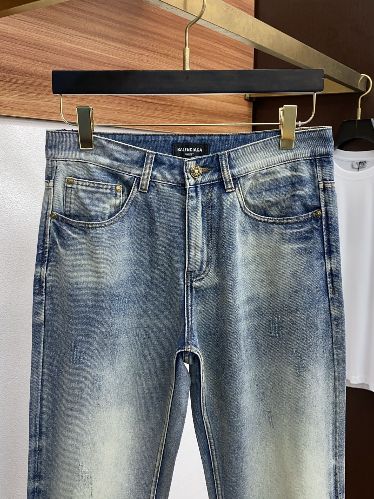 Balenciaga 2025SS slim straight jeans, custom logo, stretch fabric, sizes 30-38 (no 35,37).