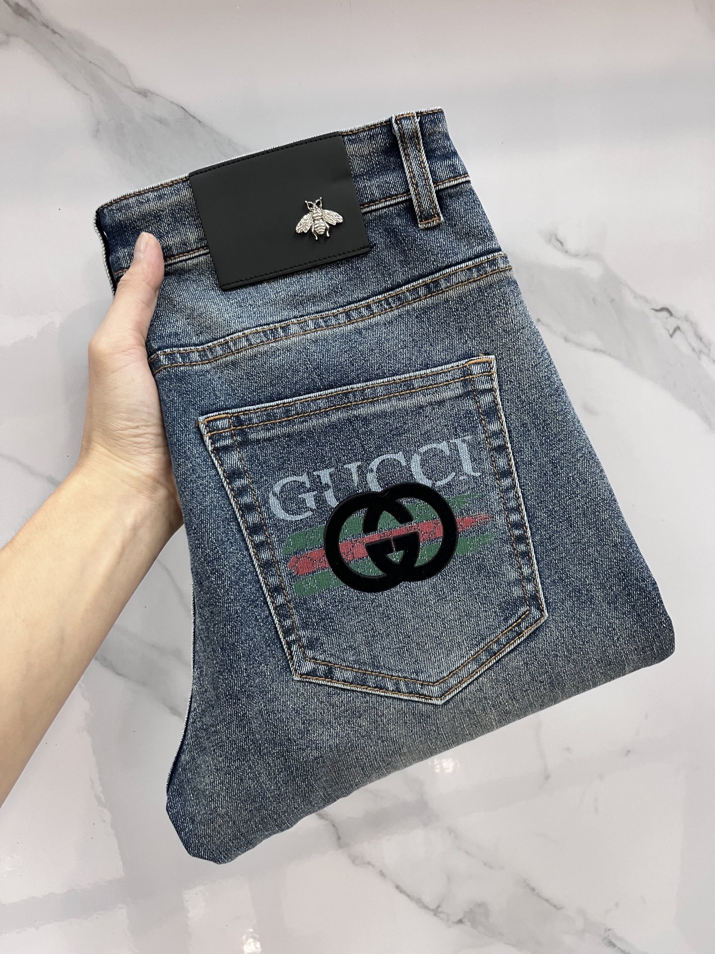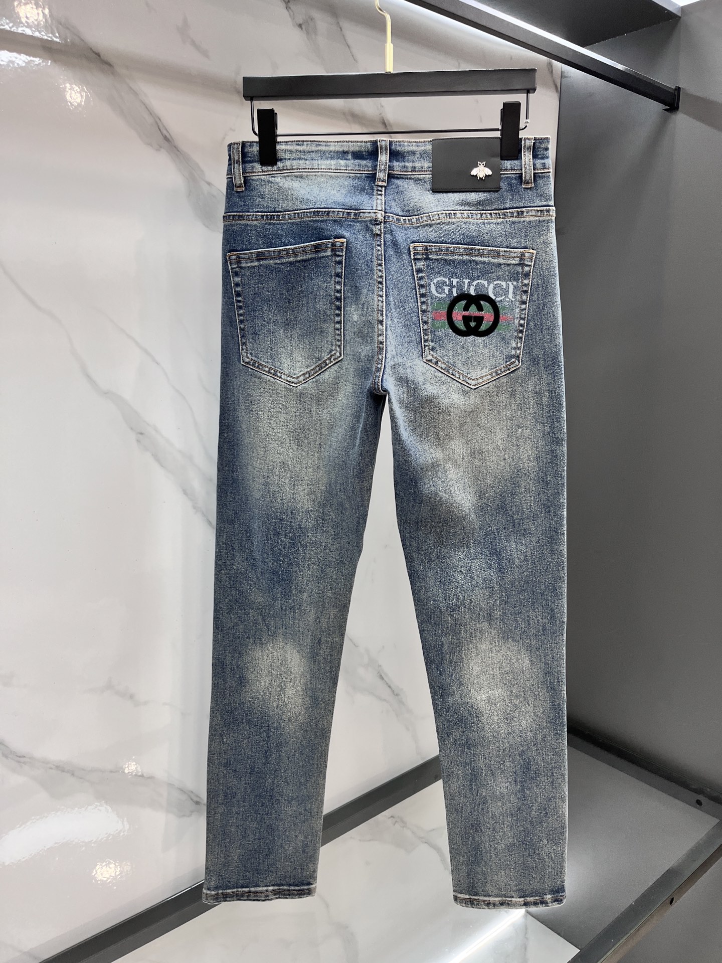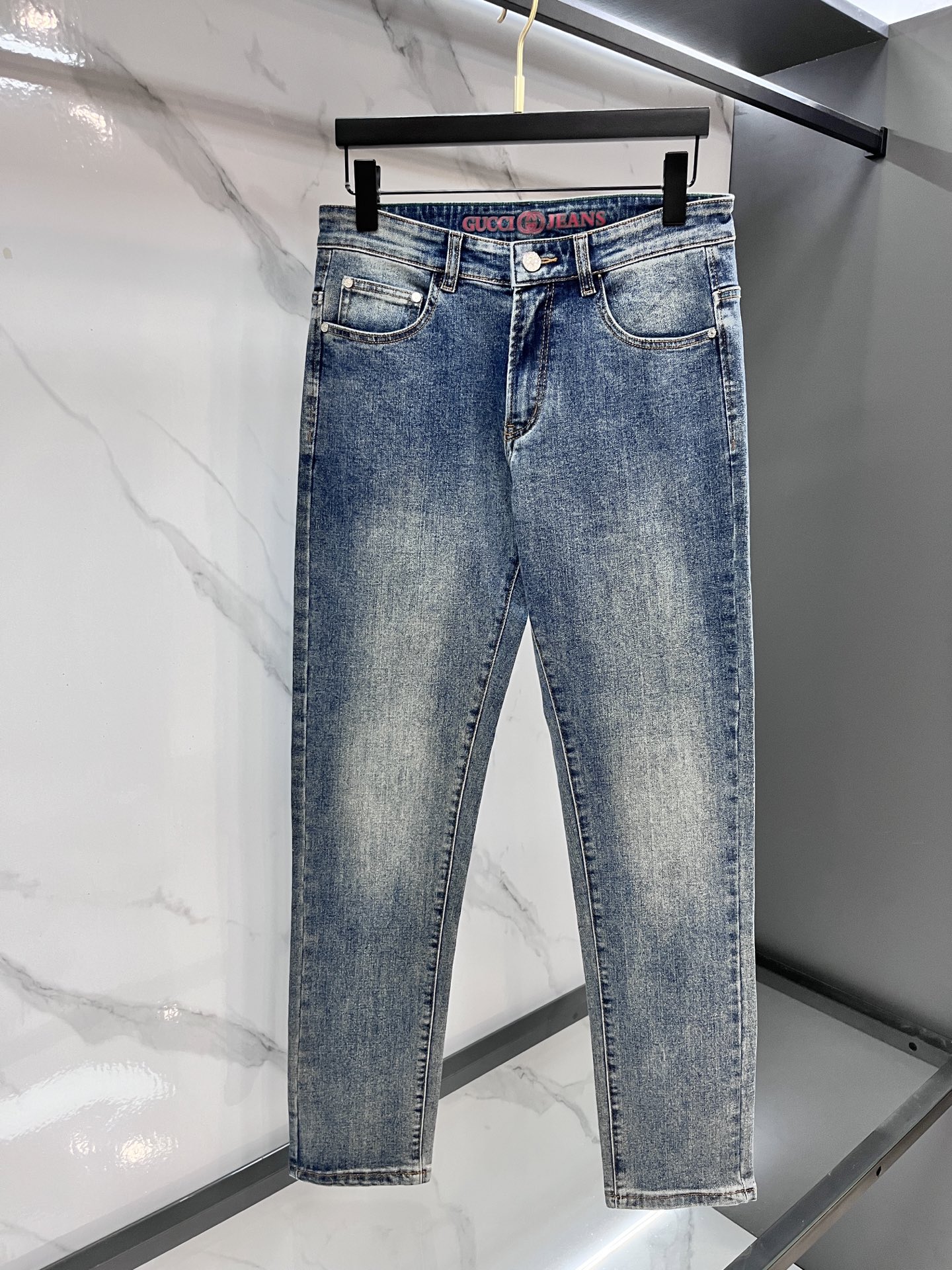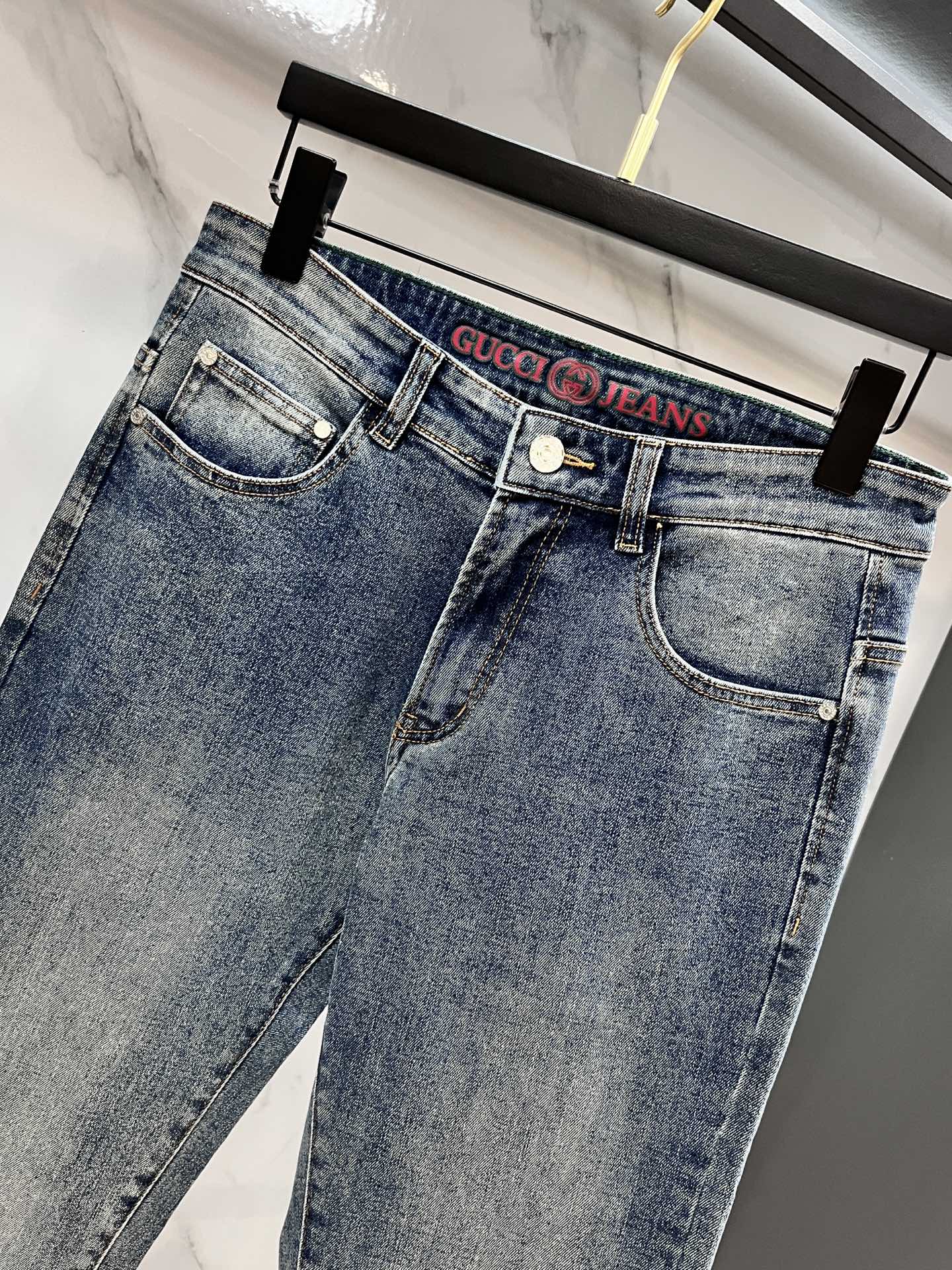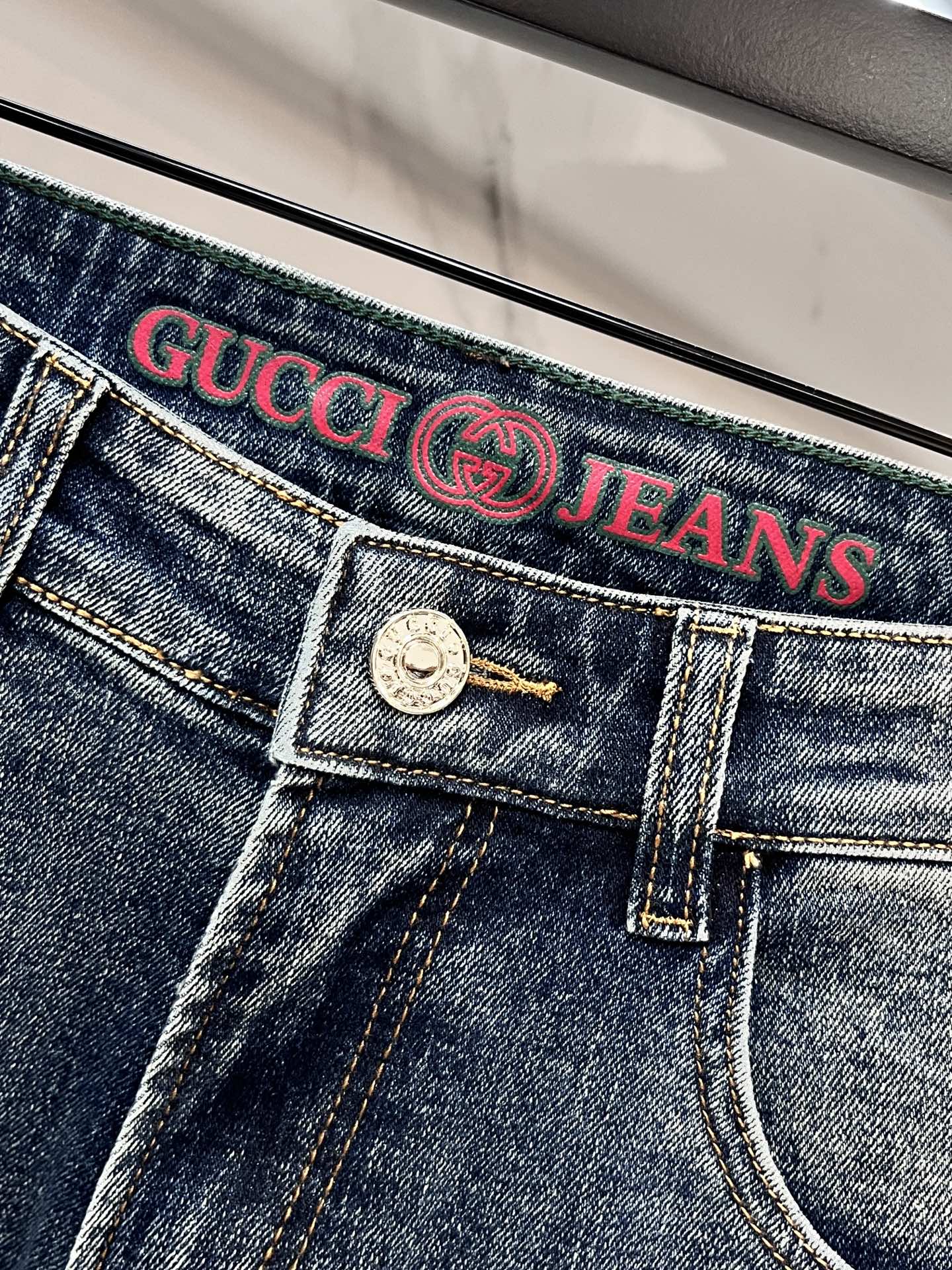 GUCCI 2025SS early spring lightweight distressed jeans. Imported stretch denim, comfortable & breathable. Metal trim, excellent fit. Sizes 29-40.