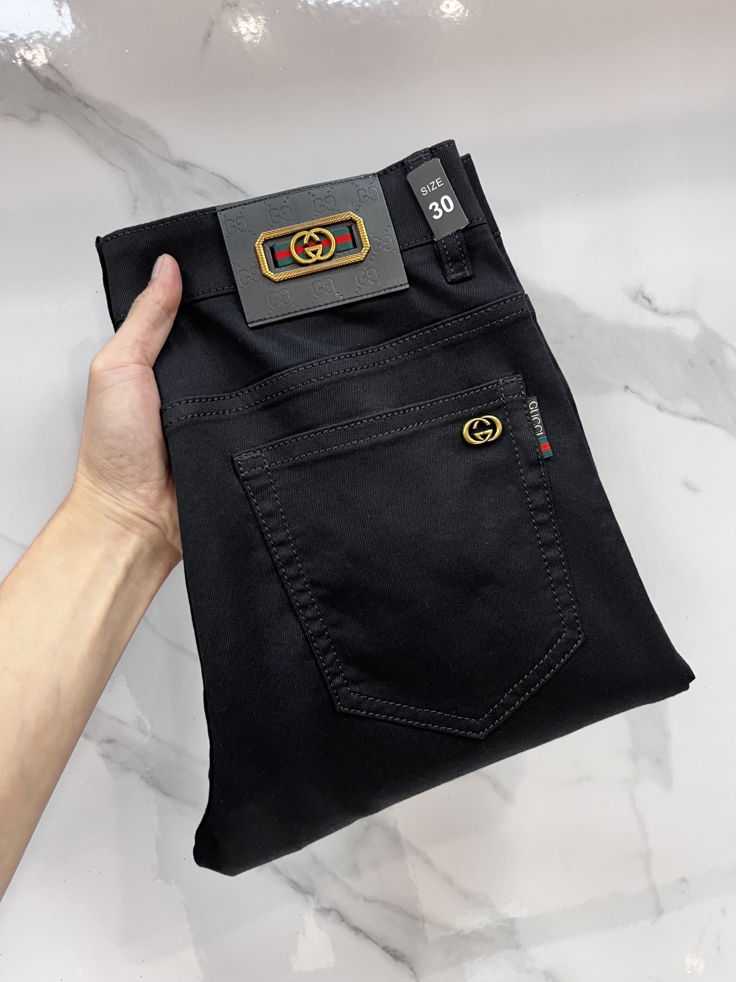 Gucci 2025SS early spring lightweight jeans. Imported elastic fabric, comfortable and breathable. High-quality hardware. Flattering fit. Sizes 29-38.