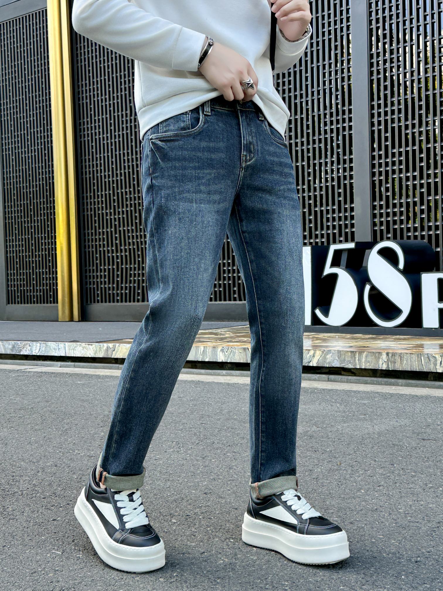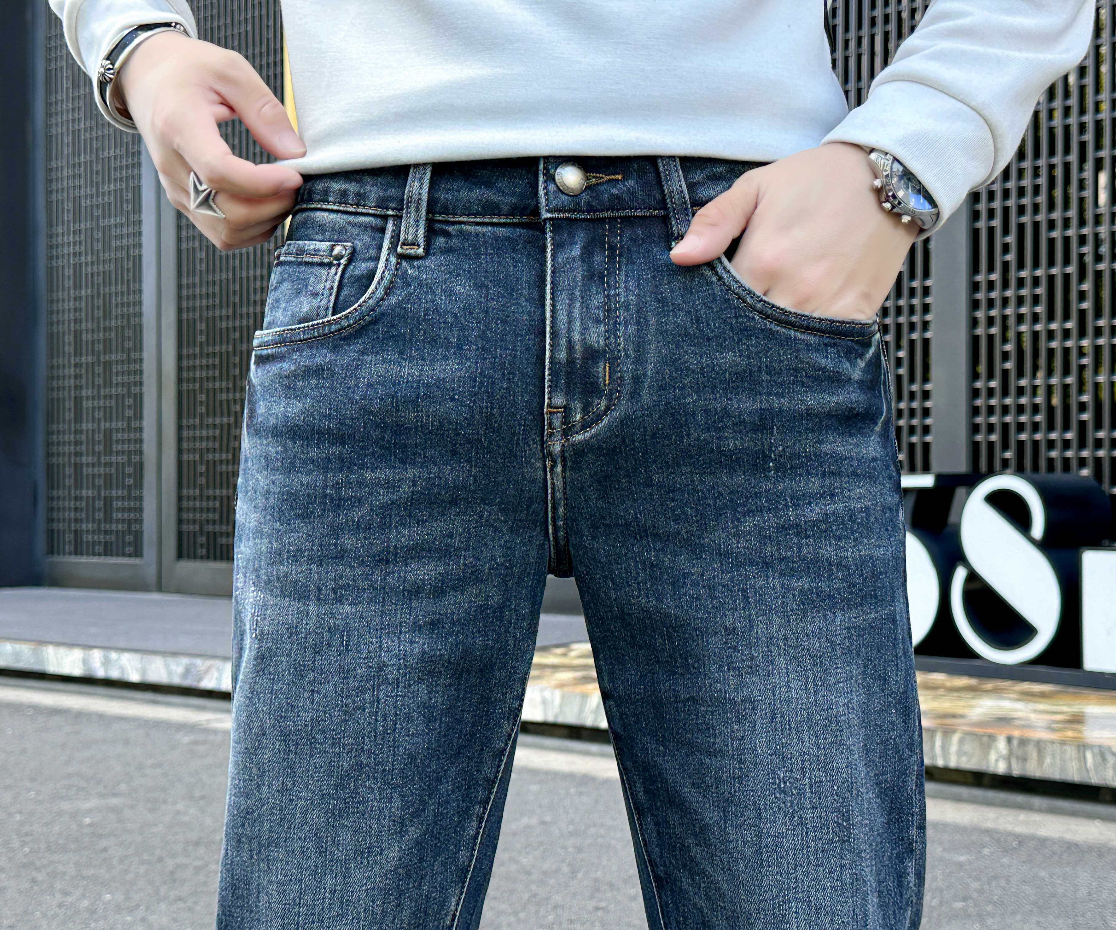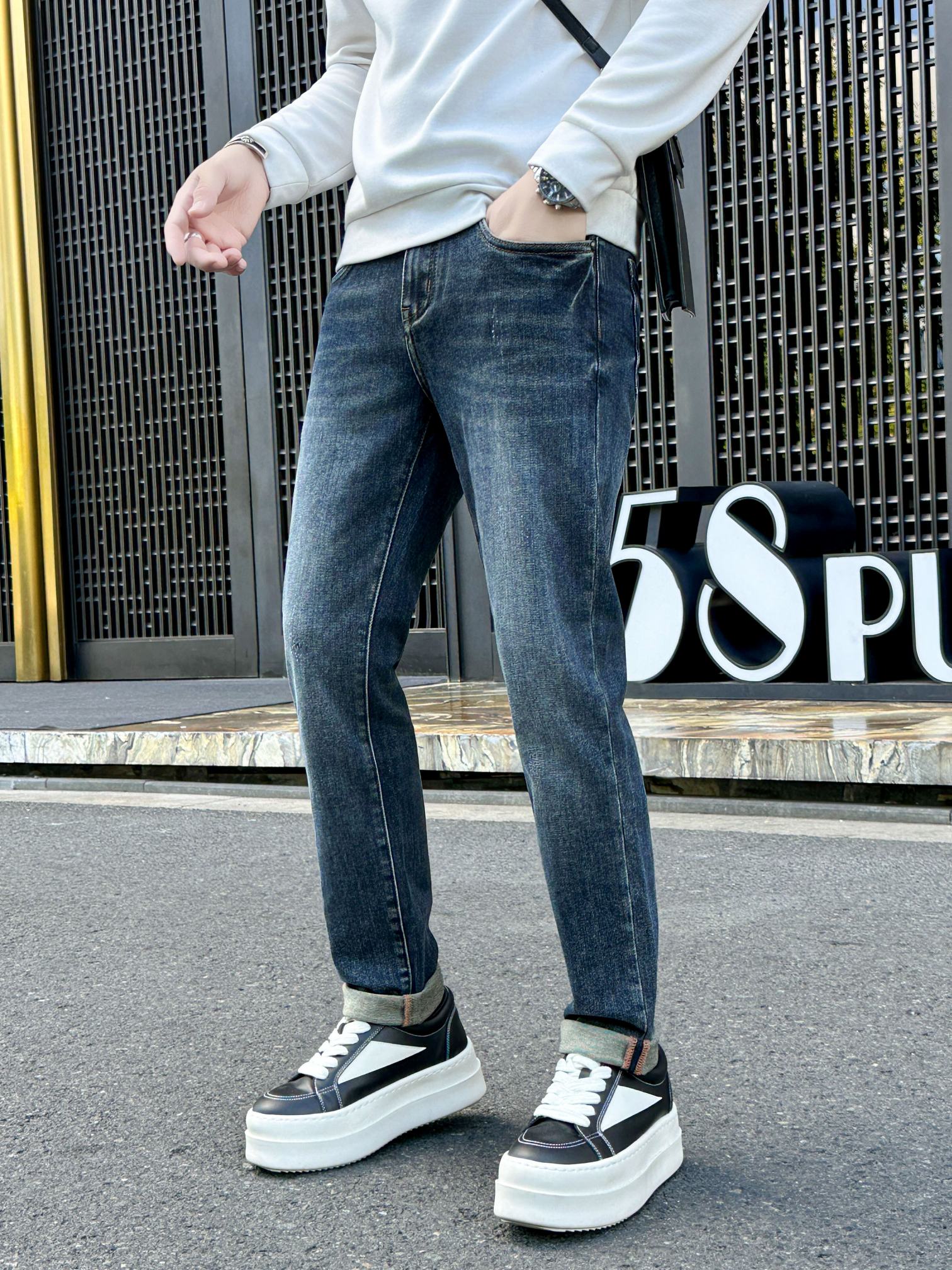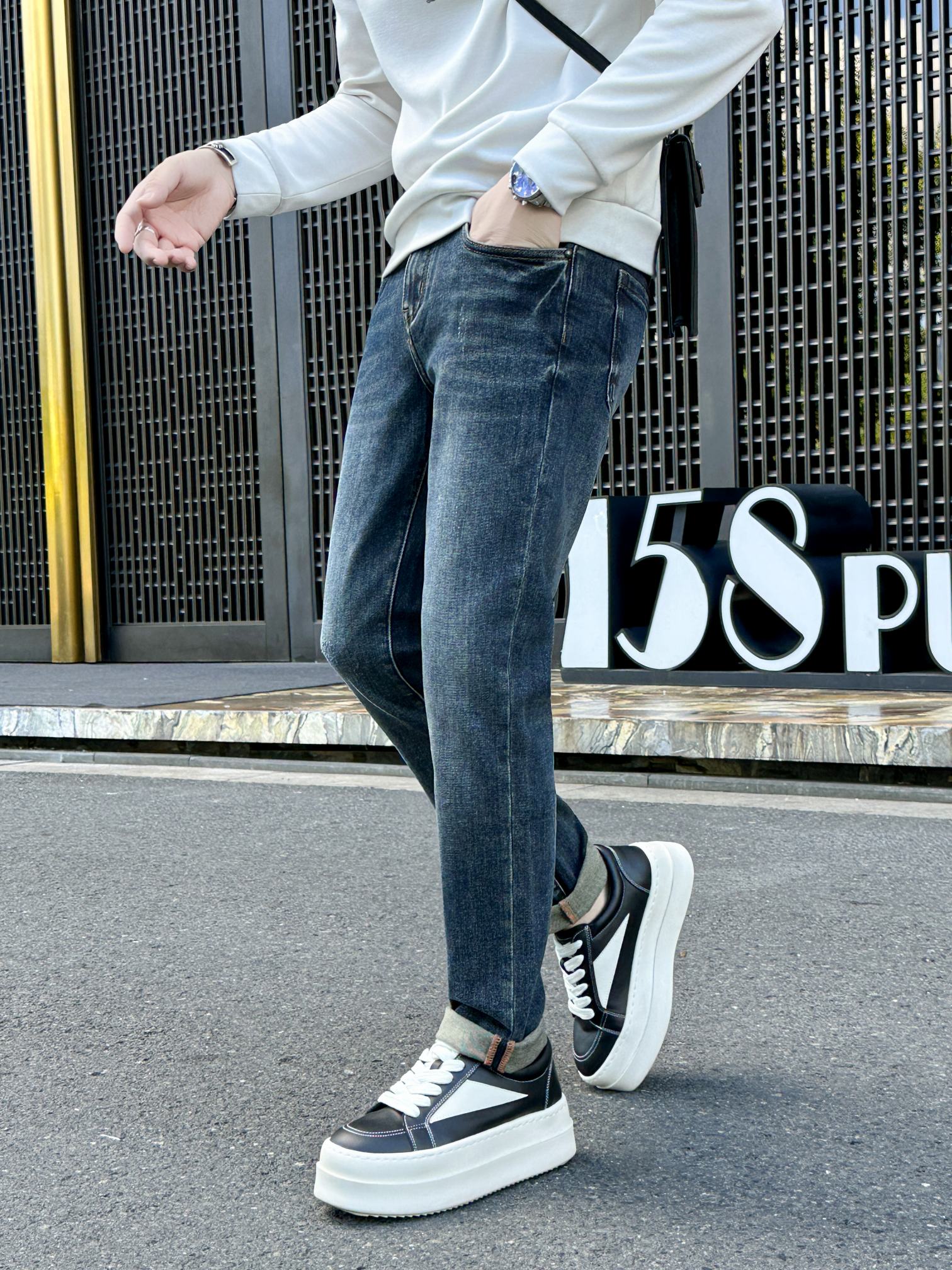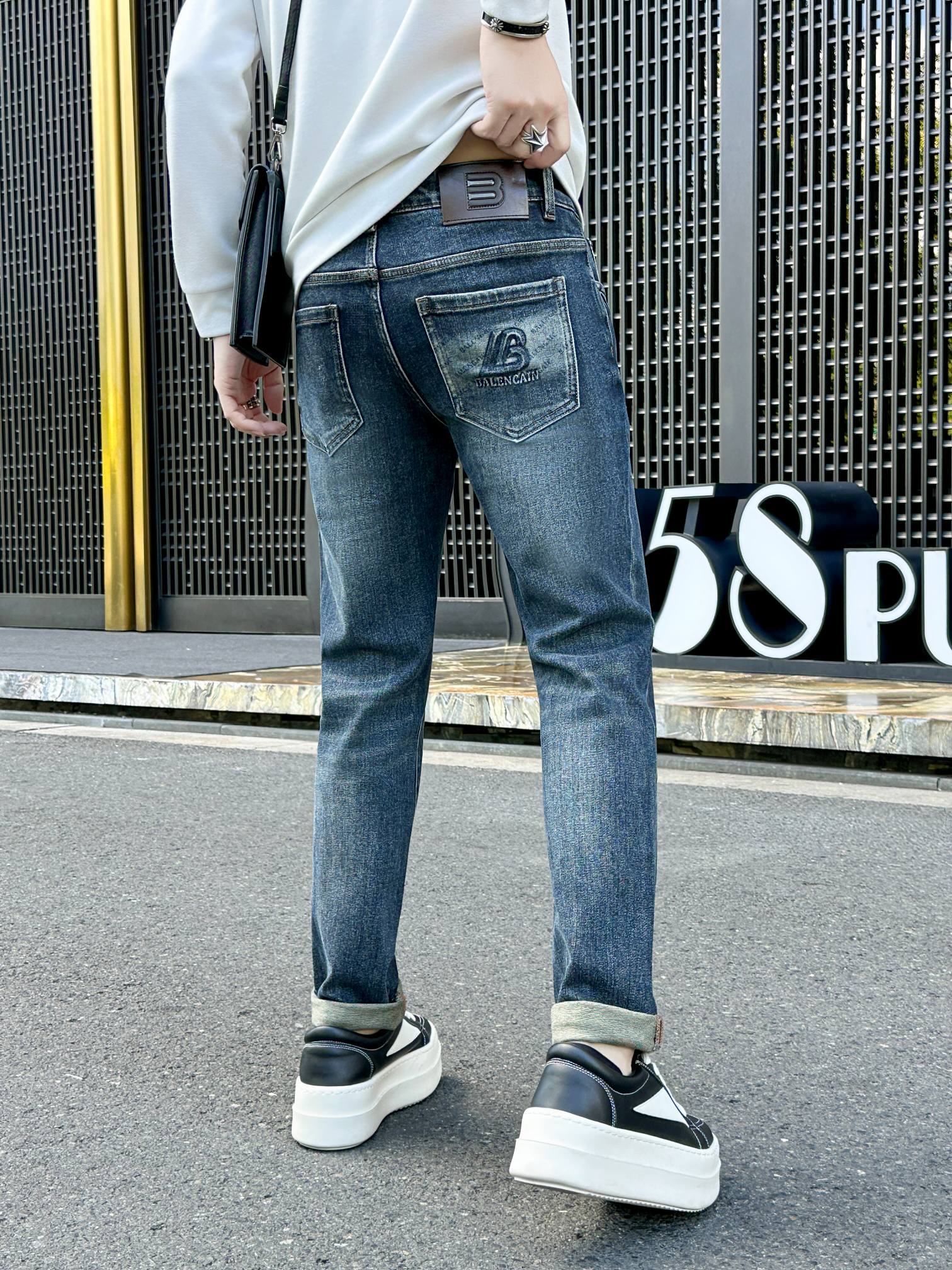 Balenciaga 2025 jeans with original fabric, soft stretch, durable. Leather patch, versatile casual design. Sizes: 29-38 excl 35,37.