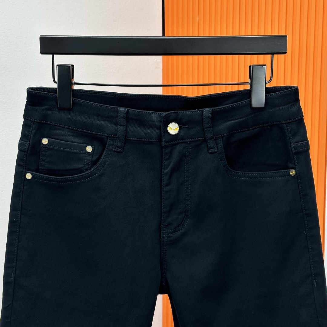 Fendi 2025SS Fall/Winter new straight-leg jeans. High-end custom luxury stretch denim, soft cotton blend. Classic hardware. Sizes 28-38 (no 37).