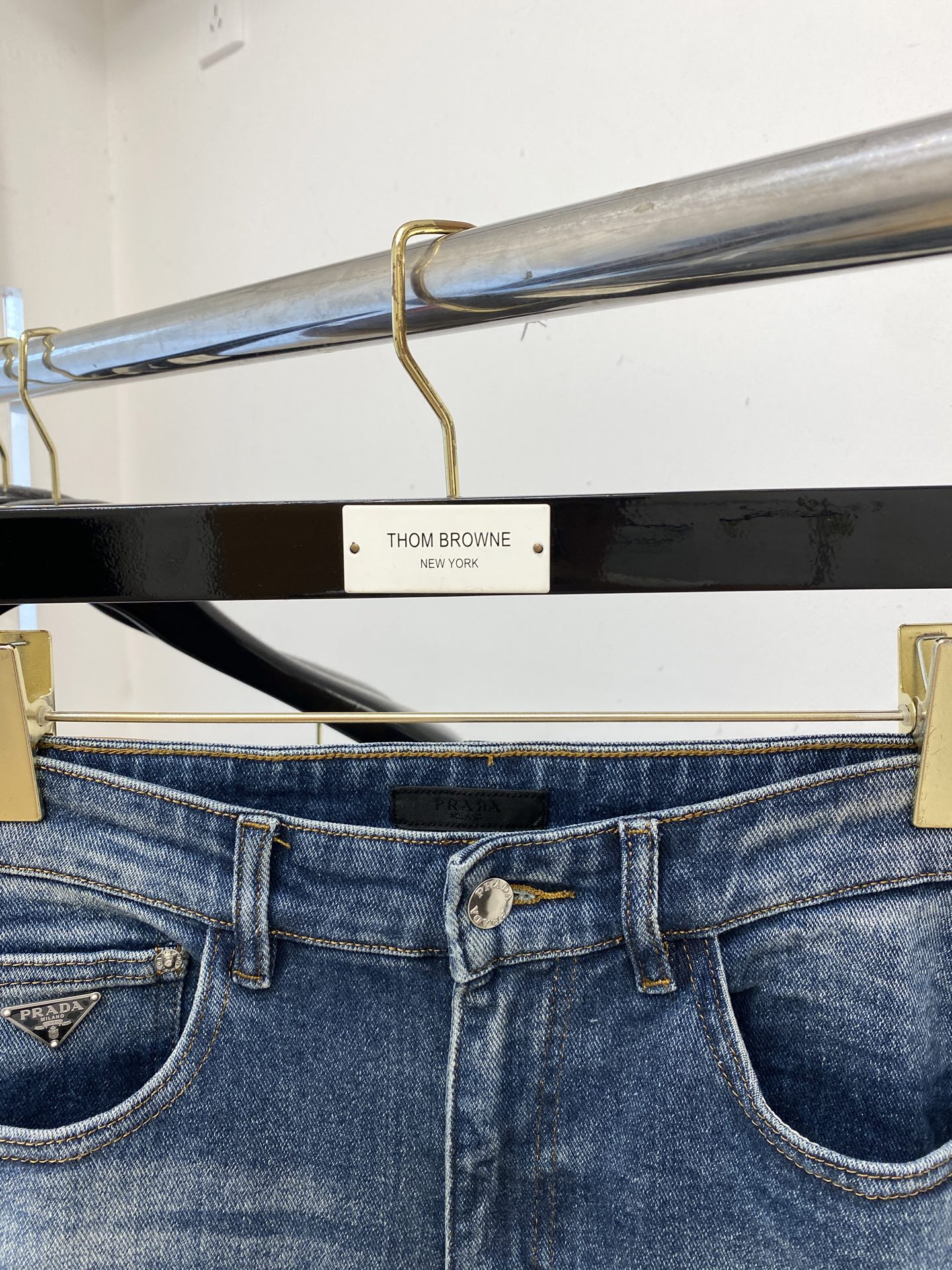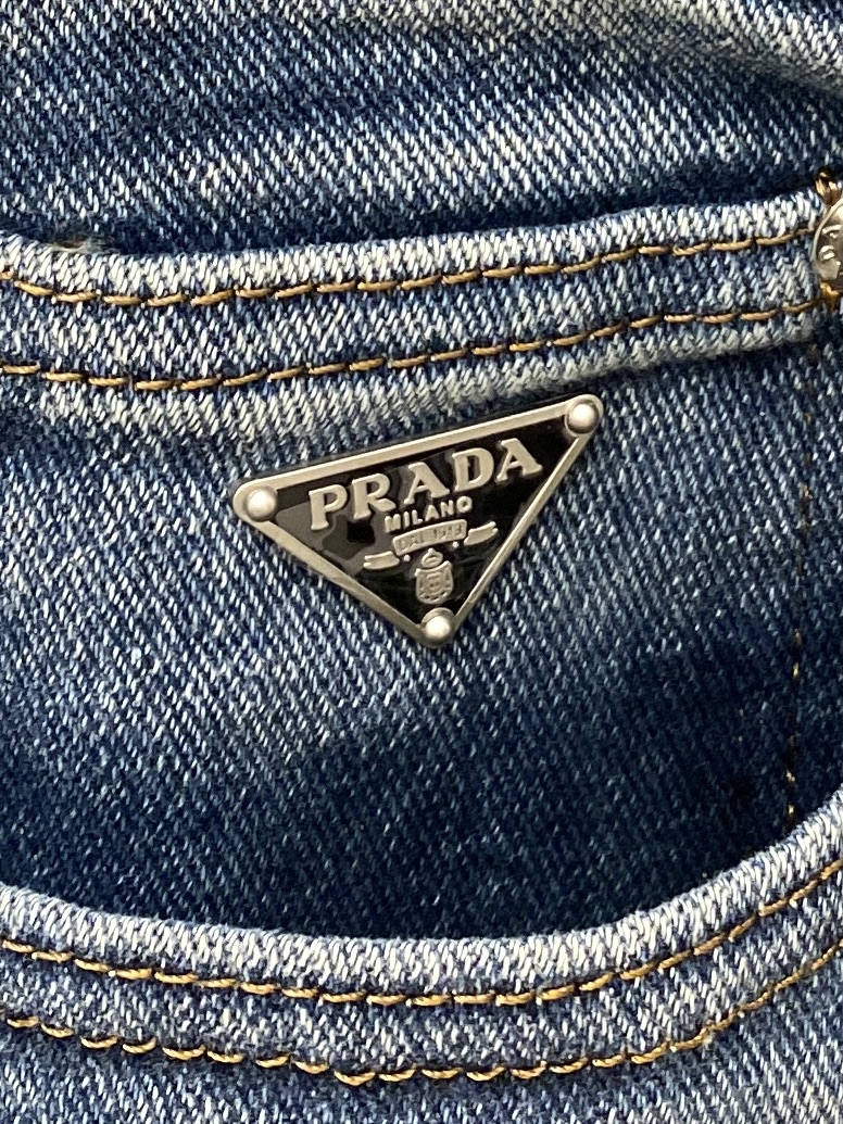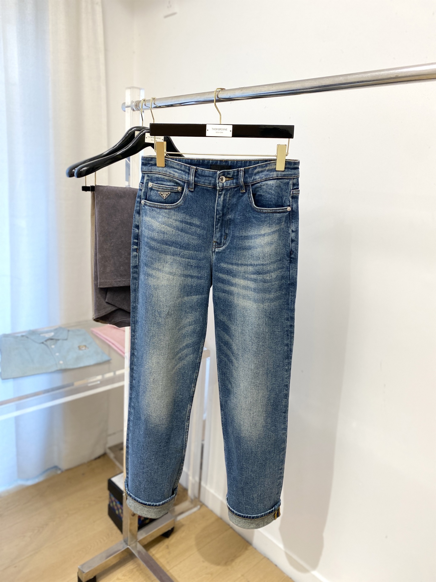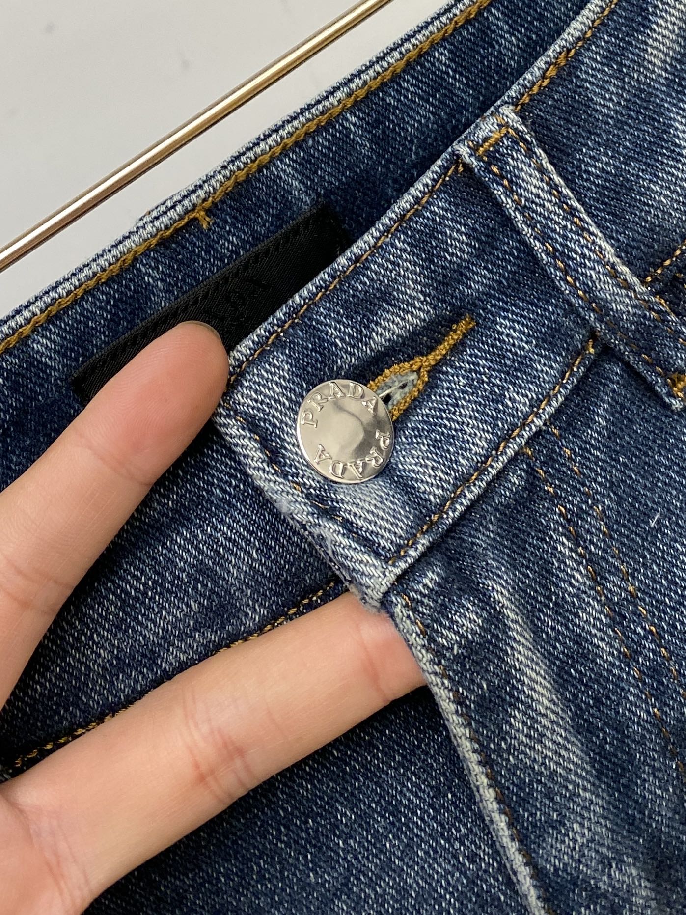 Prada 2025 latest jeans, store-synced, imported stretch denim, comfortable, original logo hardware, sizes 29-38.