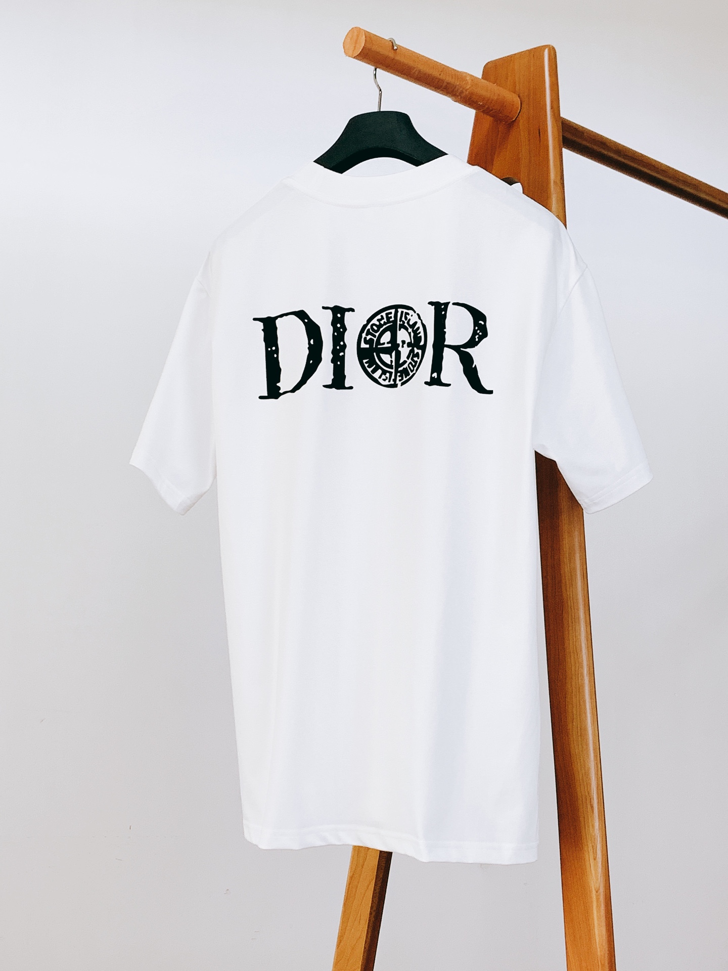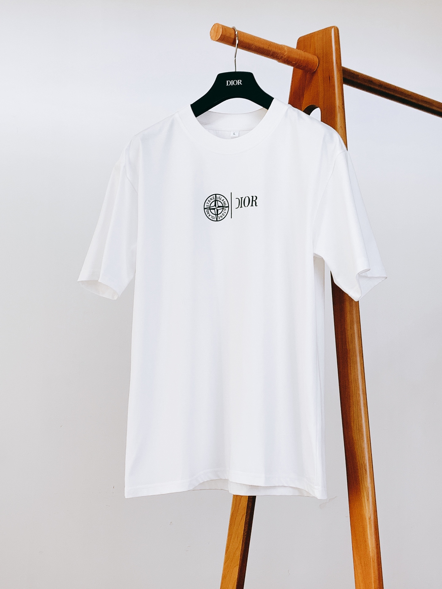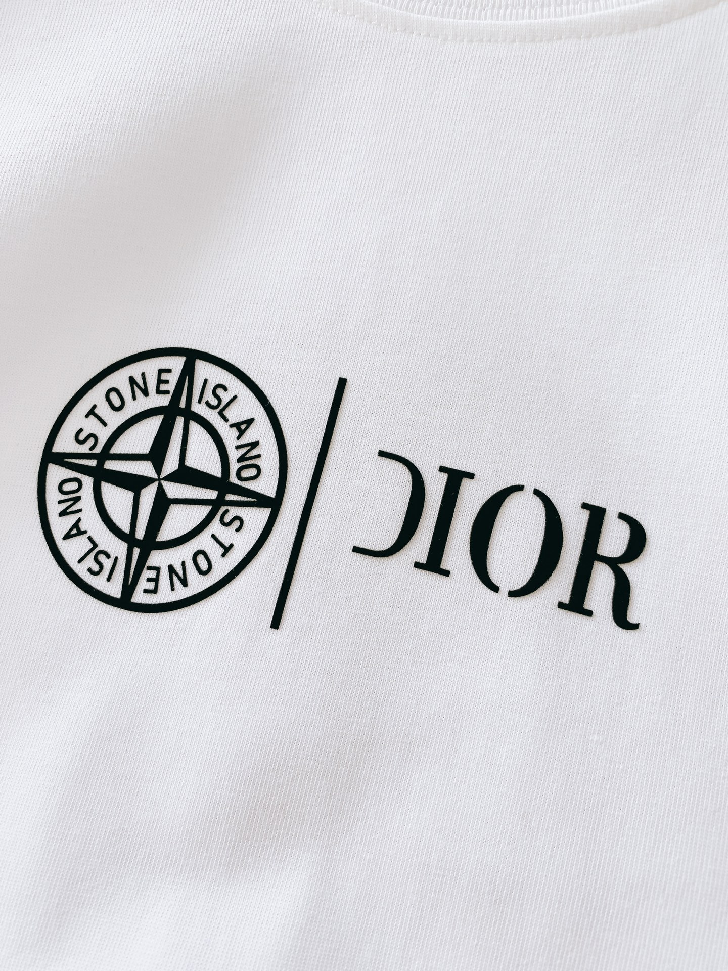 Dior Homme x Stone Island 2025SS collab T-shirt. High-quality cotton, breathable. Combines elegance with utility style. Front compass logo, back print. Sizes M-4XL.