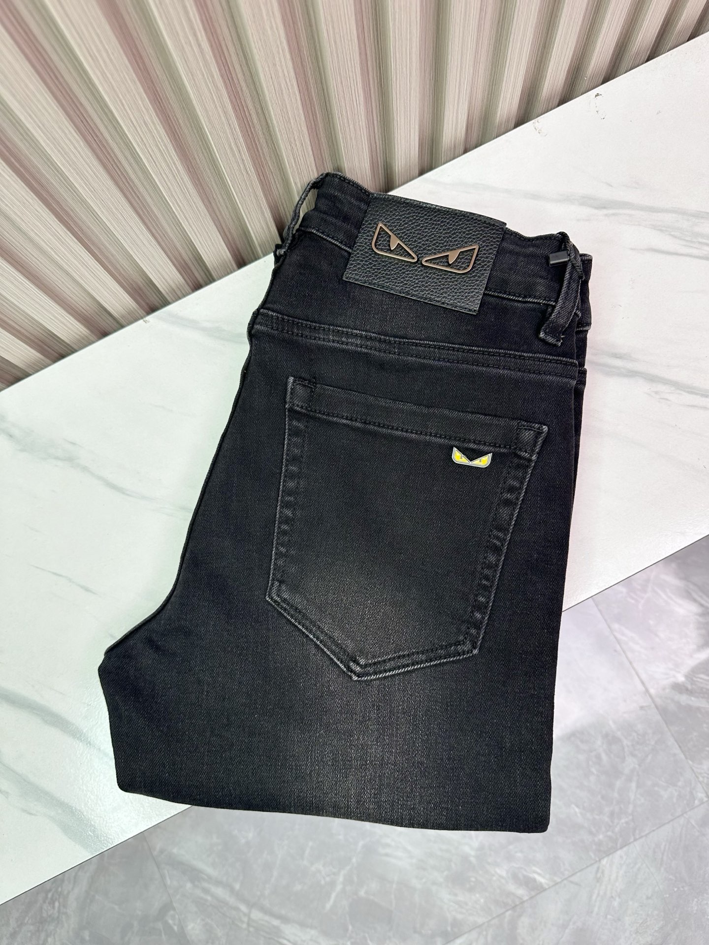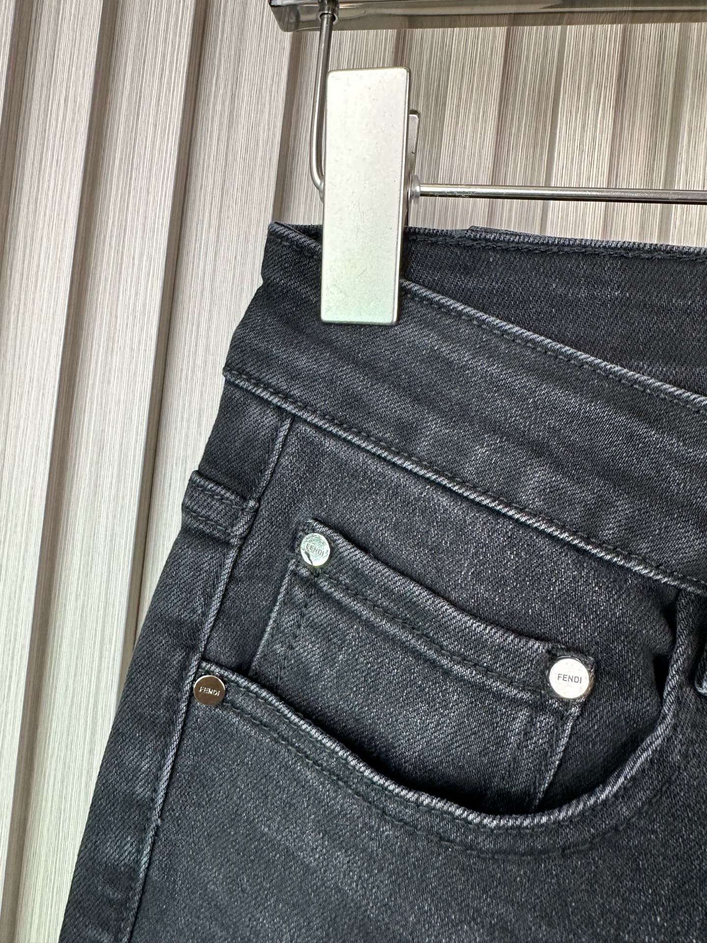 Classic Fendi jeans, slim-fit cotton stretch pants with heavy wash process. Comfortable, breathable, soft fabric. Must-have trendy item. Sizes 28-38.