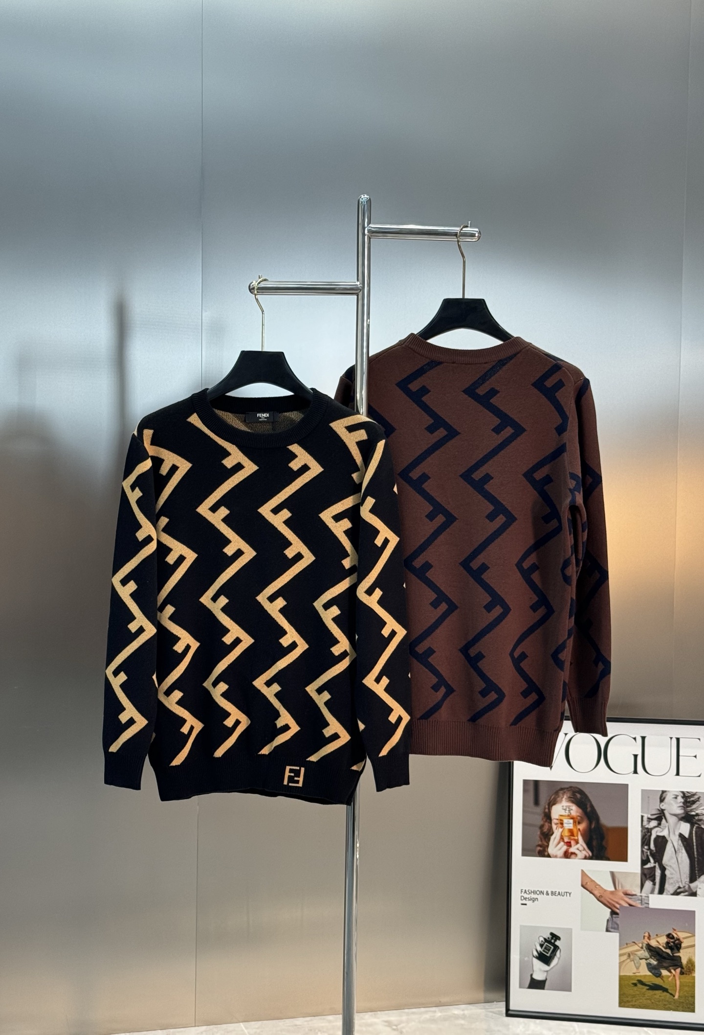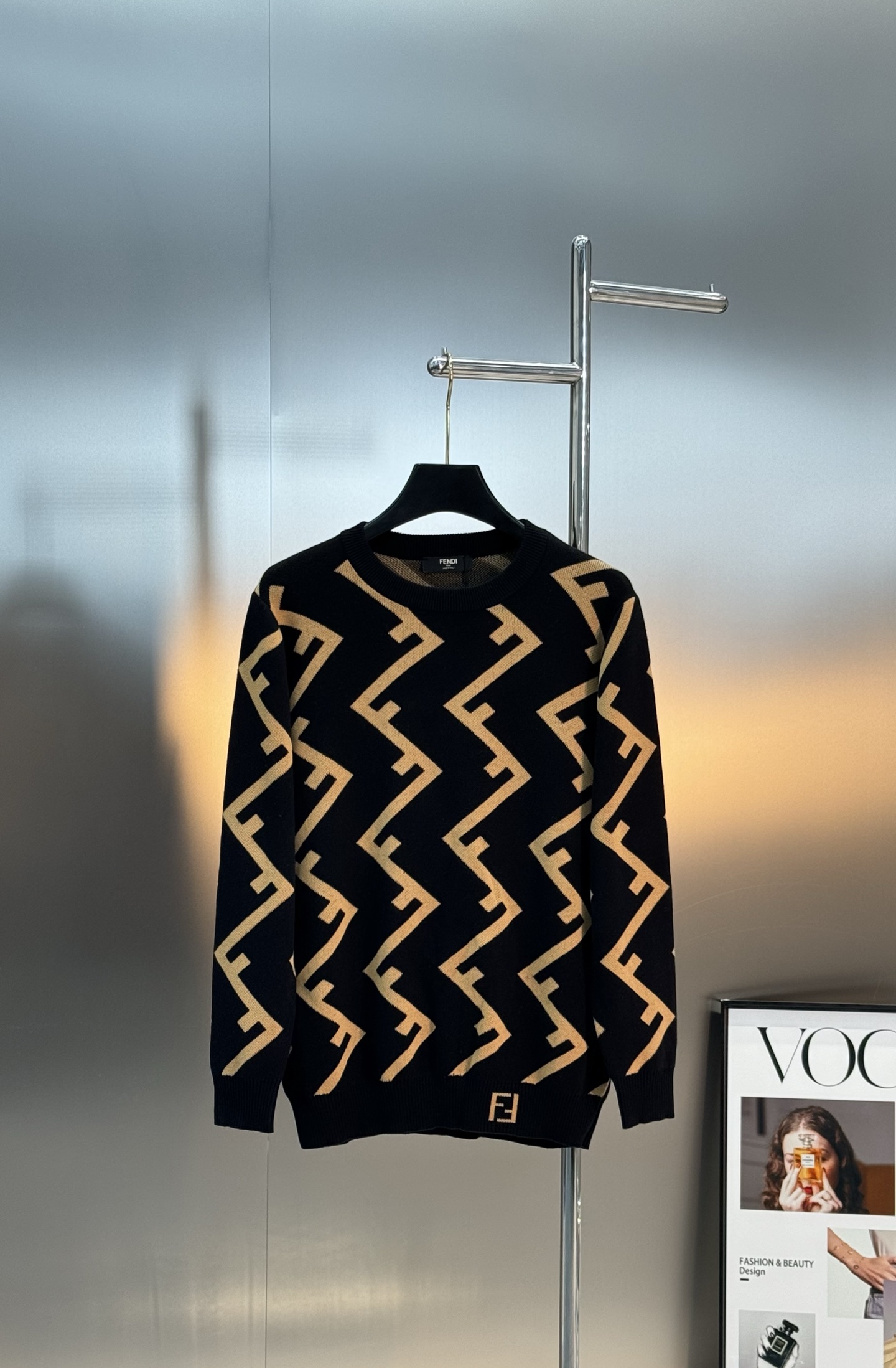 Home•Apparel•Jeans•Fendi 25s autumn-winter sweater. Modern reinterpretation of classic logo with jacquard craftsmanship. Made from white wool blend. Pairs with jeans for casual style. Sizes S-XL.