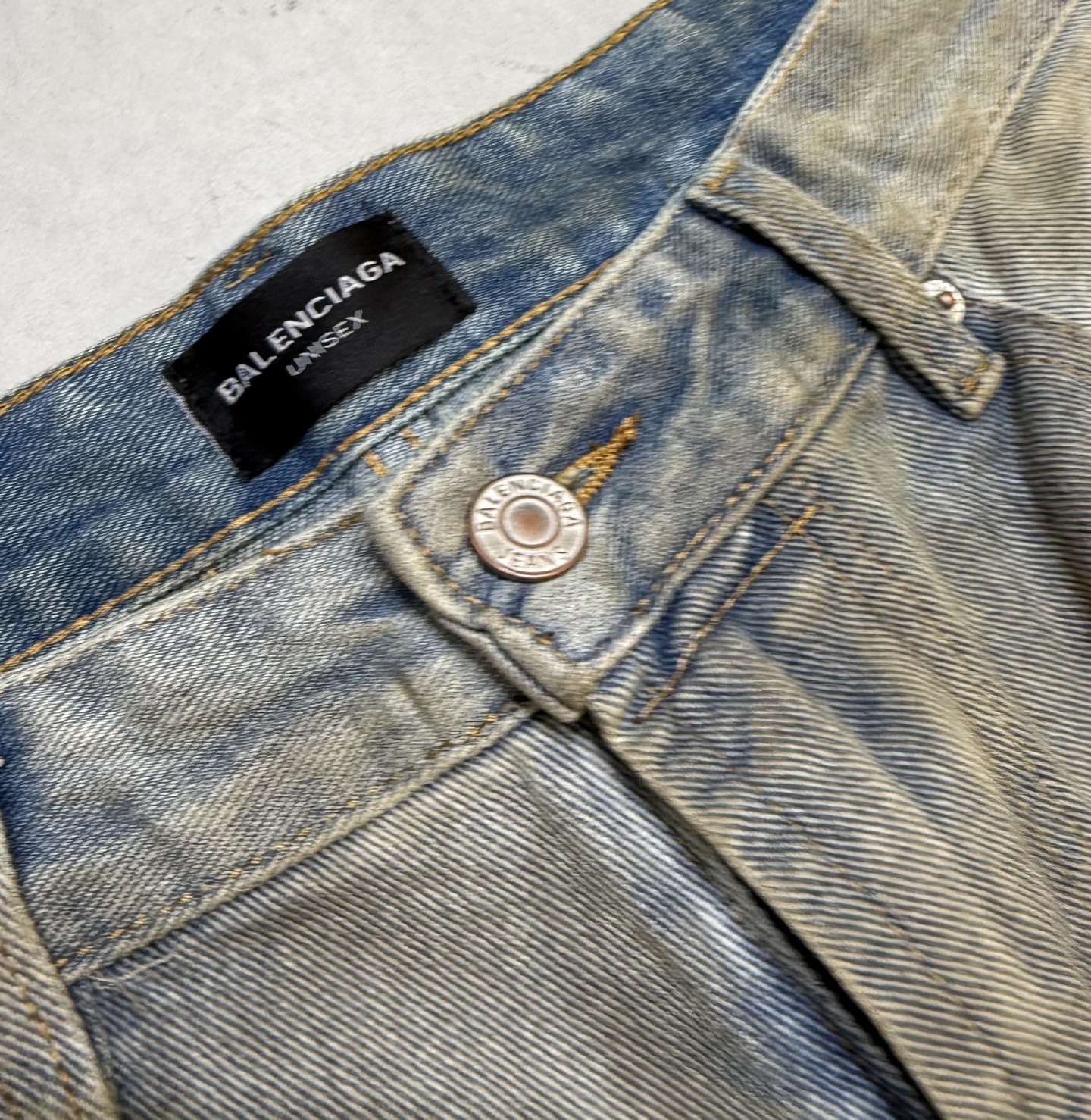 Balenciaga 25FW washed wide-leg jeans. Unisex sizes 28-34.