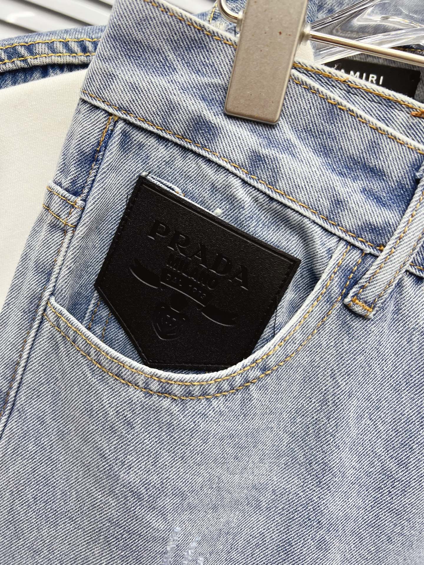PRADA men's wide-leg jeans. Premium Japanese denim, 13oz, eco-friendly enzyme wash for soft vintage look. Perfect fit, versatile style. Sizes: 29-38 (excl. 35, 37).