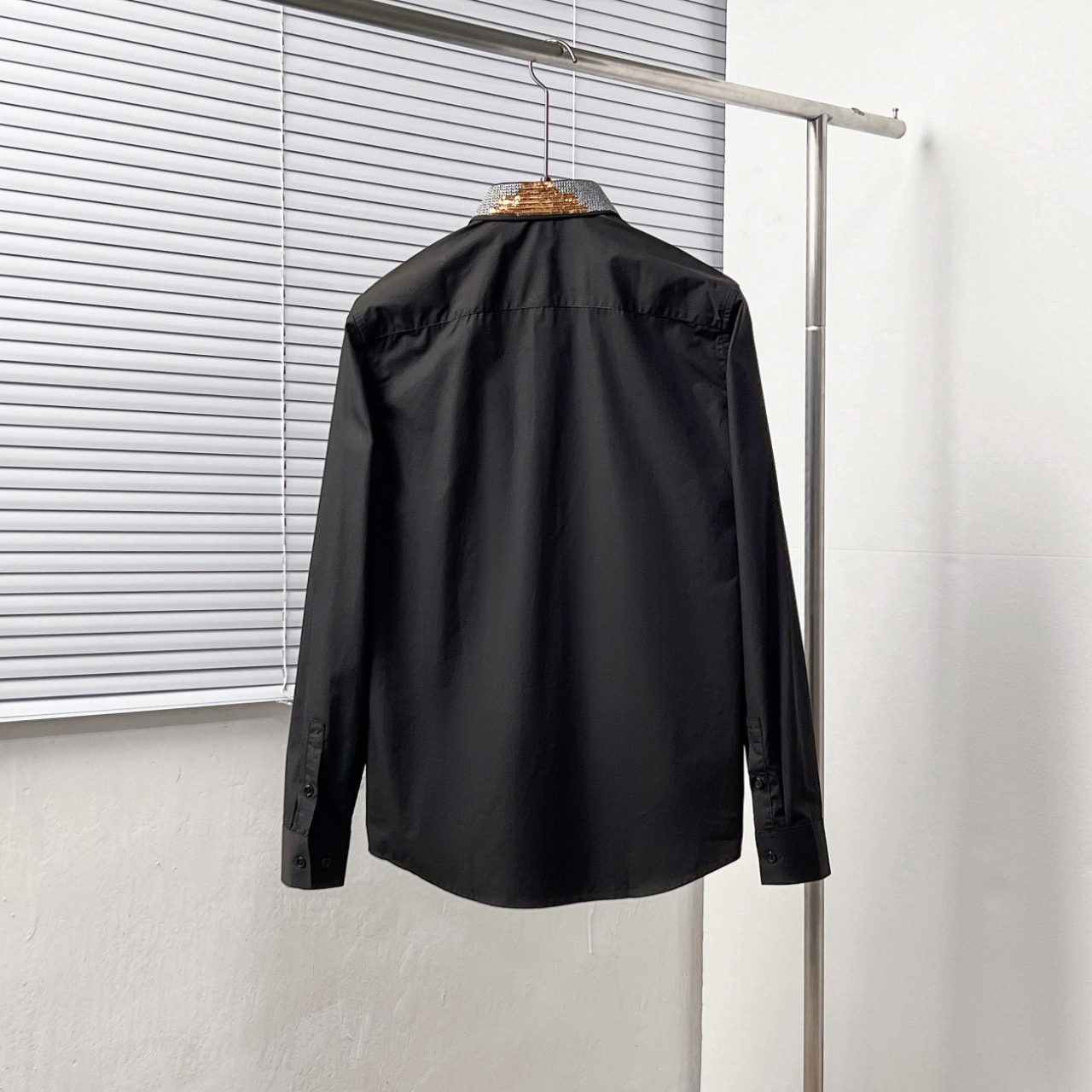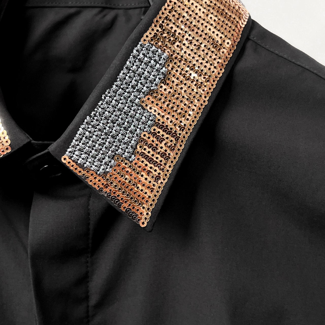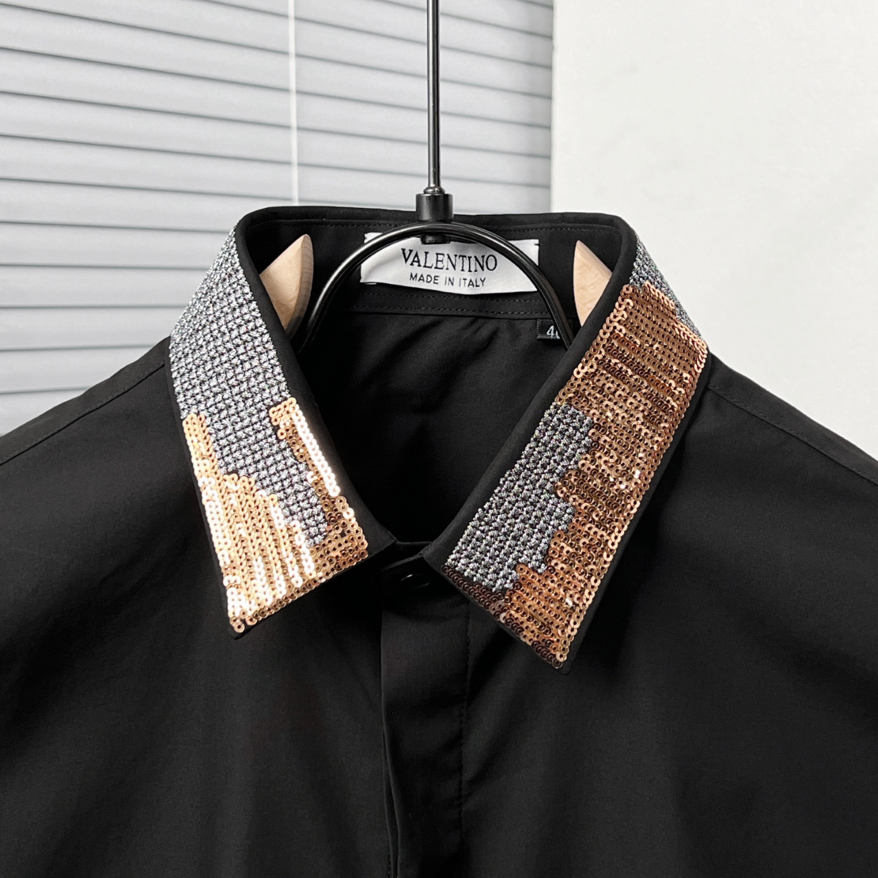 Valentin*/Valentino collar embroidered sequin color-blocking heavy work shirt