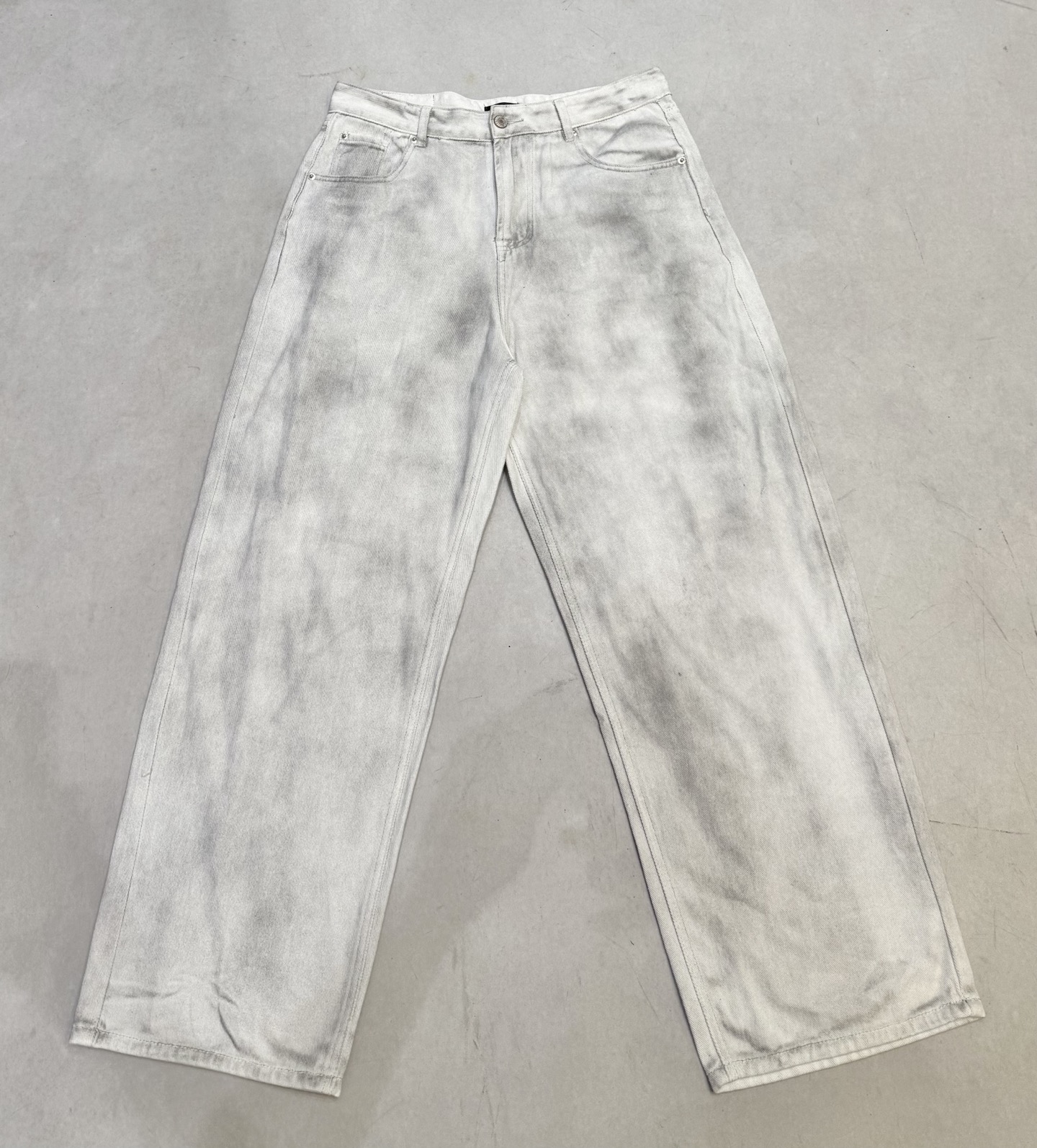 Balenciaga BLCG 25FW splatter paint gradient wide-leg jeans. Unisex, full labels. Sizes: 28 30 32 34.