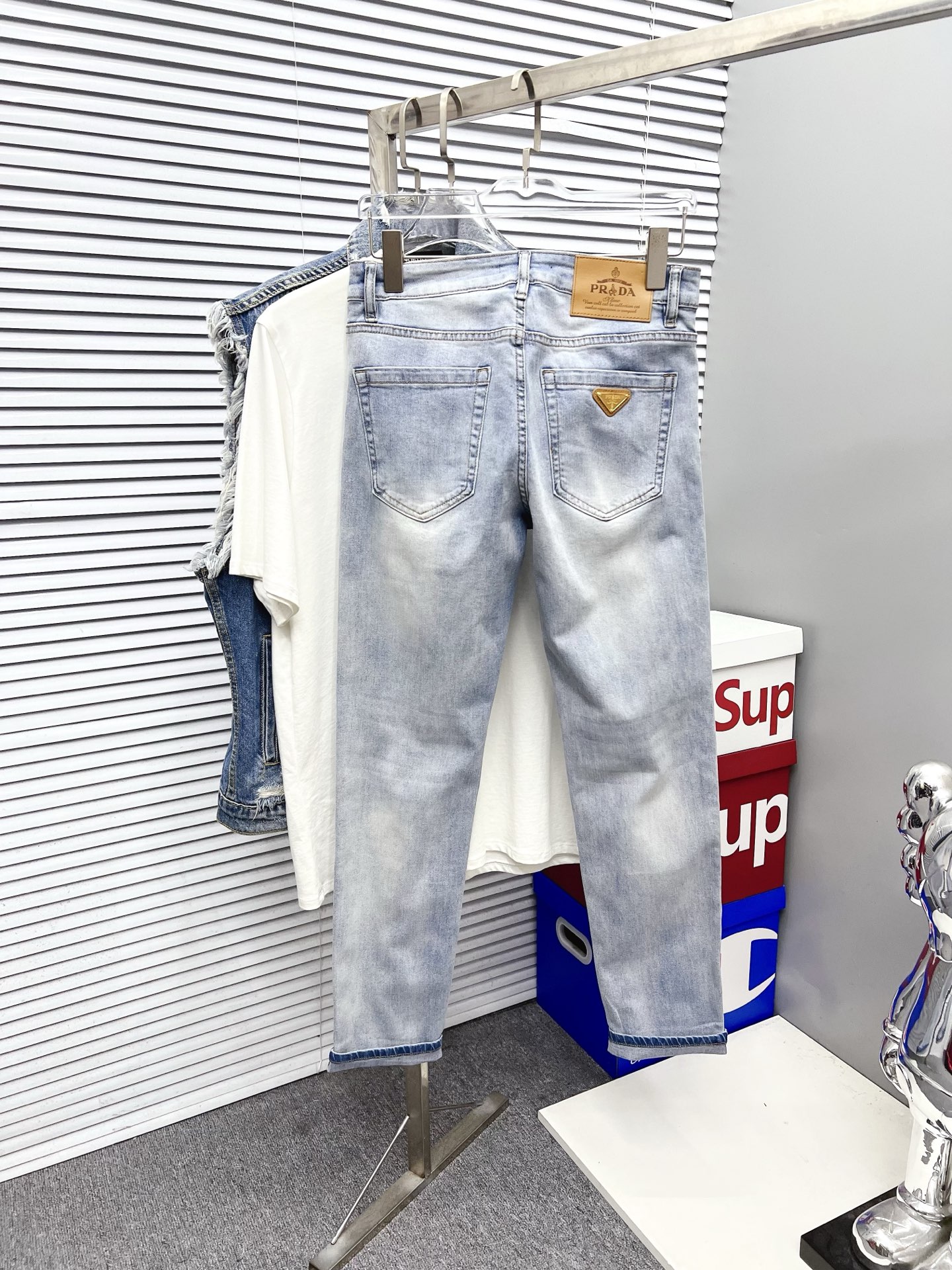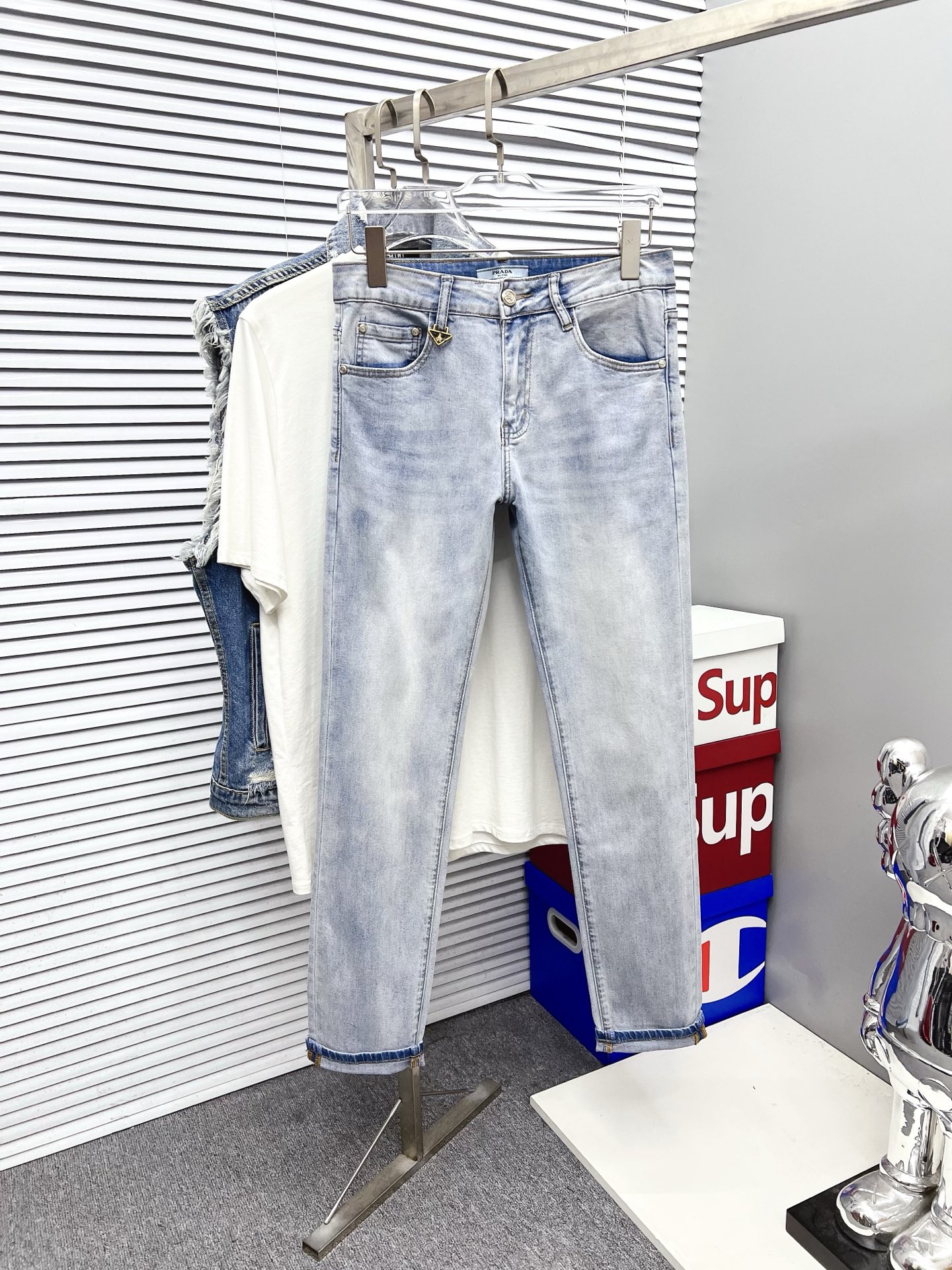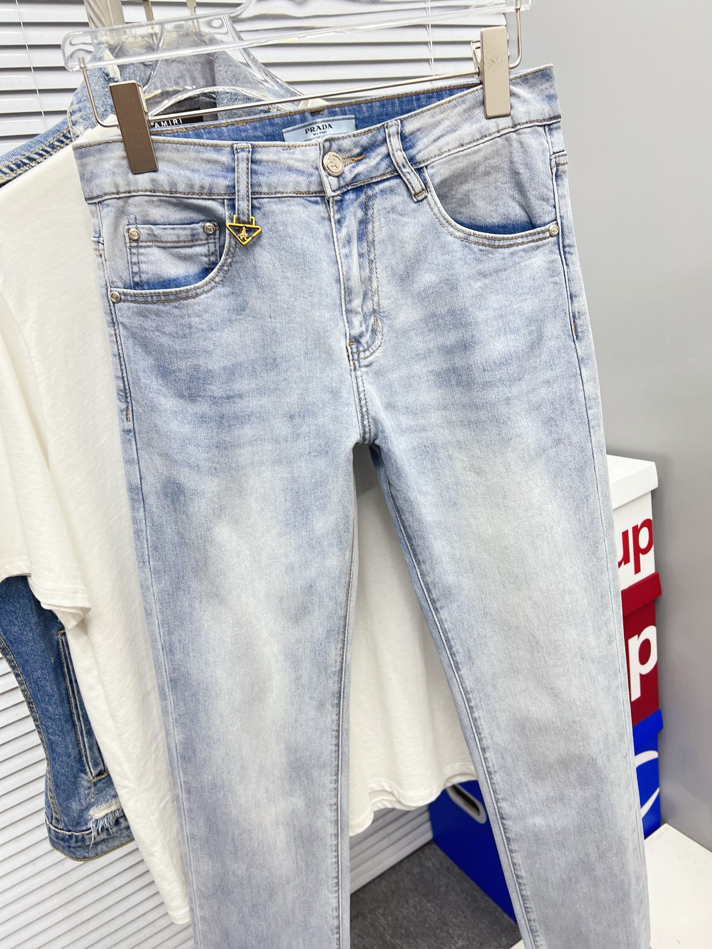 Prada men's denim jeans. Premium Japanese fabric, eco-friendly enzyme wash, soft with structure. Perfect fit, versatile style. Sizes 28-38 (excl. 35, 37).