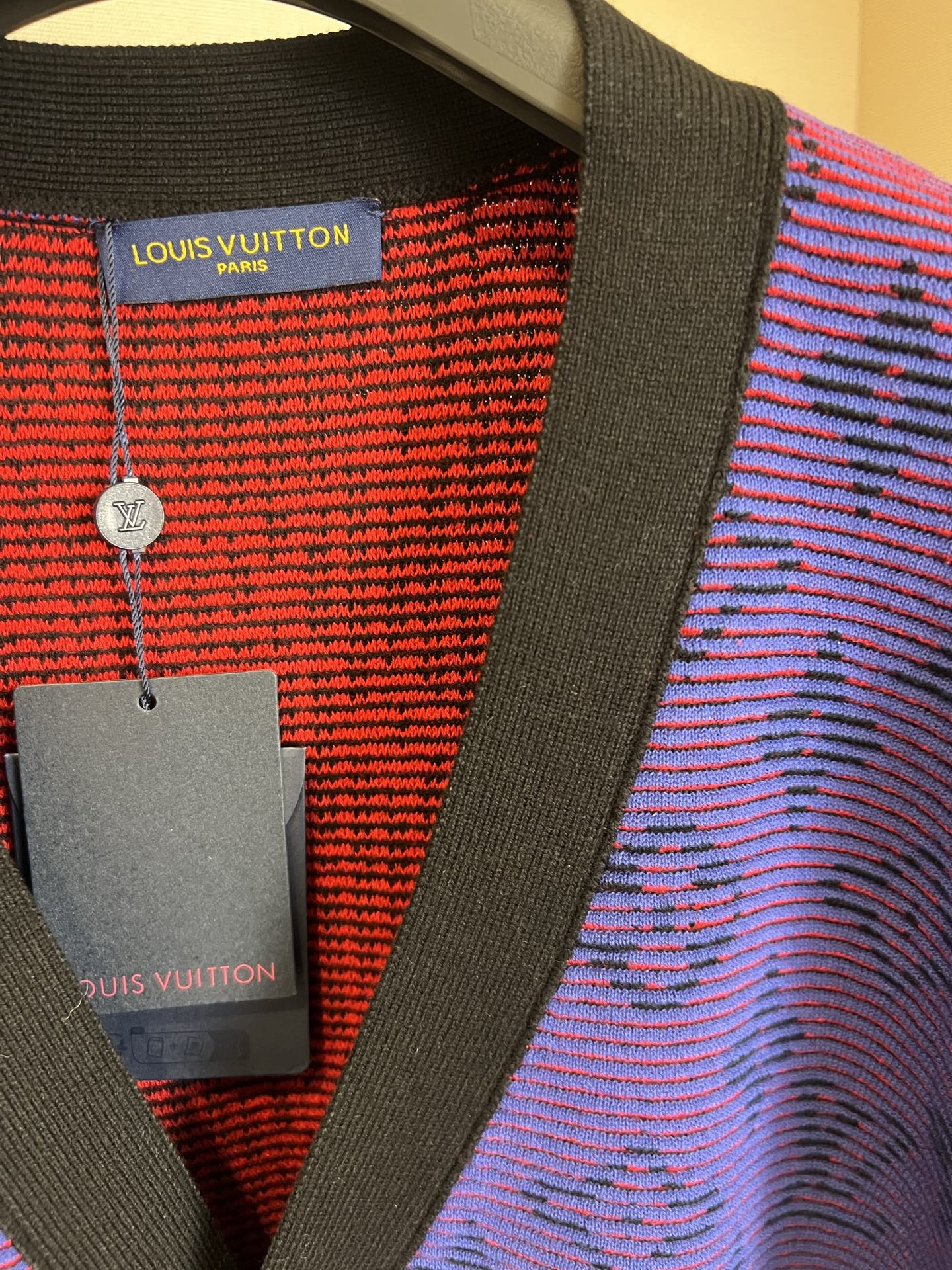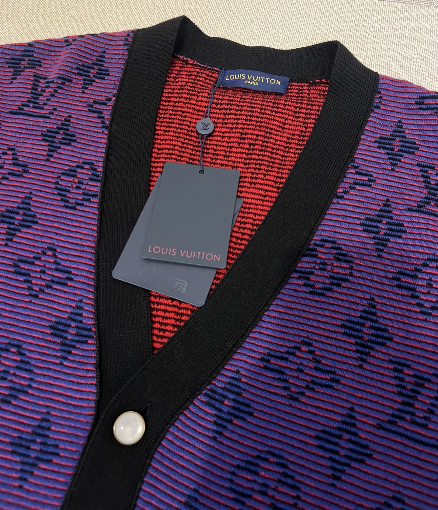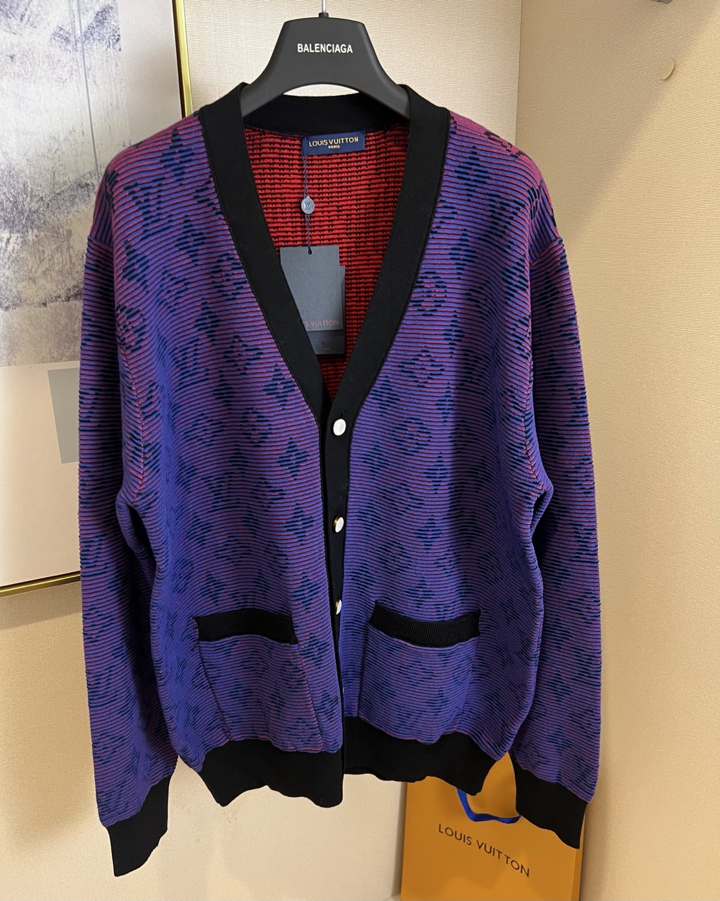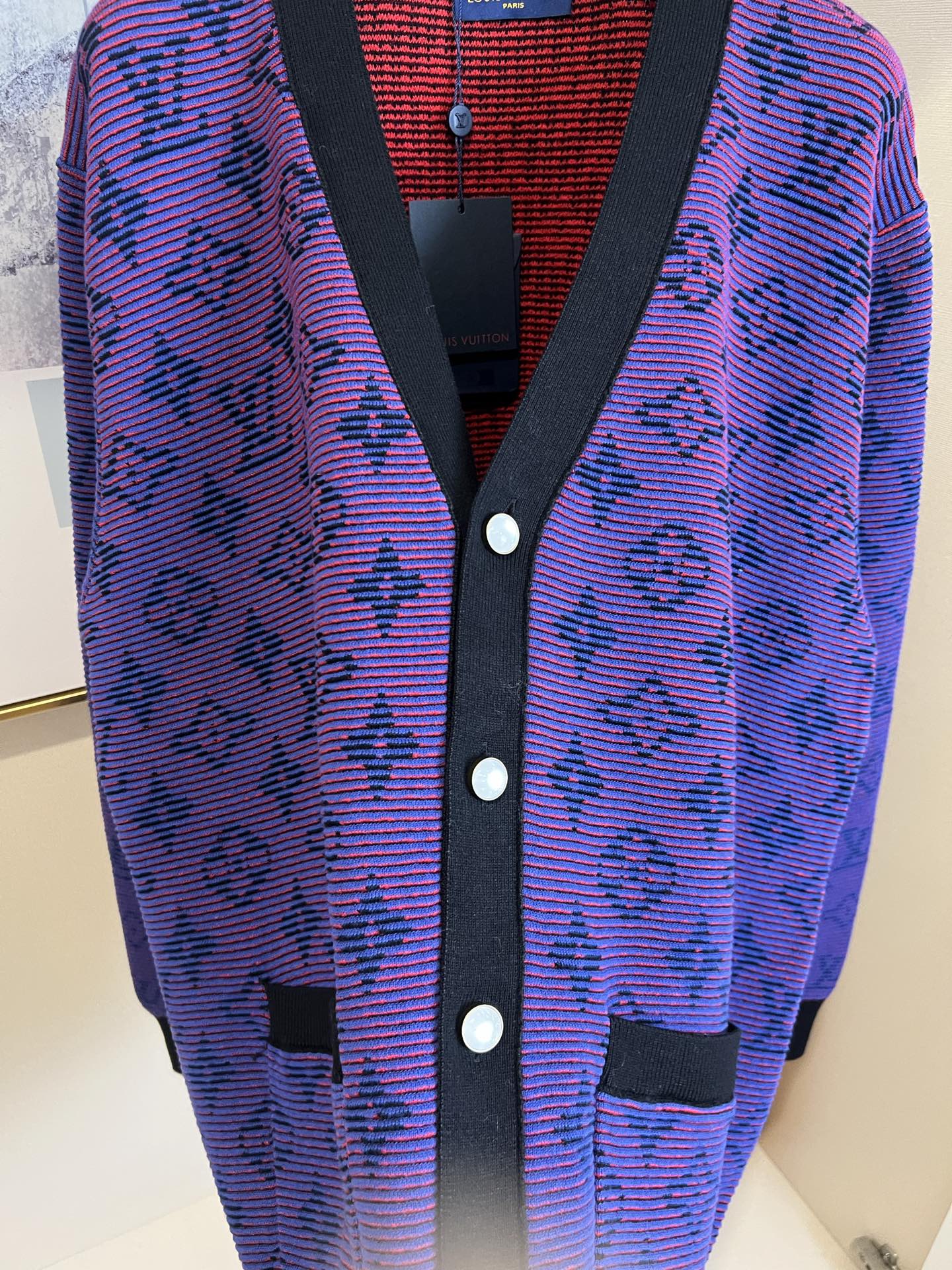 LV violet letter print V-neck cardigan. Unisex S/M/L/XL. Bright color, flattering fit. Stylish, versatile. Pair with jeans or skirts. Dry clean or machine wash cold.