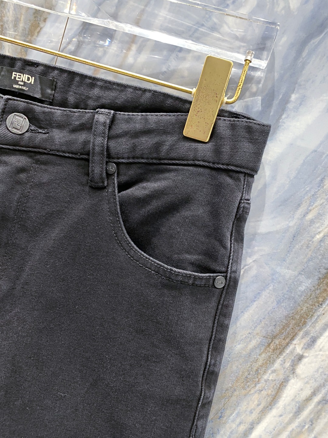 Fendi 2025 autumn-winter jeans. Imported color-fast fabric, custom hardware, original quality. Detailed craftsmanship, excellent fit. Full labels, sizes 29-36.