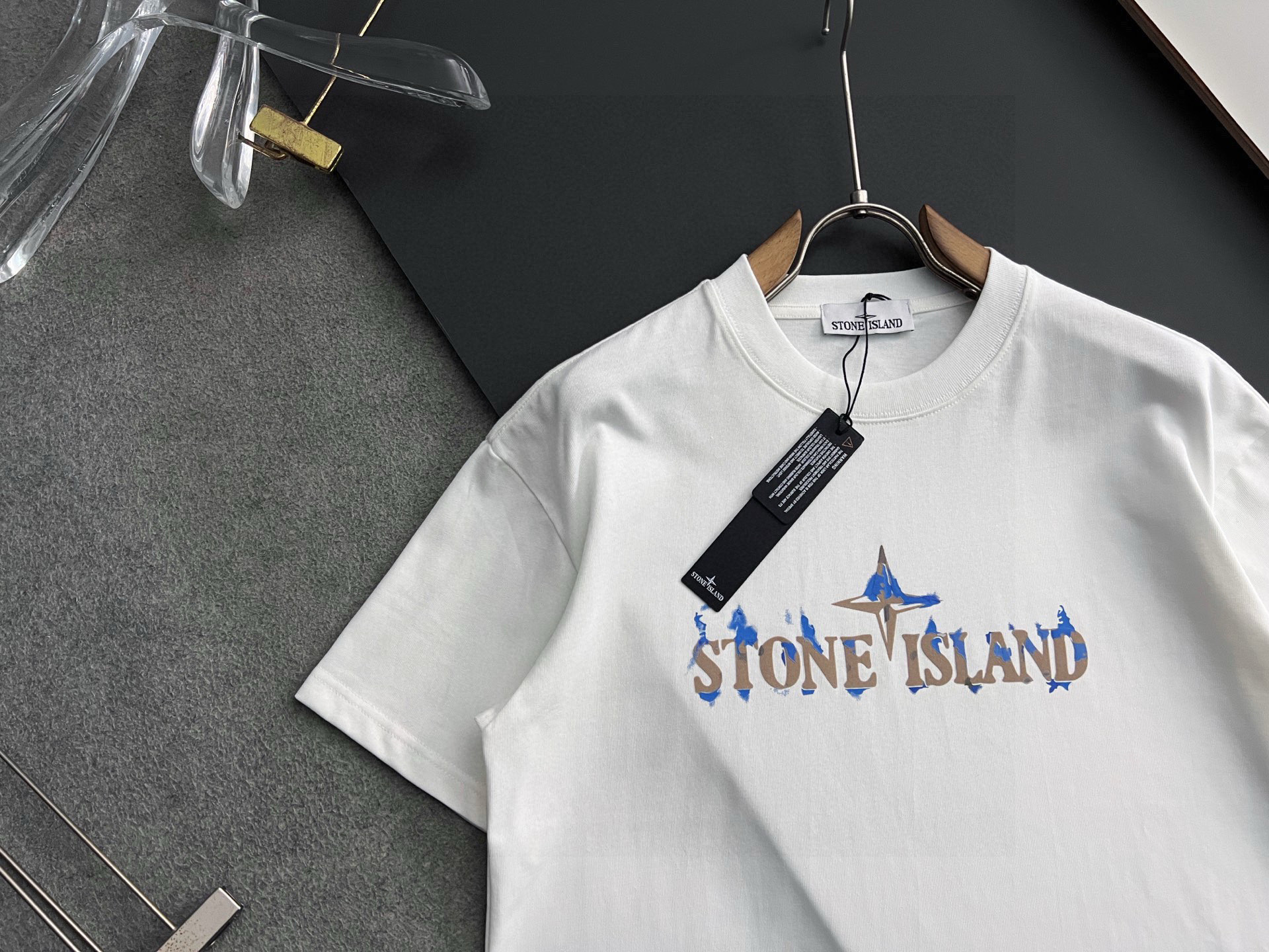 Stone Island 2025SS short sleeve t-shirt. 260g pure cotton. Classic white and black. Sizes M-3XL. Premium quality, versatile style.