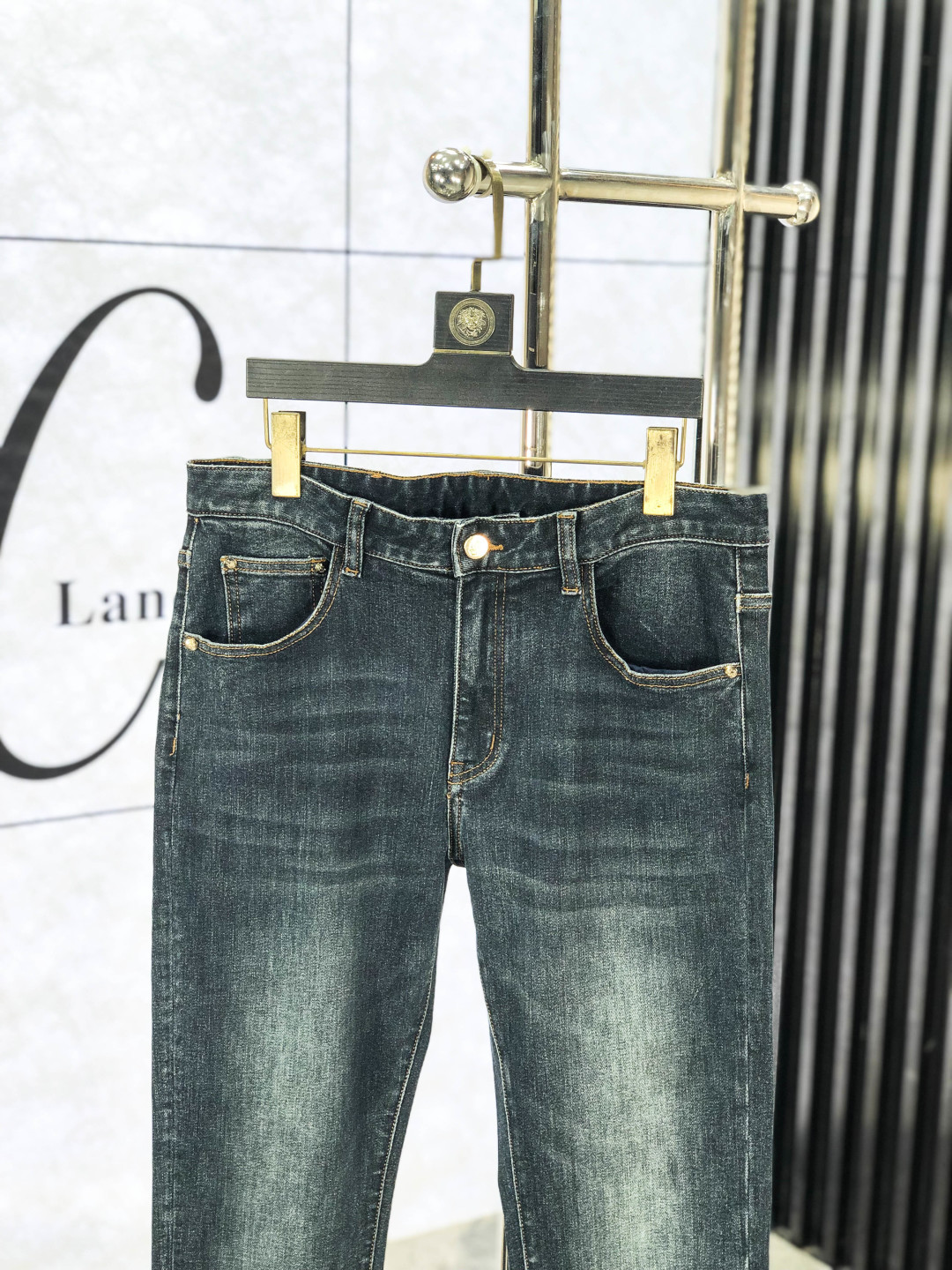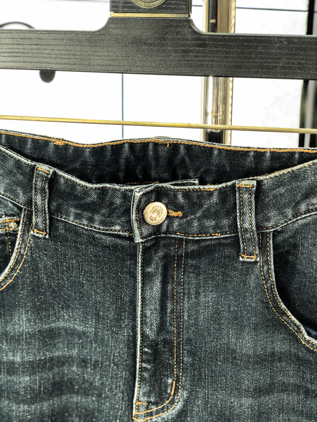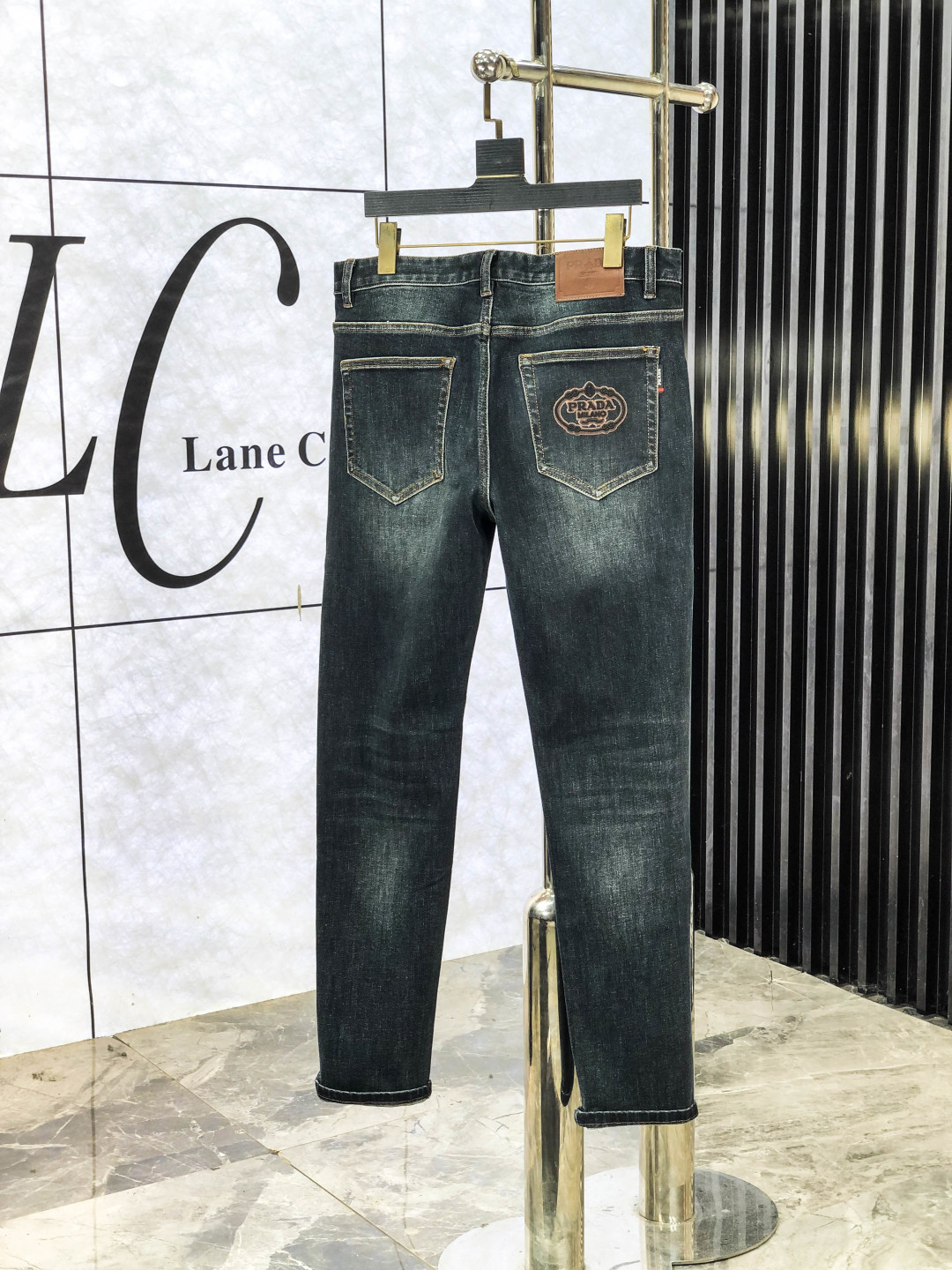 Prada 2025 Fall/Winter high-fashion soft denim jeans. Ultra-fine blended cotton, comfortable and slightly stretchy. Traditional hand-rubbed craftsmanship, stone-washed. Sizes 29-38.