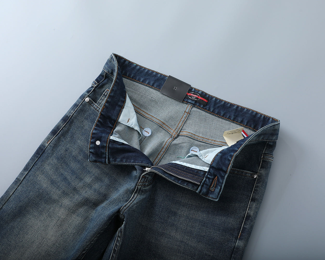 Prada 2025 early fall men's jeans. Original fabric, premium denim, complex craftsmanship, unique wash. Genuine leather tag, high-end hardware. Sizes 29-38 (no 37).