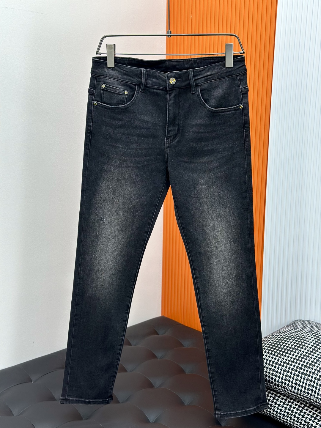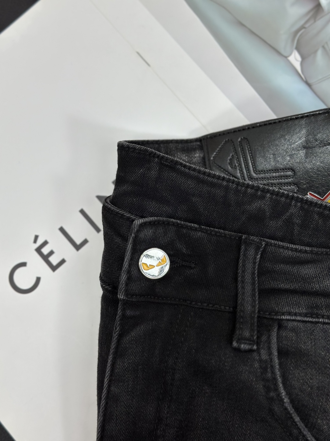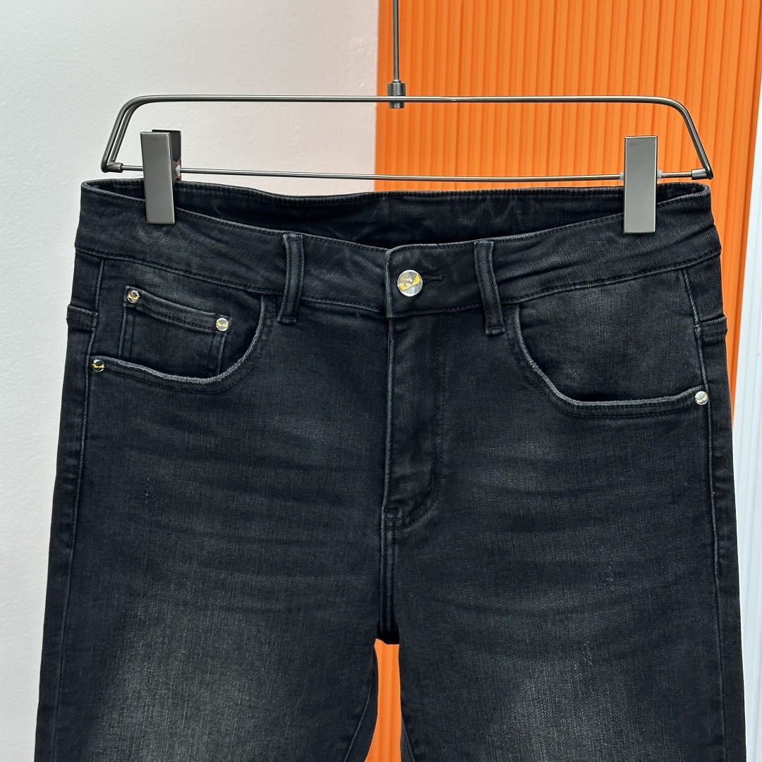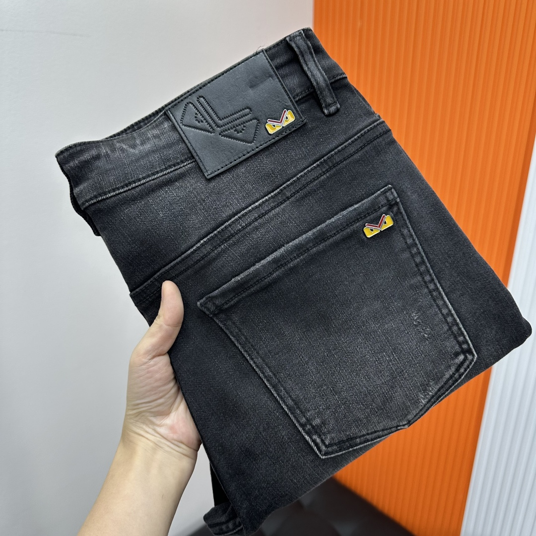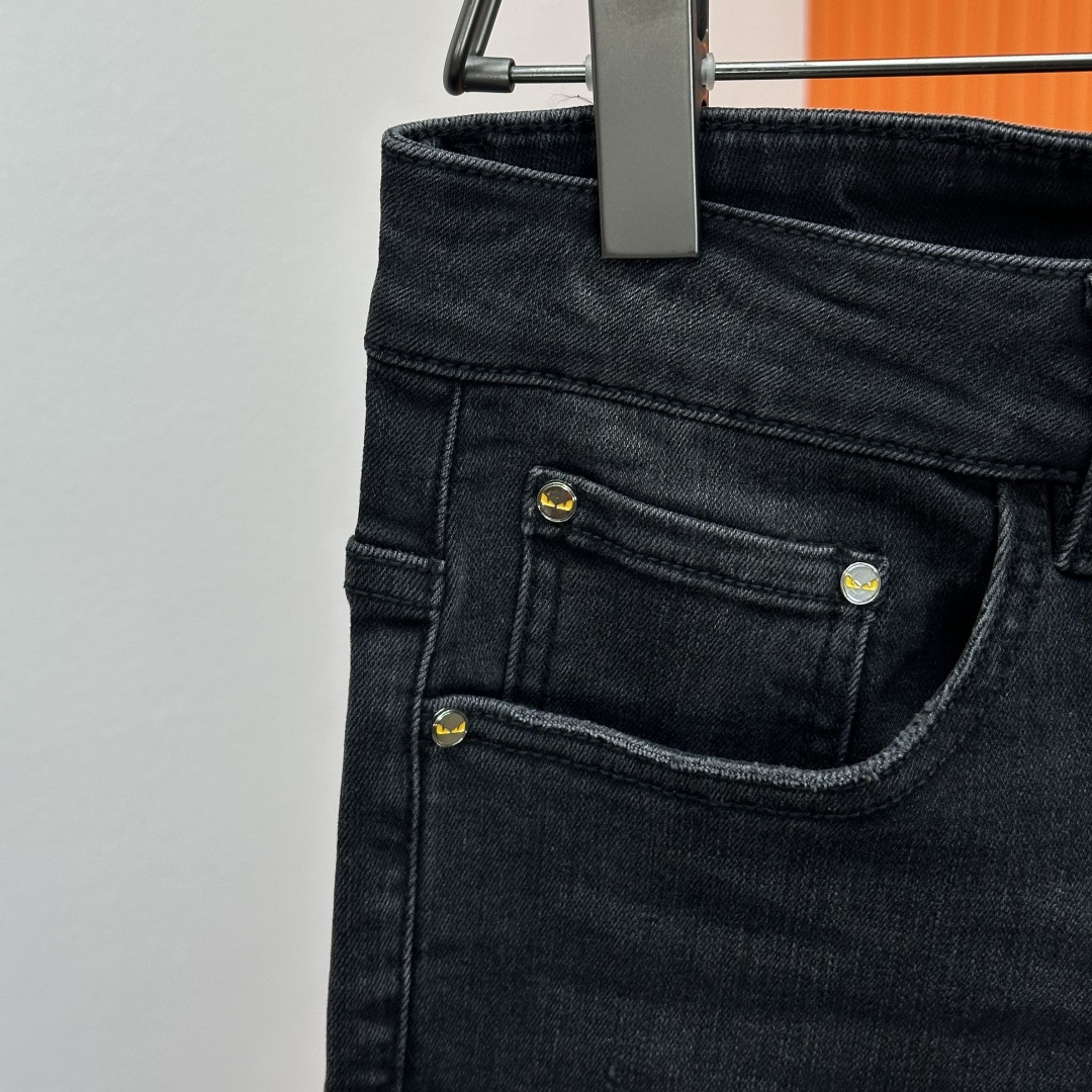 Fendi 2025SS straight-leg jeans. High-end custom design, elastic denim, soft cotton blend. Classic hardware. Sizes 28-38 (no 37).