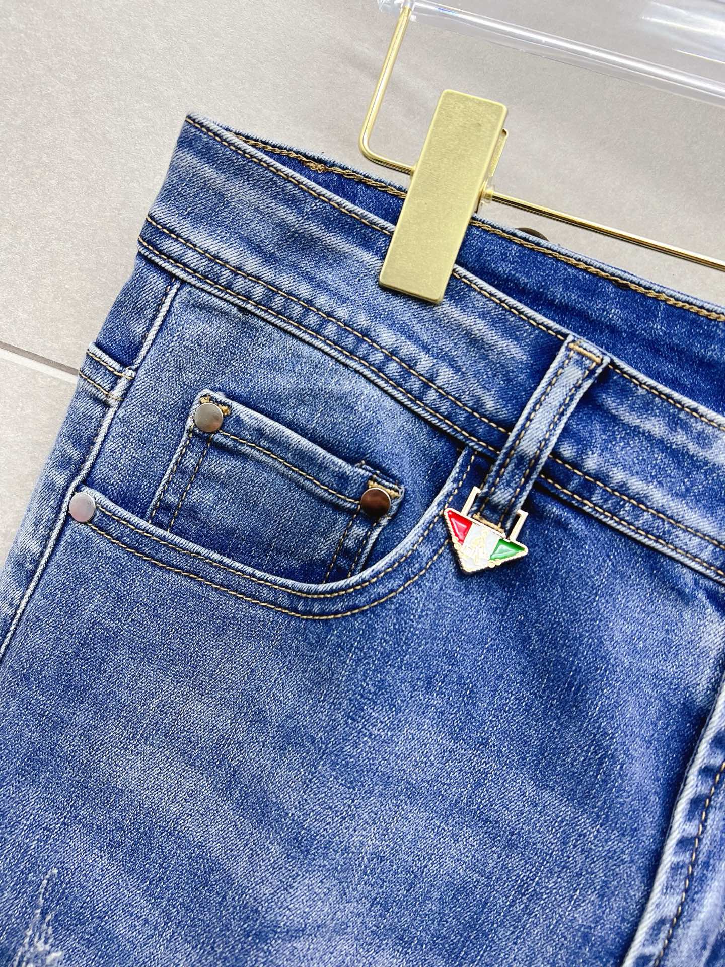 LV Thin Denim Jeans. 2025 latest style. 98% cotton, 2% spandex. Solid, slightly stretchy, comfortable. Simple design, hidden zipper, embossed pockets. Excellent fit.