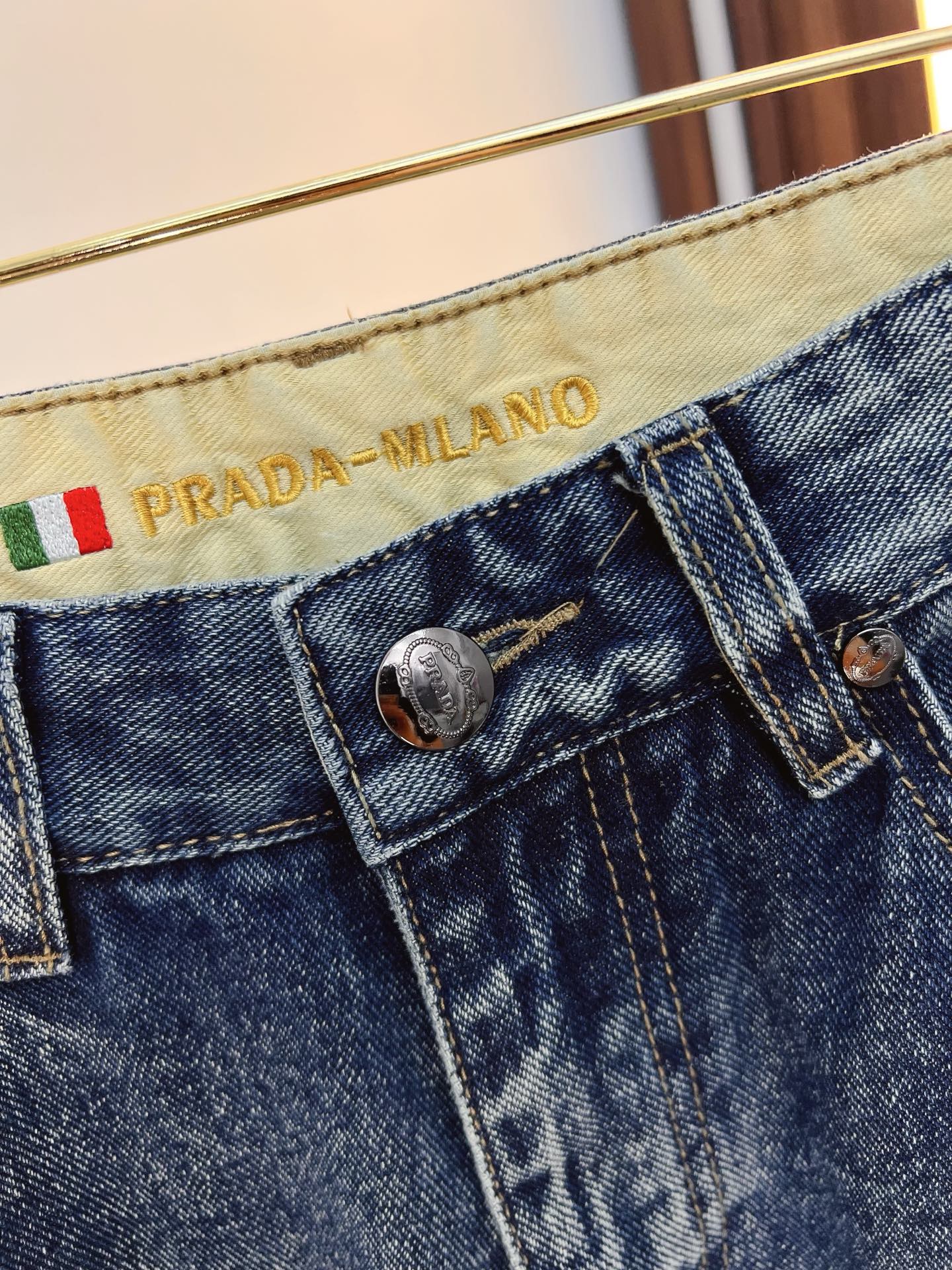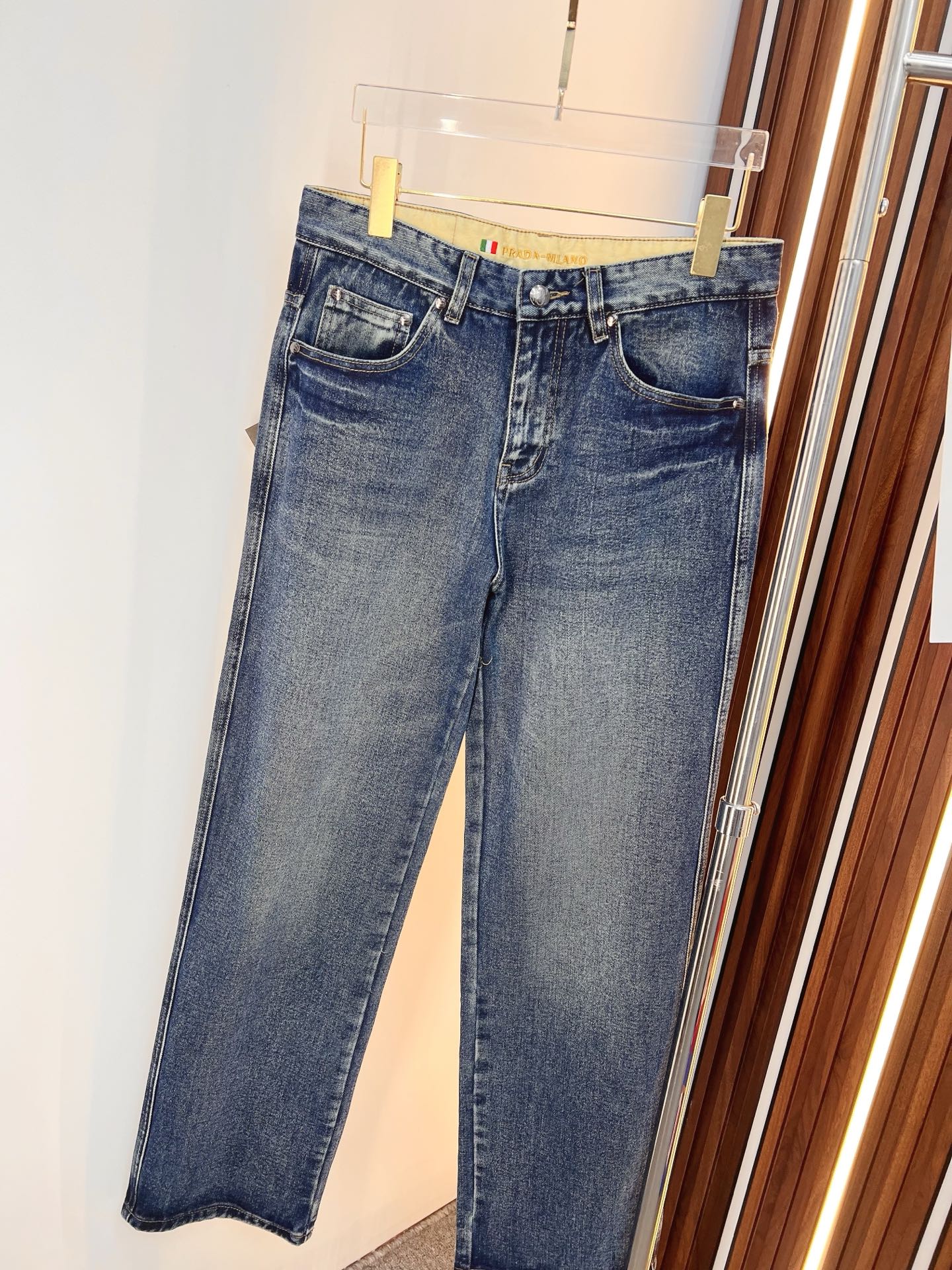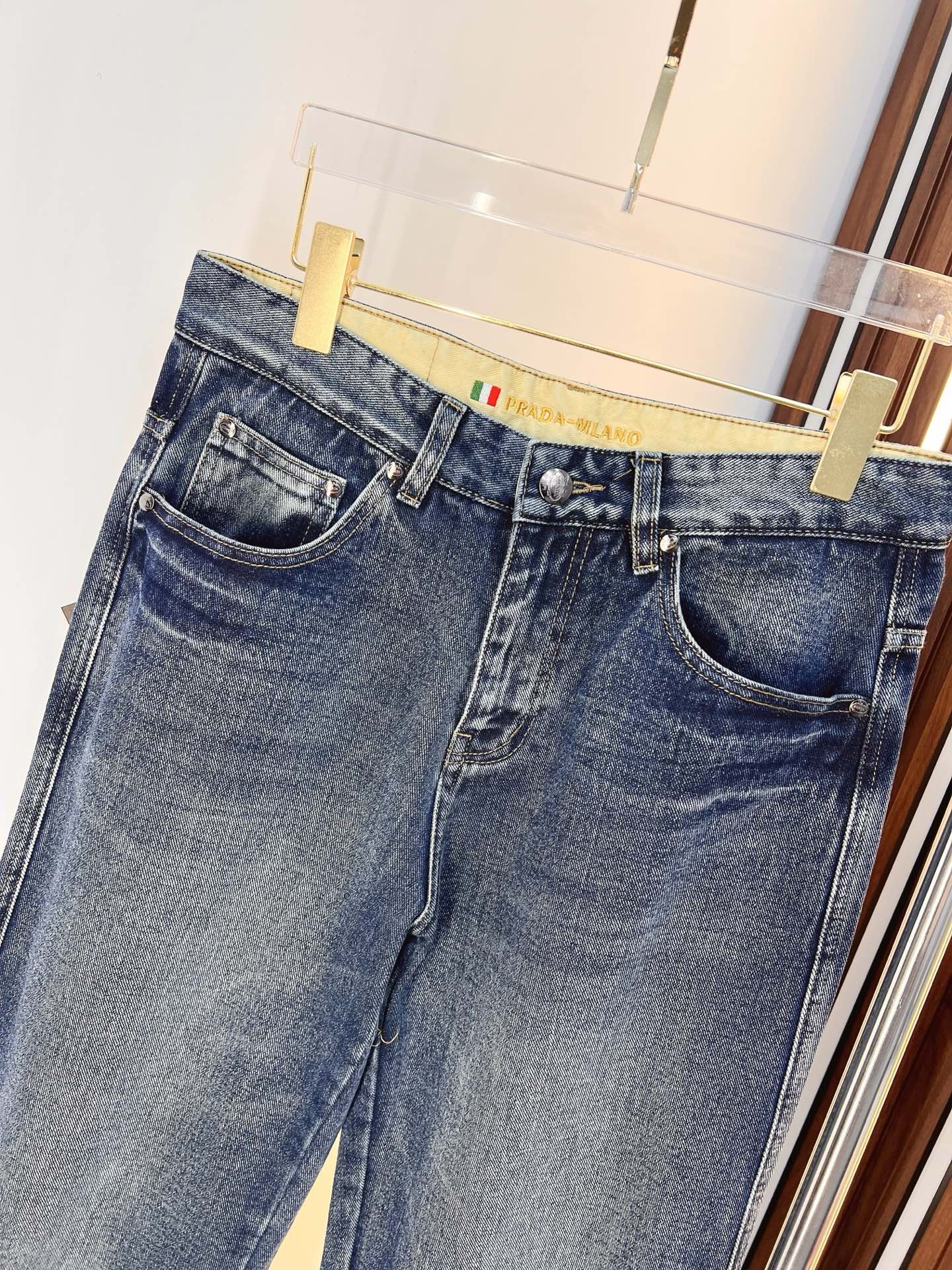 Prada men's denim jeans. Premium Japanese 13oz fabric, eco-enzyme wash for soft texture with vintage tones. Flattering fit, brand leather tag, versatile styling. Sizes 29-40 (no 35,37).