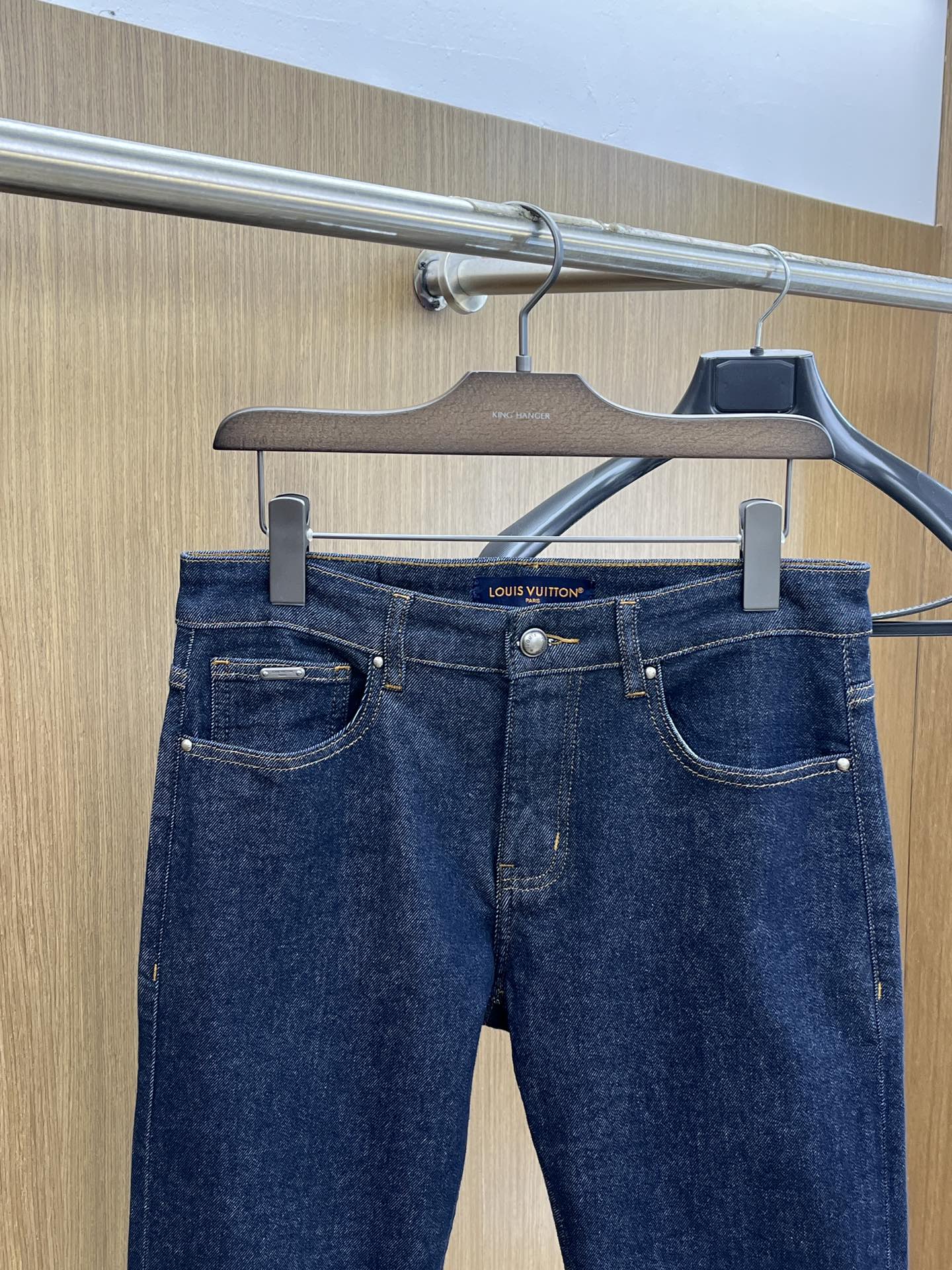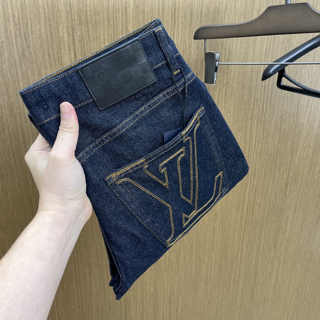 LV Thin Denim Jeans. 2025 latest style. 98% cotton, 2% spandex. Solid, slightly stretchy, comfortable. Simple design, hidden zipper, embossed pockets. Excellent fit.