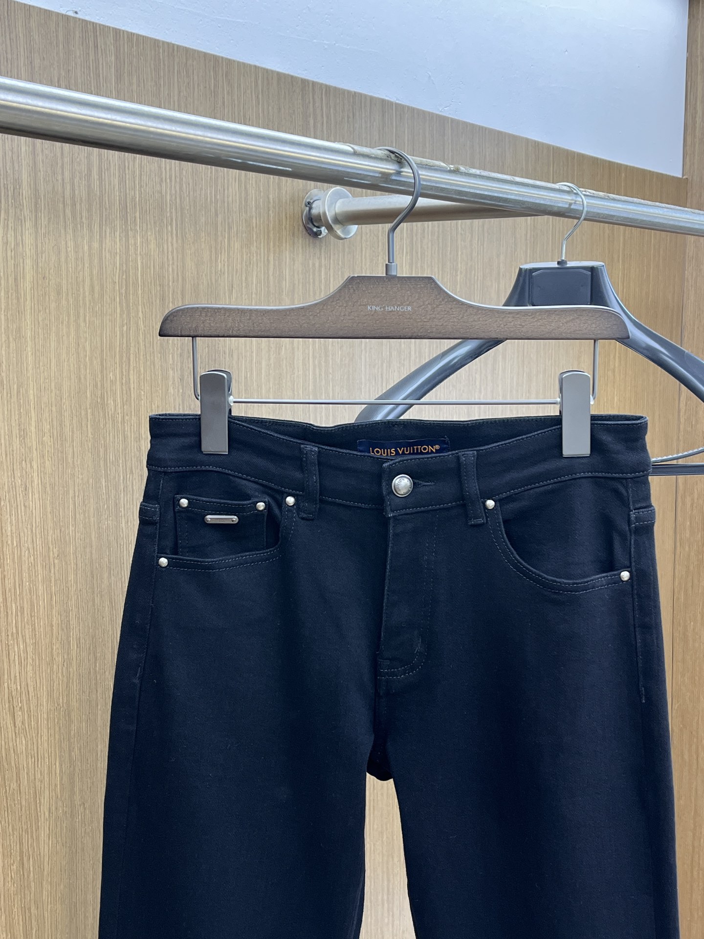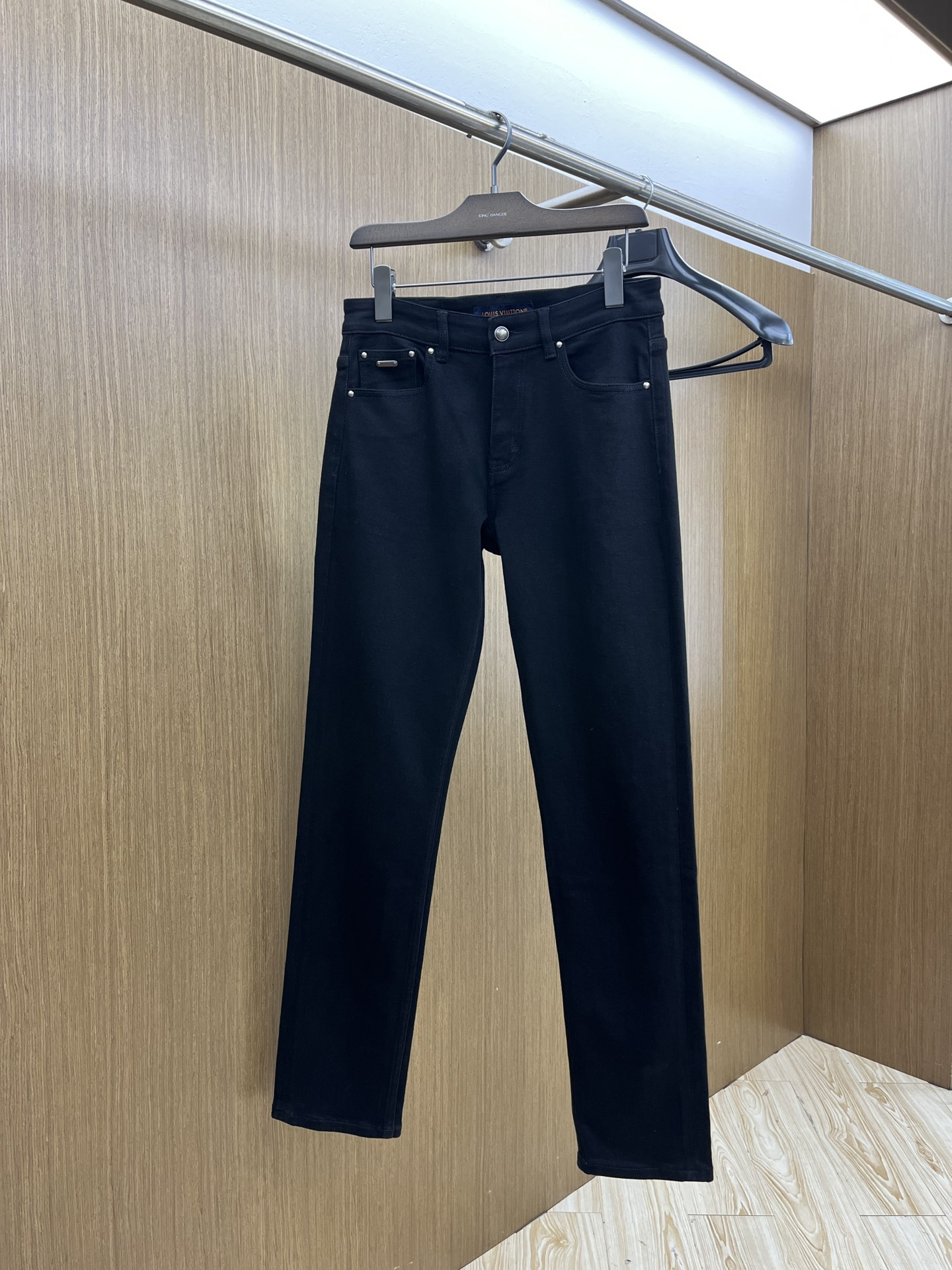 LV autumn-winter soft washed jeans. Slim fit, straight leg design. Men's top casual cotton with stretch. Versatile for all seasons. Retro style, thick fabric. Sizes 29-38 (no 35,37).