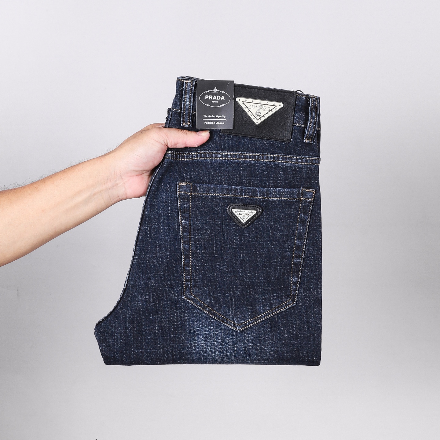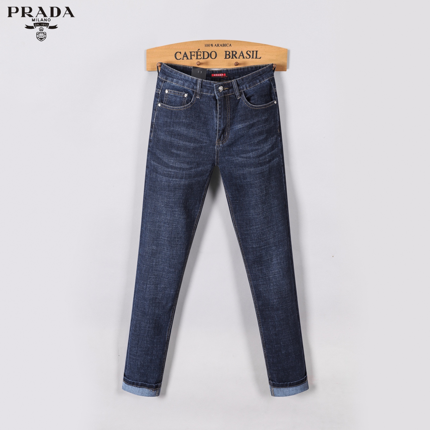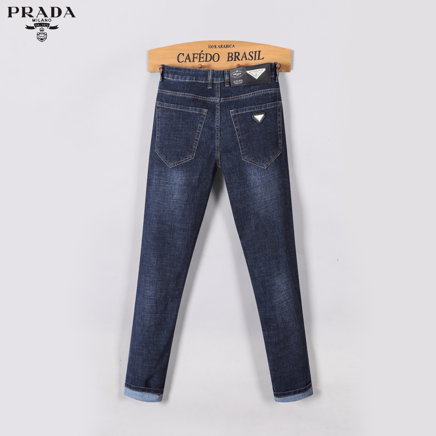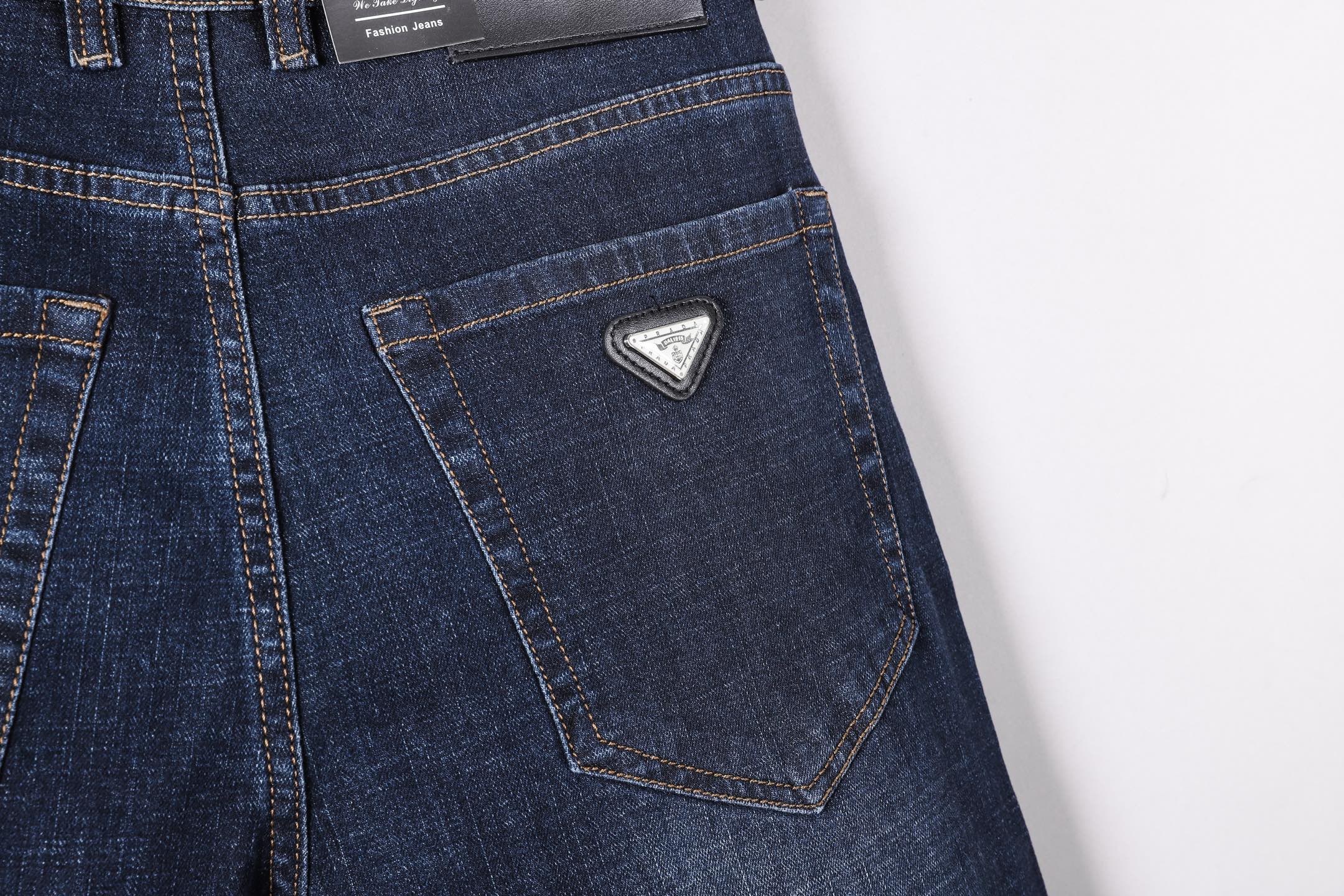 Prada Fall/Winter 2025 new slim straight jeans. Heavy wash, custom stretch denim, softer and more comfortable. Top craftsmanship, comfortable feel, excellent breathability. Branded hardware. Sizes 29-40.