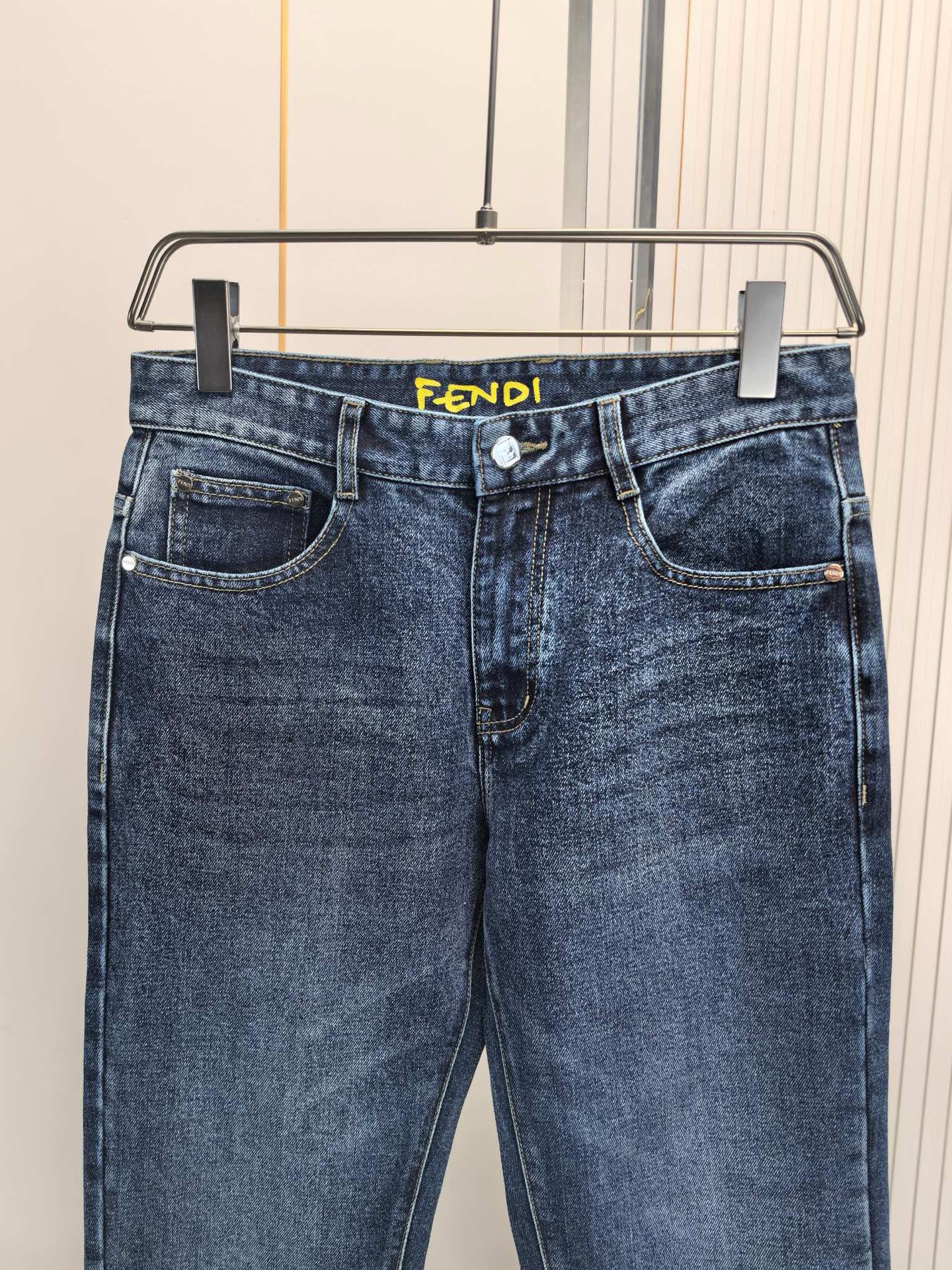 Fendi 2025 early autumn men's jeans. Heavy wash custom denim, ultra-soft and breathable. Custom metal logos, excellent elasticity. Simple design. Sizes 29-40.
