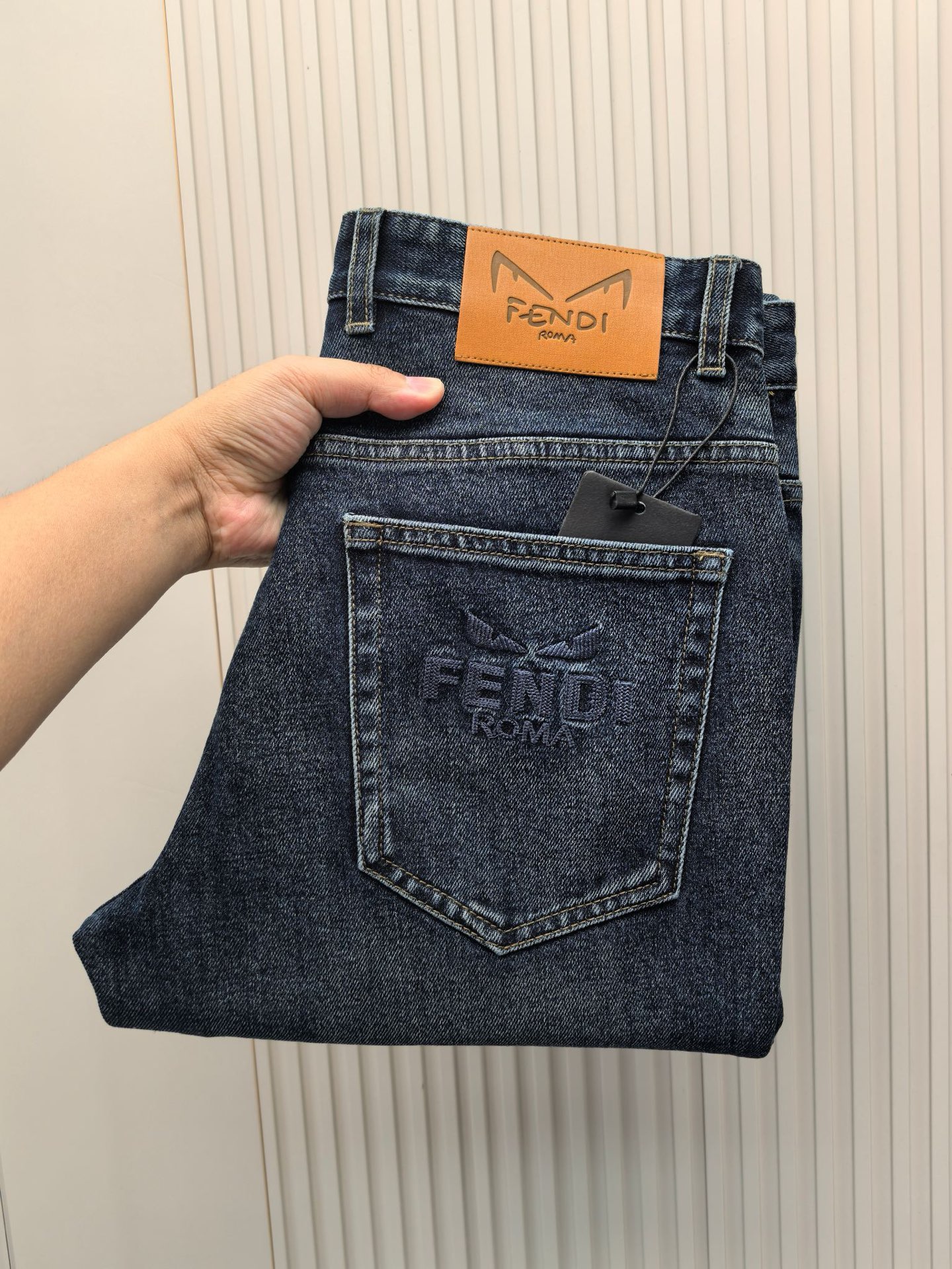 Home • Apparel • Jeans • Fendi 2025 early fall men's jeans. Custom soft, comfortable denim with advanced washing techniques. Premium hardware logo. Elastic fabric, minimalist design. Sizes 29-40.