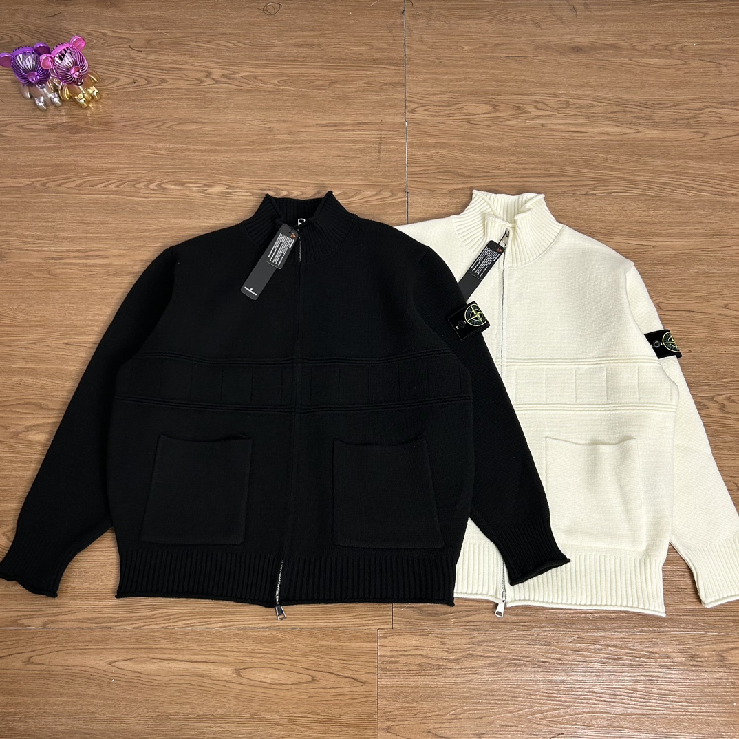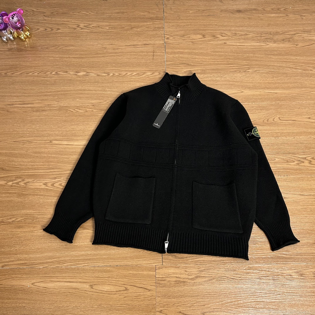 New Stone Island classic badge logo knit collar jacket. Unisex timeless design, perfect for autumn. Versatile, comfortable, high-quality embroidery.