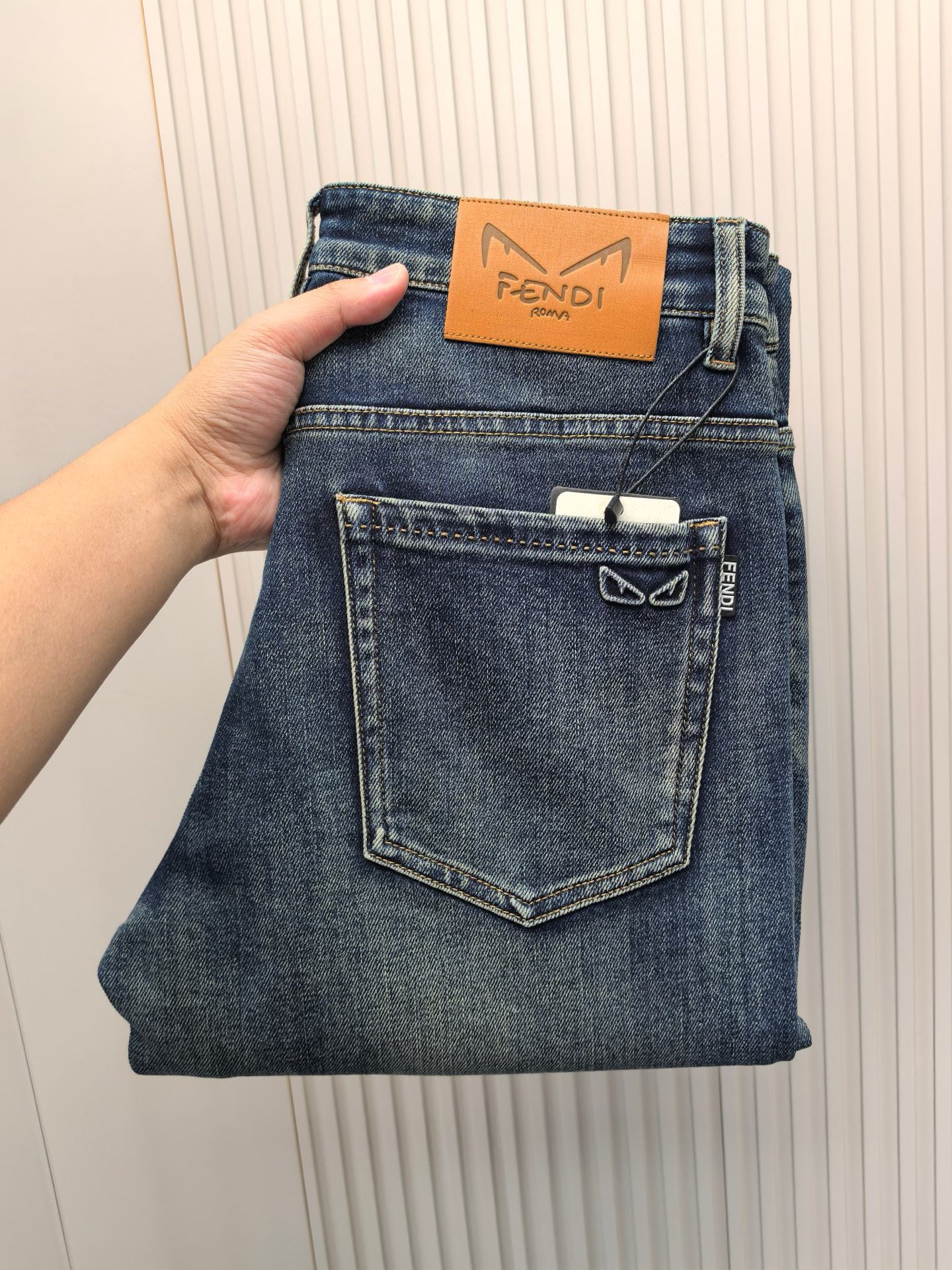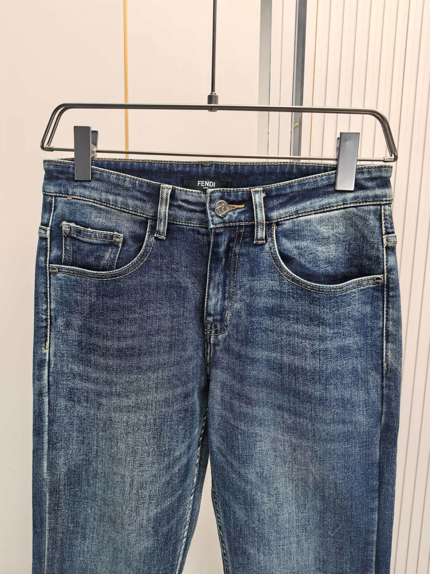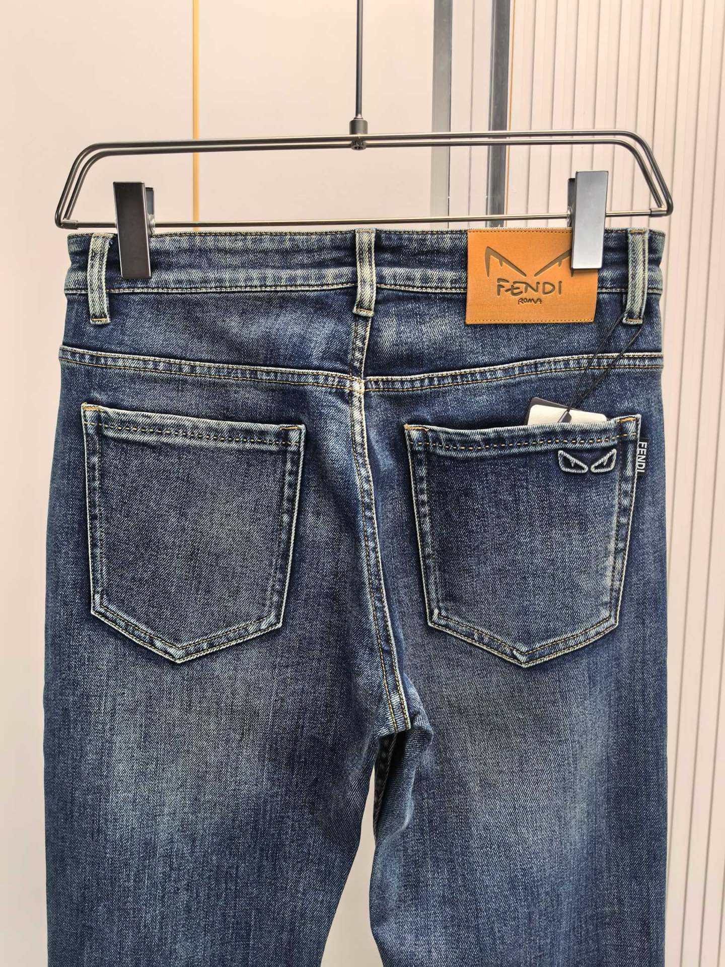 Fendi 2025 early fall men's jeans. Heavy wash denim, custom soft fabric, double washing process. Comfortable, breathable, premium hardware logos. Sizes 29-40.