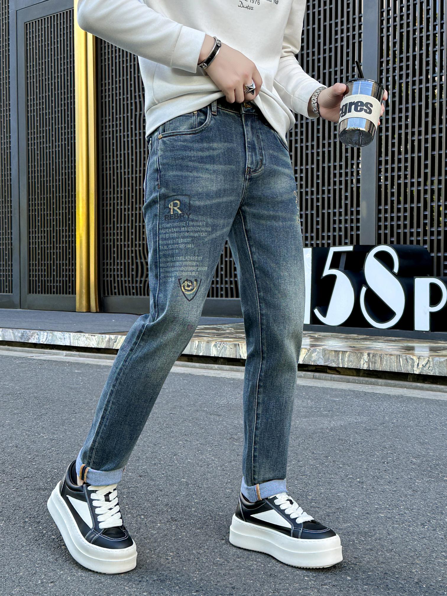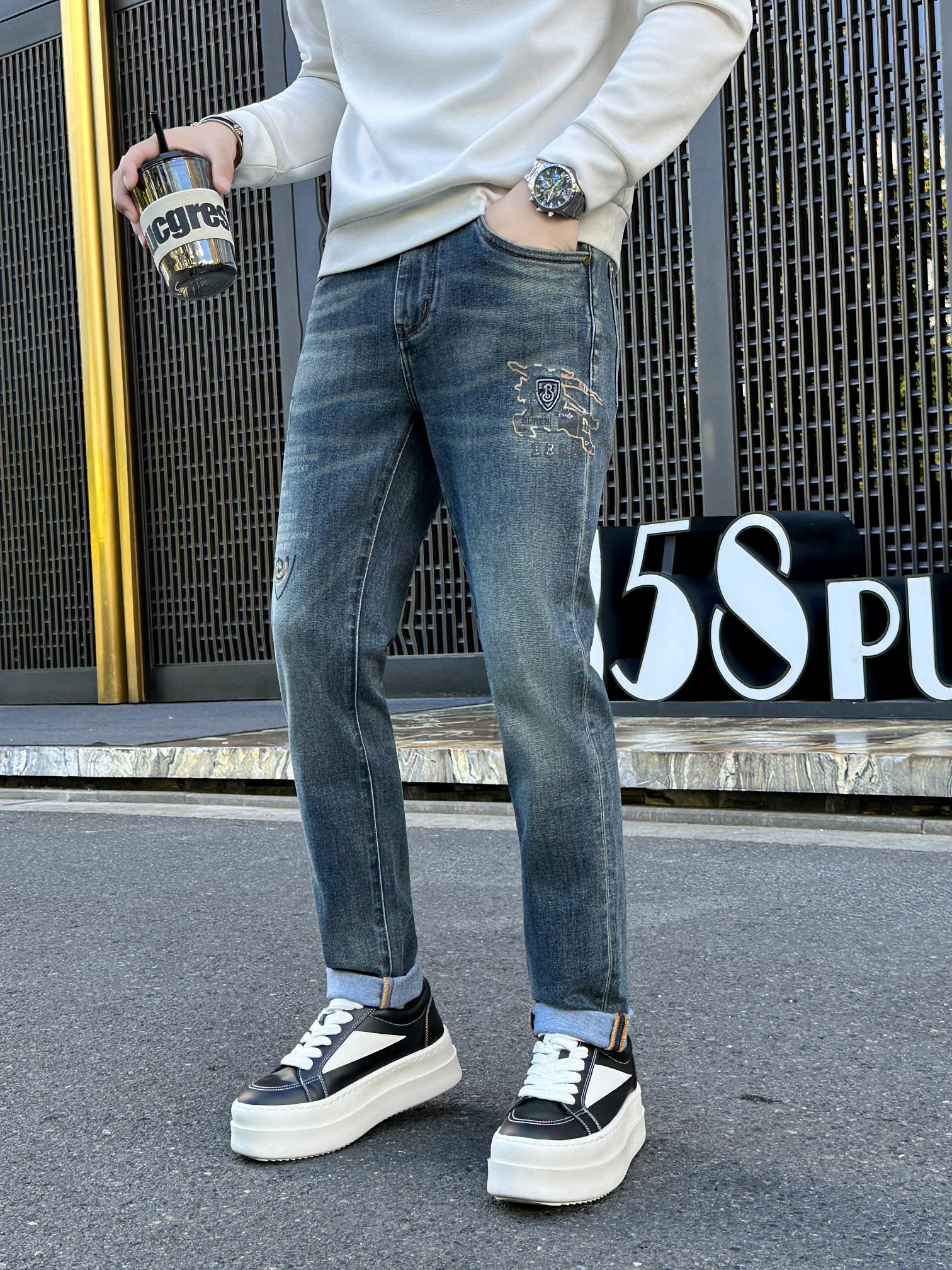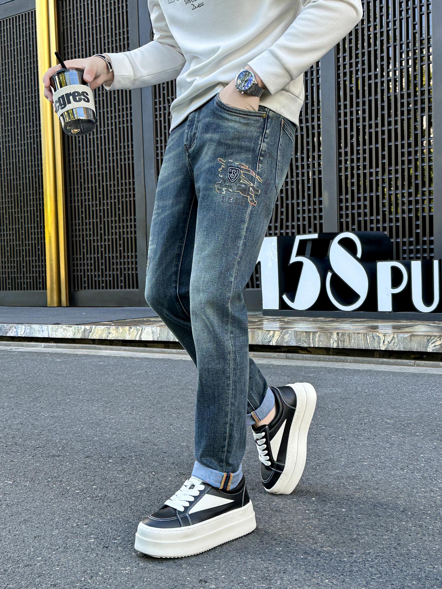 Burberry 2025 jeans: soft, stretchy, durable fabric. Elegant leather waist tag. Versatile casual & business design. Sizes 29-38 (no 35,37).