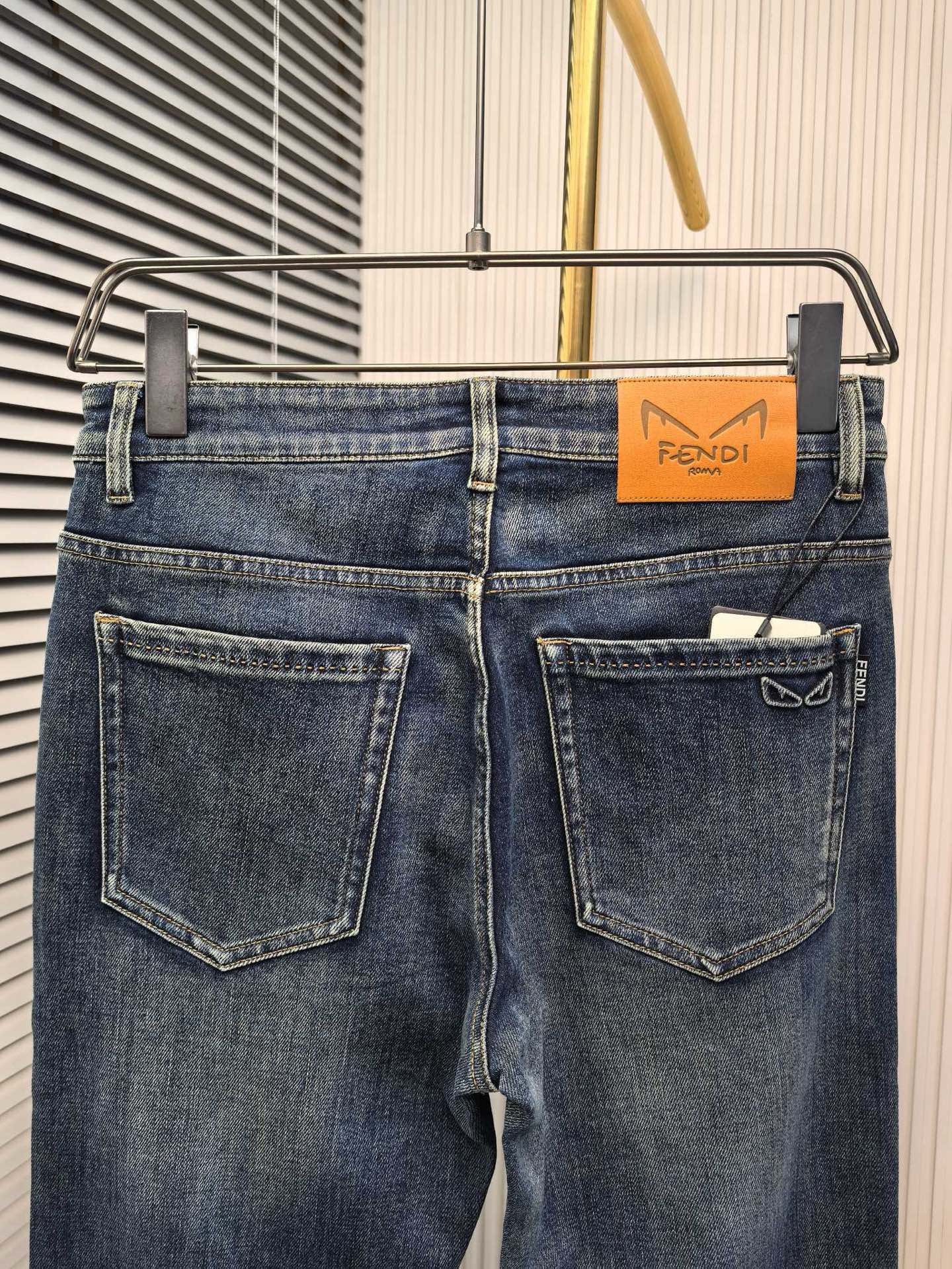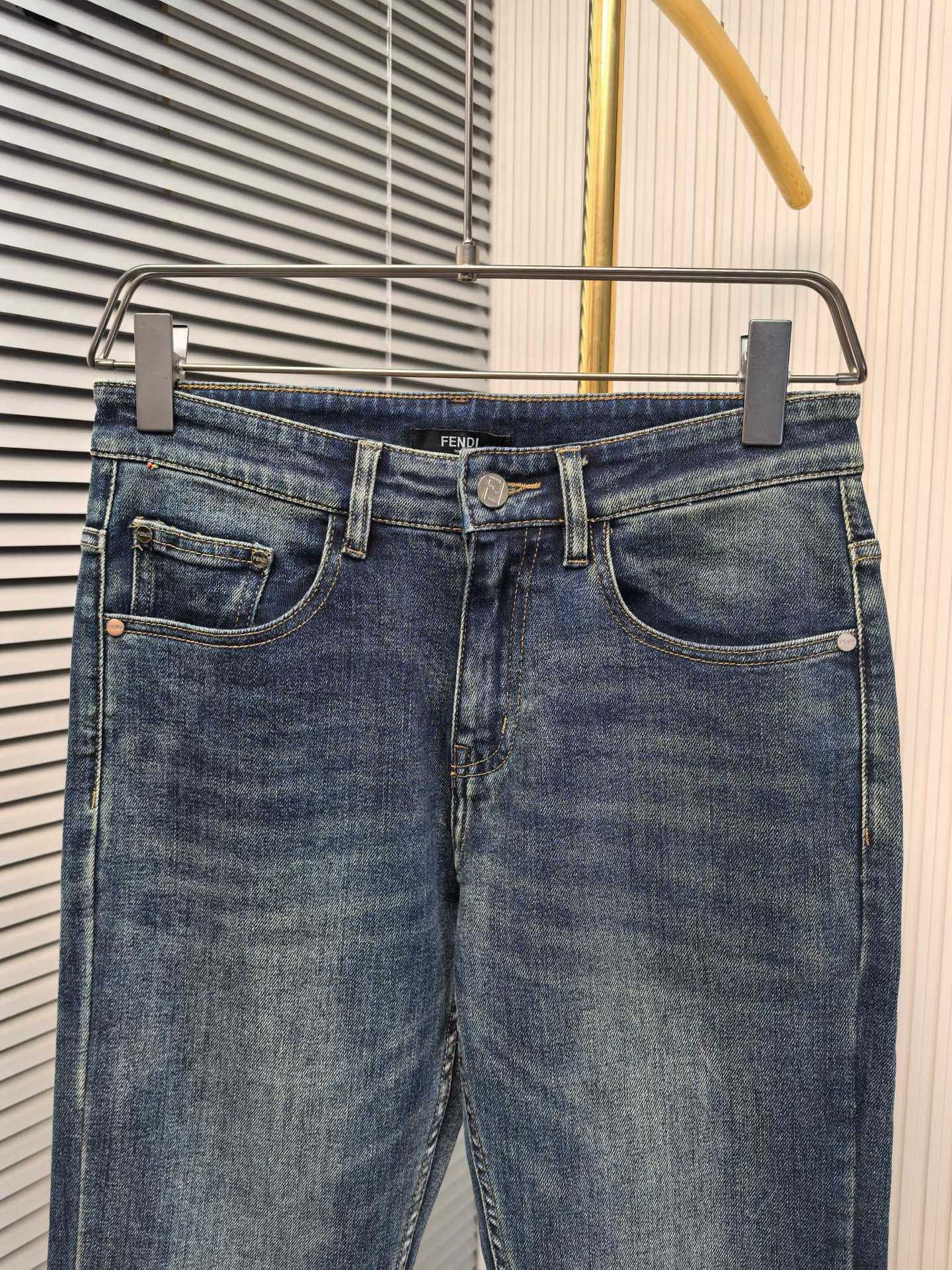 Fendi 2025 early fall men's jeans. Heavy wash custom denim, ultra-soft and breathable. Custom metal logos. Simple design. Sizes 29-40.