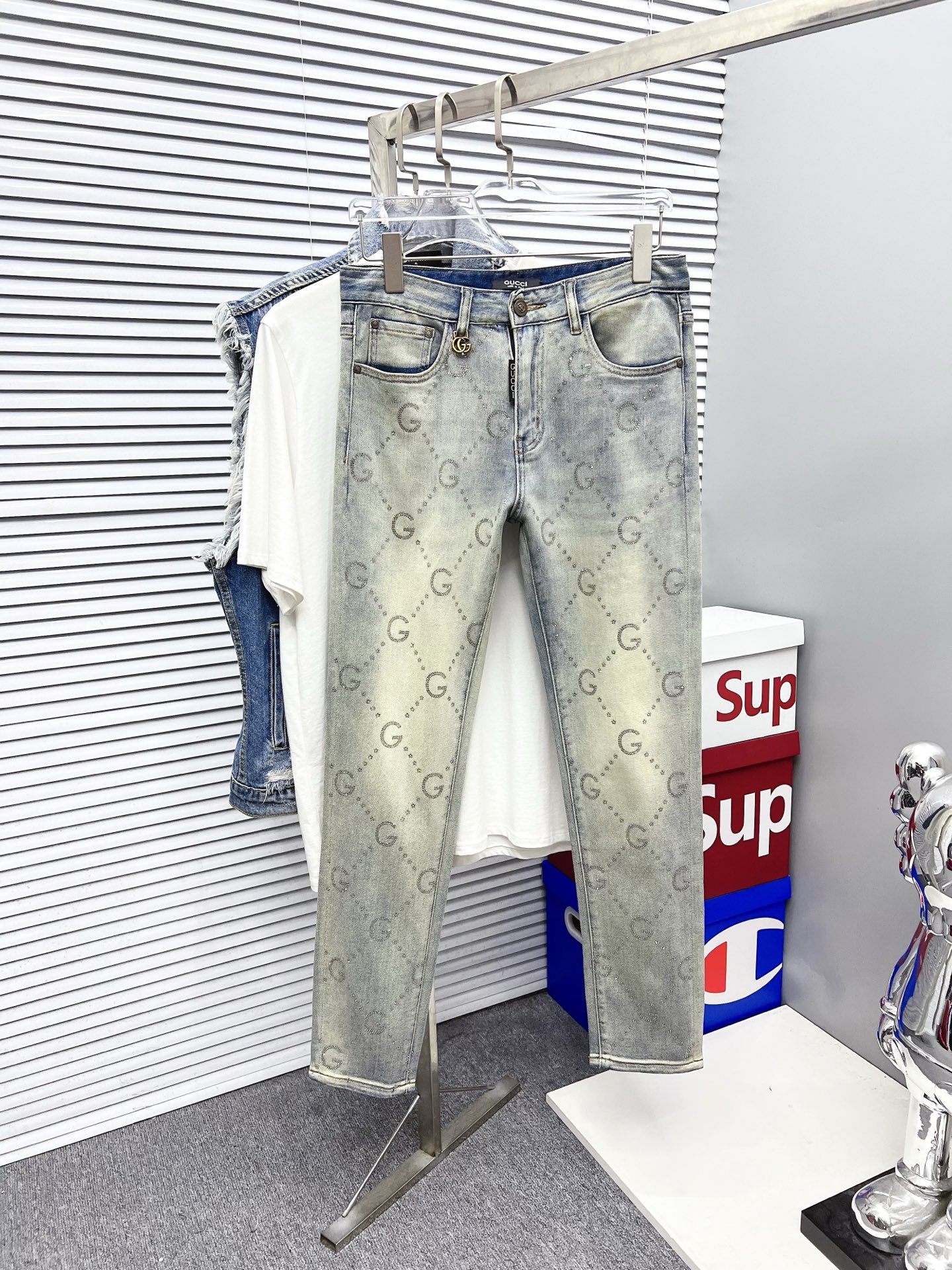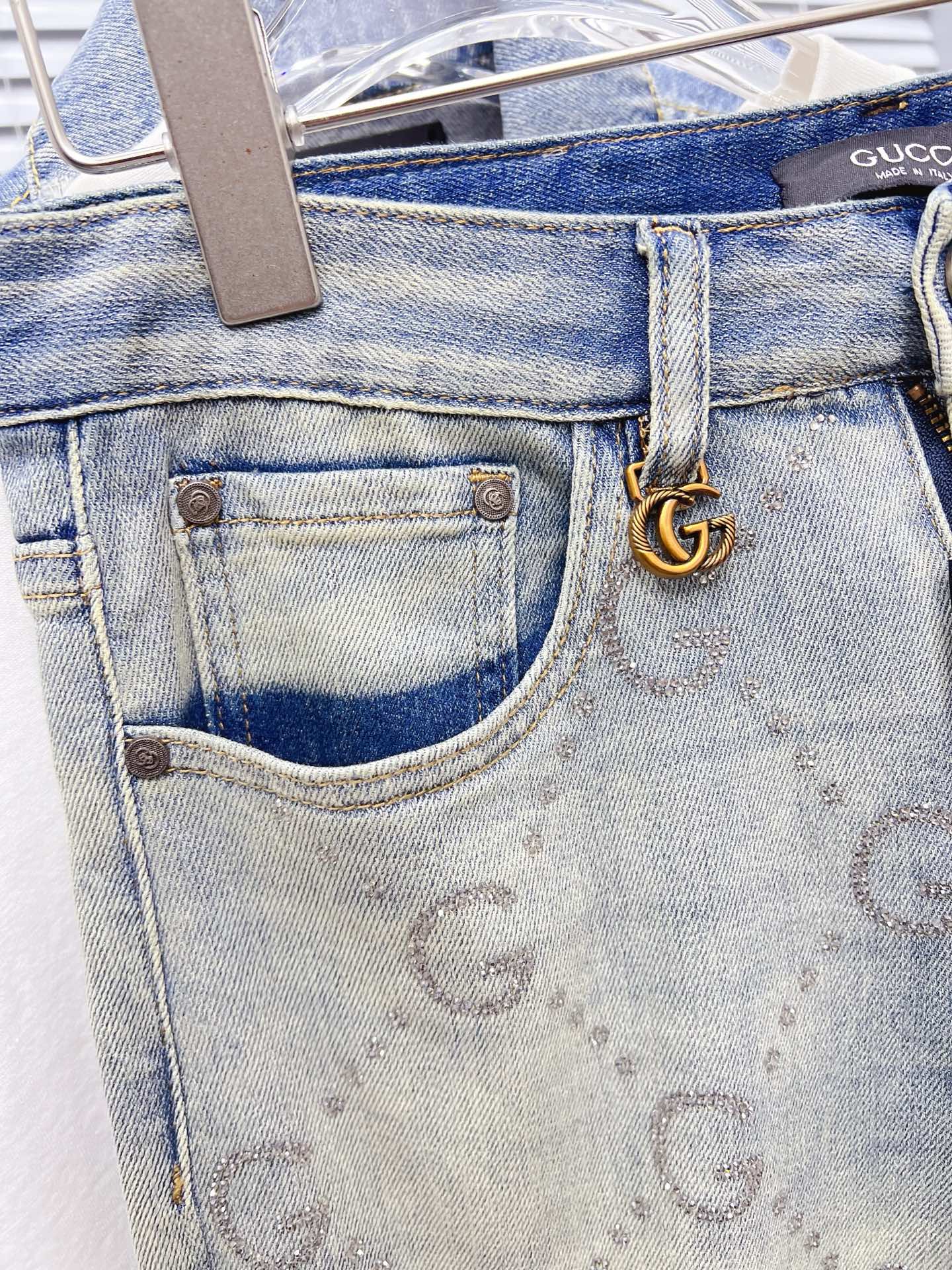 P239 GUCCI men's denim jeans. Premium Japanese 13oz fabric, eco enzyme wash for soft texture & vintage hue. Perfect fit, versatile styling. Sizes 28-38 (excl. 35, 37).