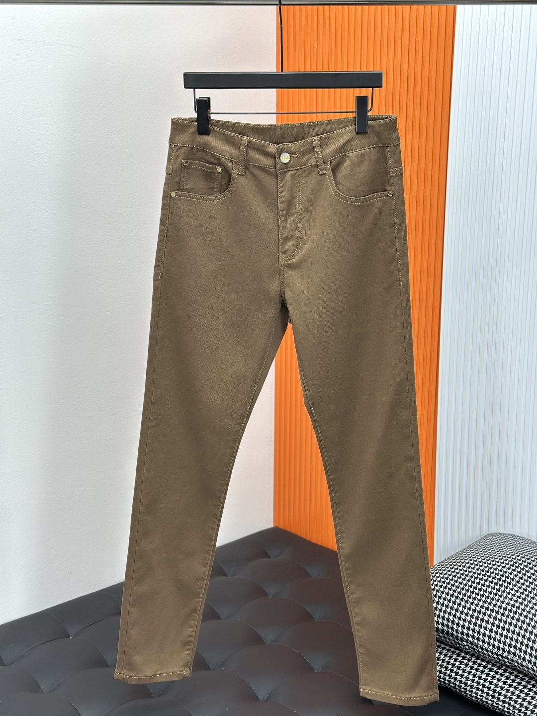 LV Thin Denim Jeans. 2025 latest style. 98% cotton, 2% spandex. Solid, slightly stretchy, comfortable. Simple design, hidden zipper, embossed pockets. Excellent fit.