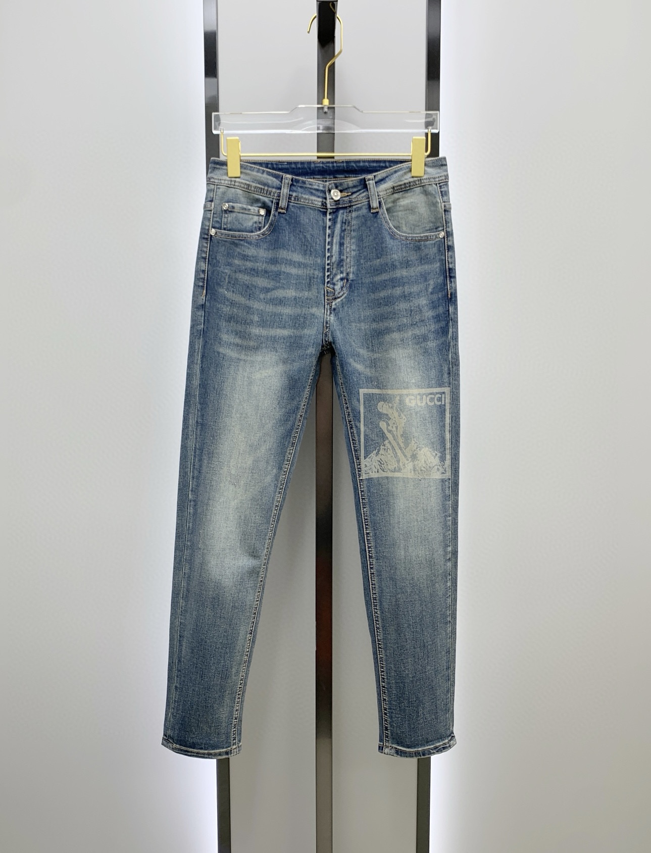 GUCCI men's denim jeans. Premium Japanese 13oz fabric, eco enzyme wash for soft texture & vintage hue. Perfect fit, versatile style. Sizes: 29-38 (excl. 35, 37).