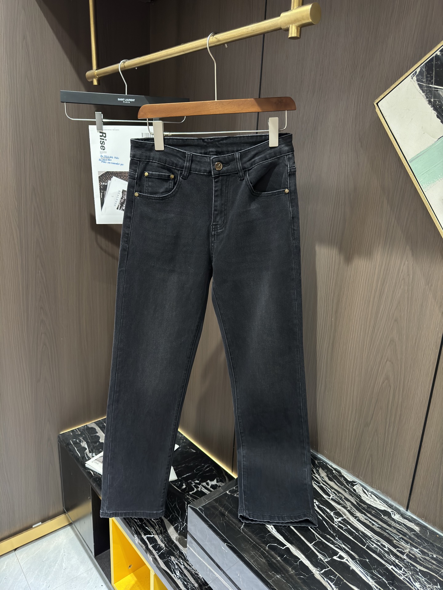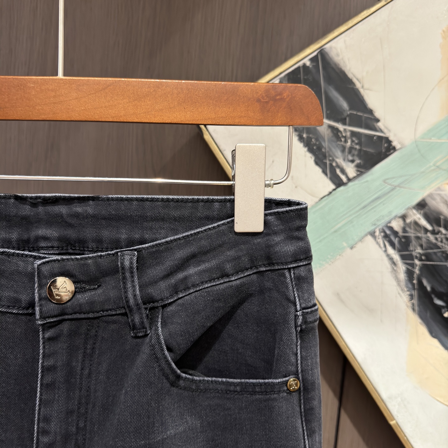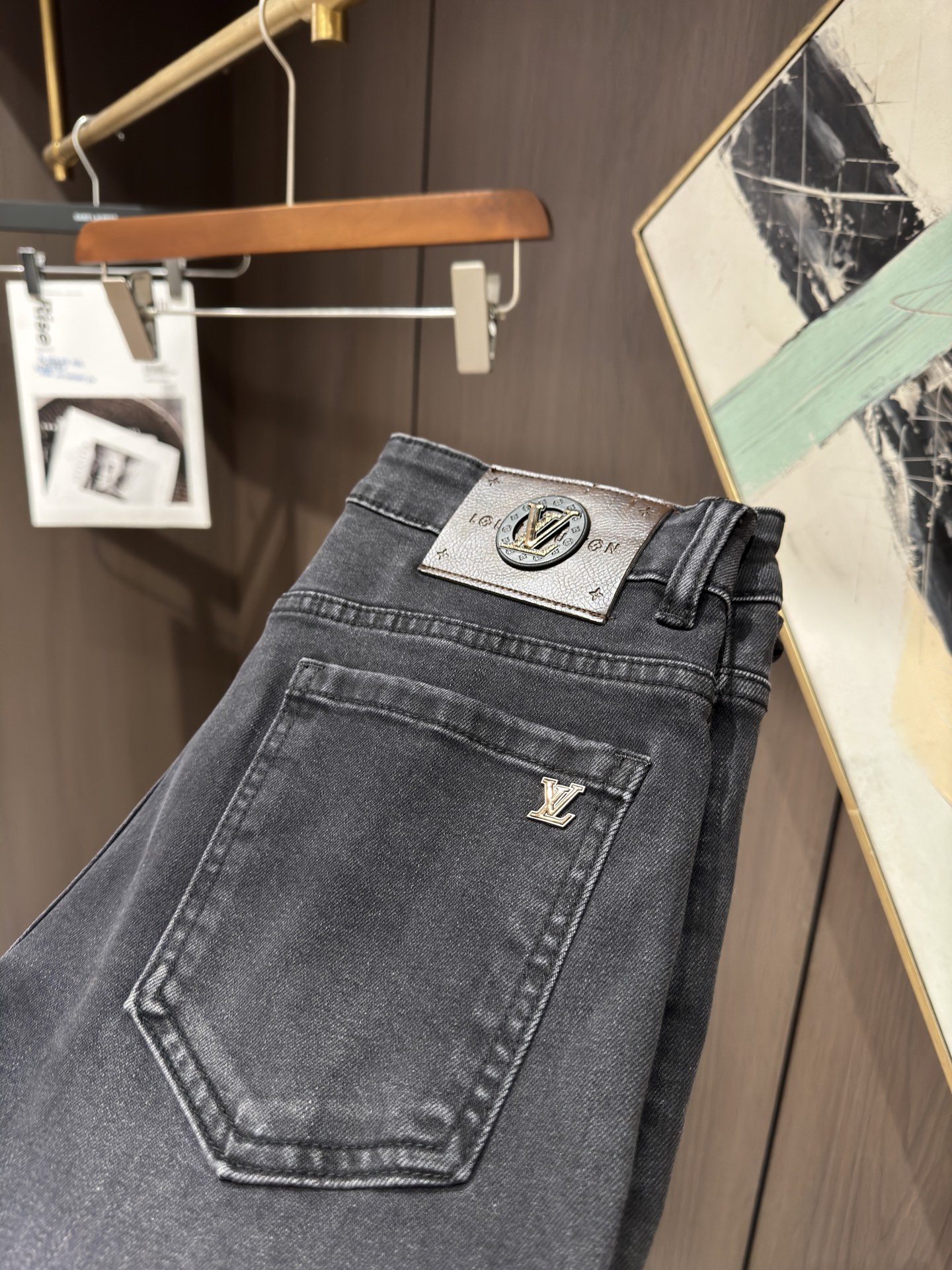 LV Thin Denim Jeans. 2025 latest style. 98% cotton, 2% spandex. Solid, slightly stretchy, comfortable. Simple design, hidden zipper, embossed pockets. Excellent fit.