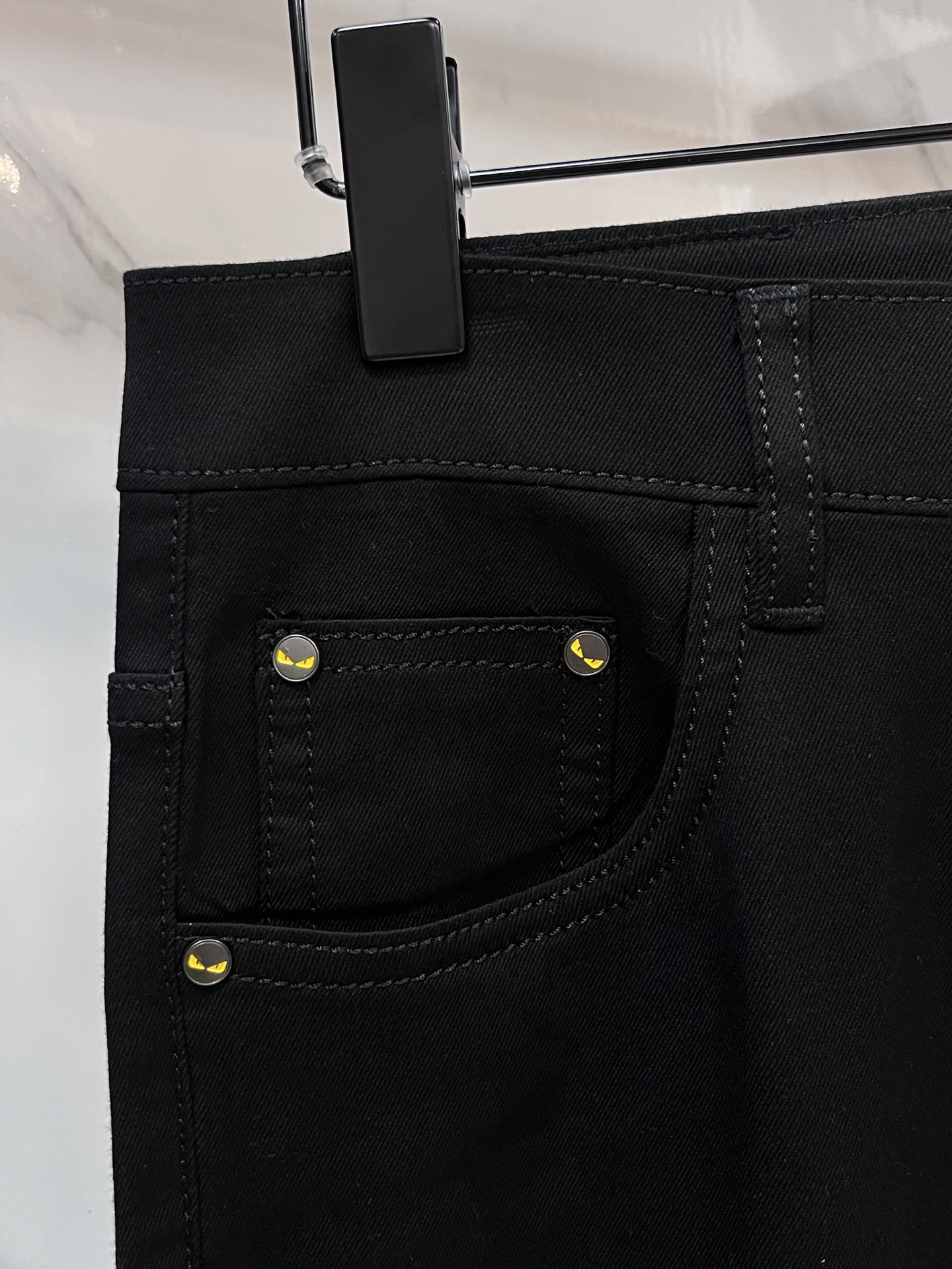 Fendi 2025SS early spring lightweight distressed jeans. Imported stretch denim, comfortable and breathable. High-quality hardware, flattering fit. Sizes 29-38.