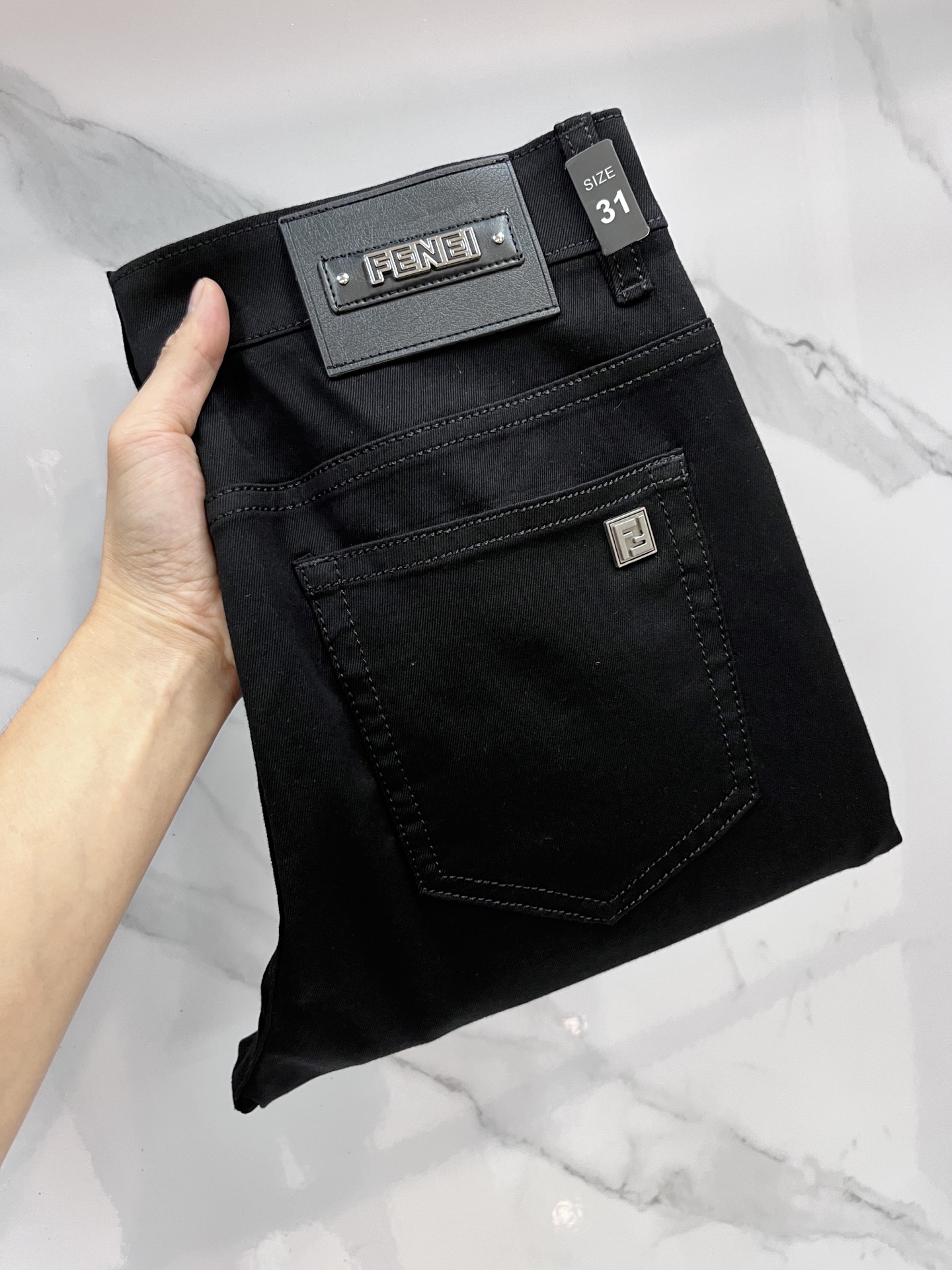 Fendi 2025SS lightweight distressed jeans. Imported stretch denim, comfortable & breathable. Metal hardware, flattering fit. Sizes 29-38.