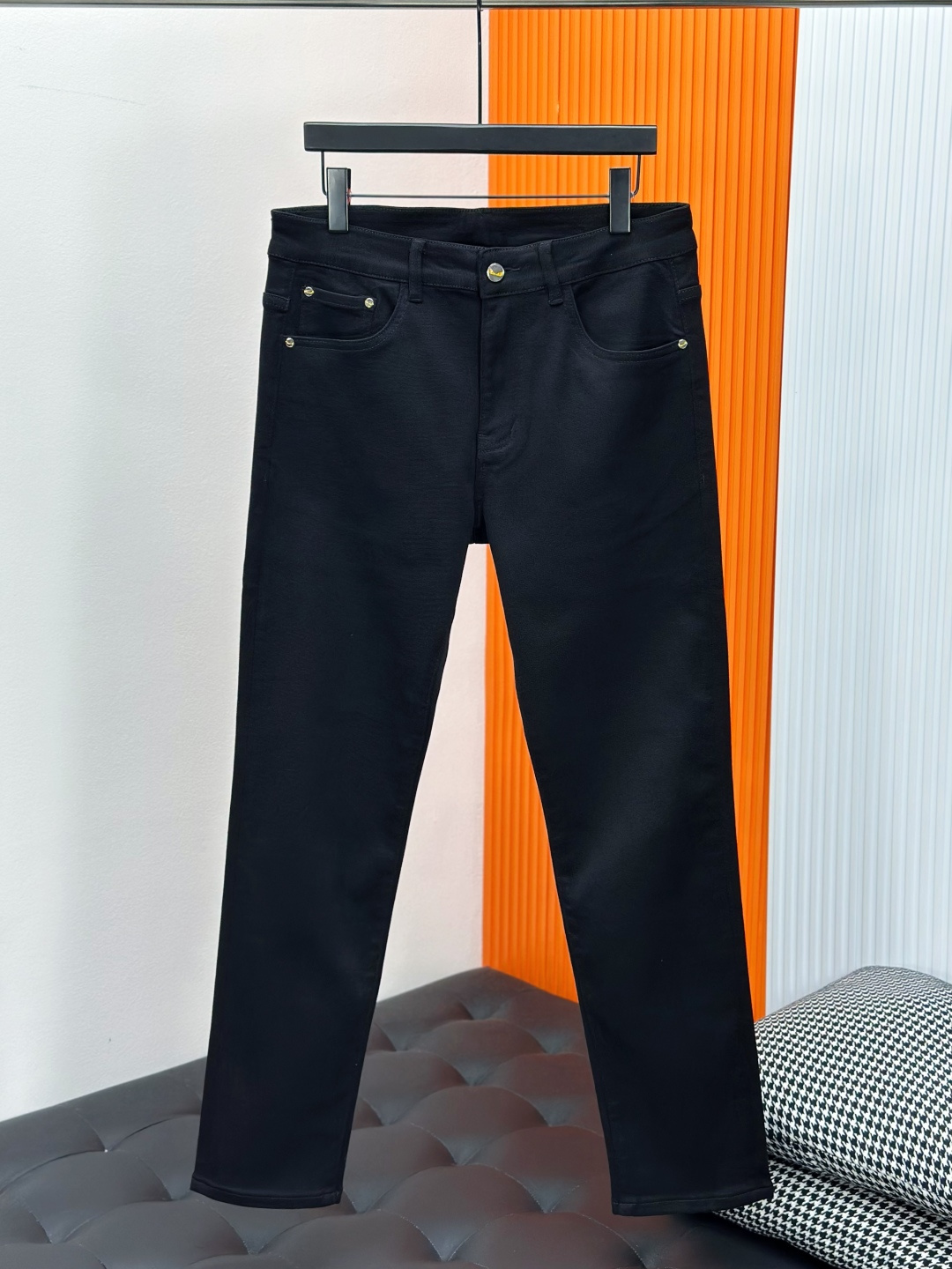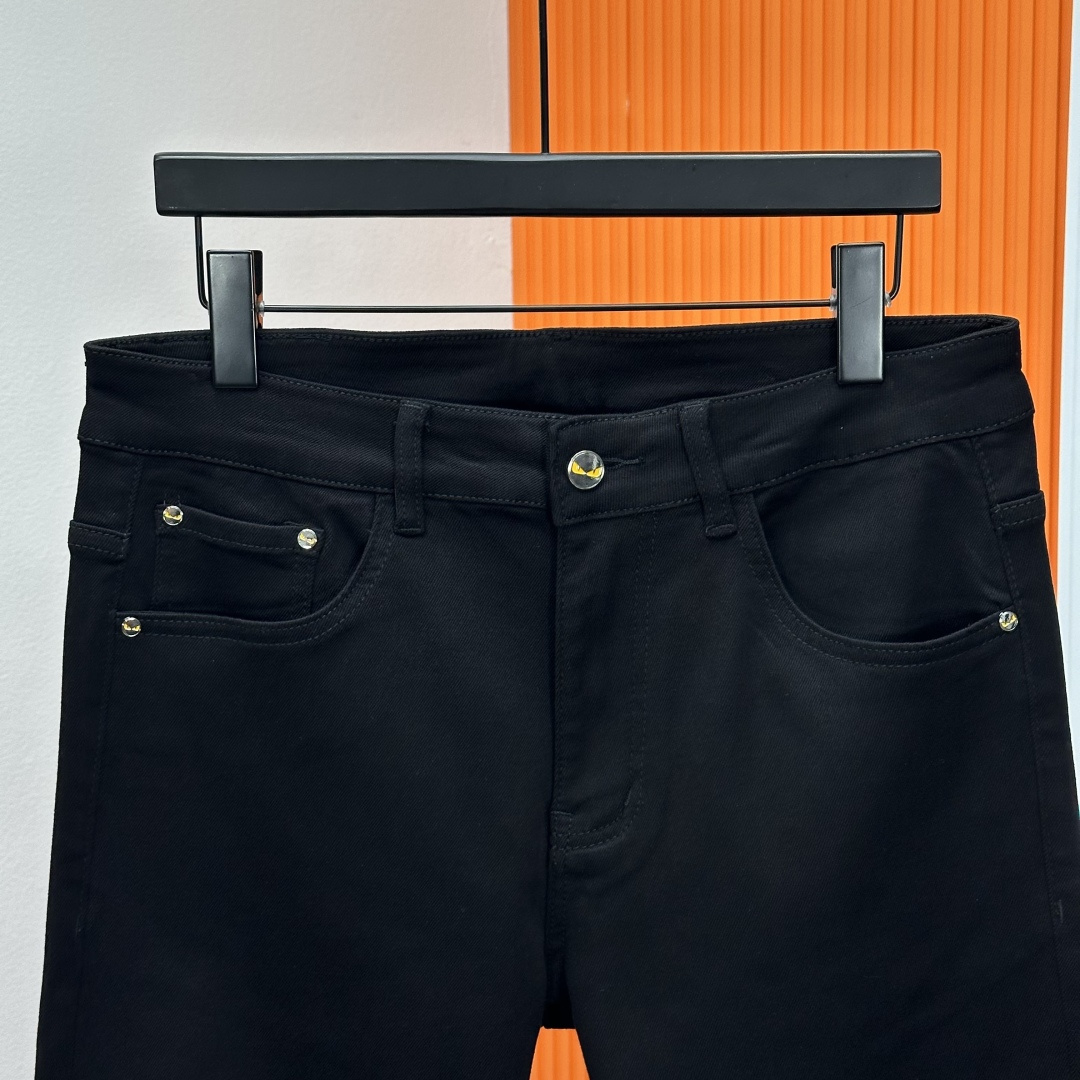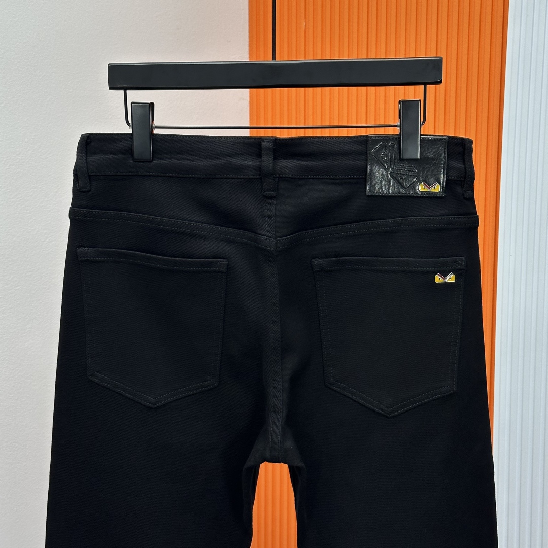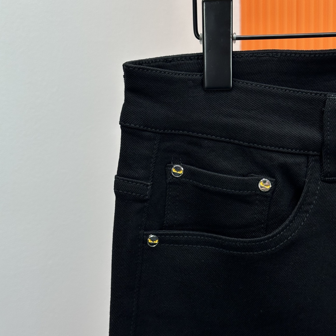 Fendi 2025SS straight-leg jeans. High-end custom design, elastic denim, soft cotton blend, classic hardware. Sizes 28-38 (no 37).