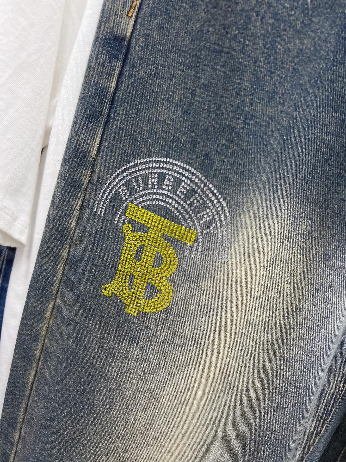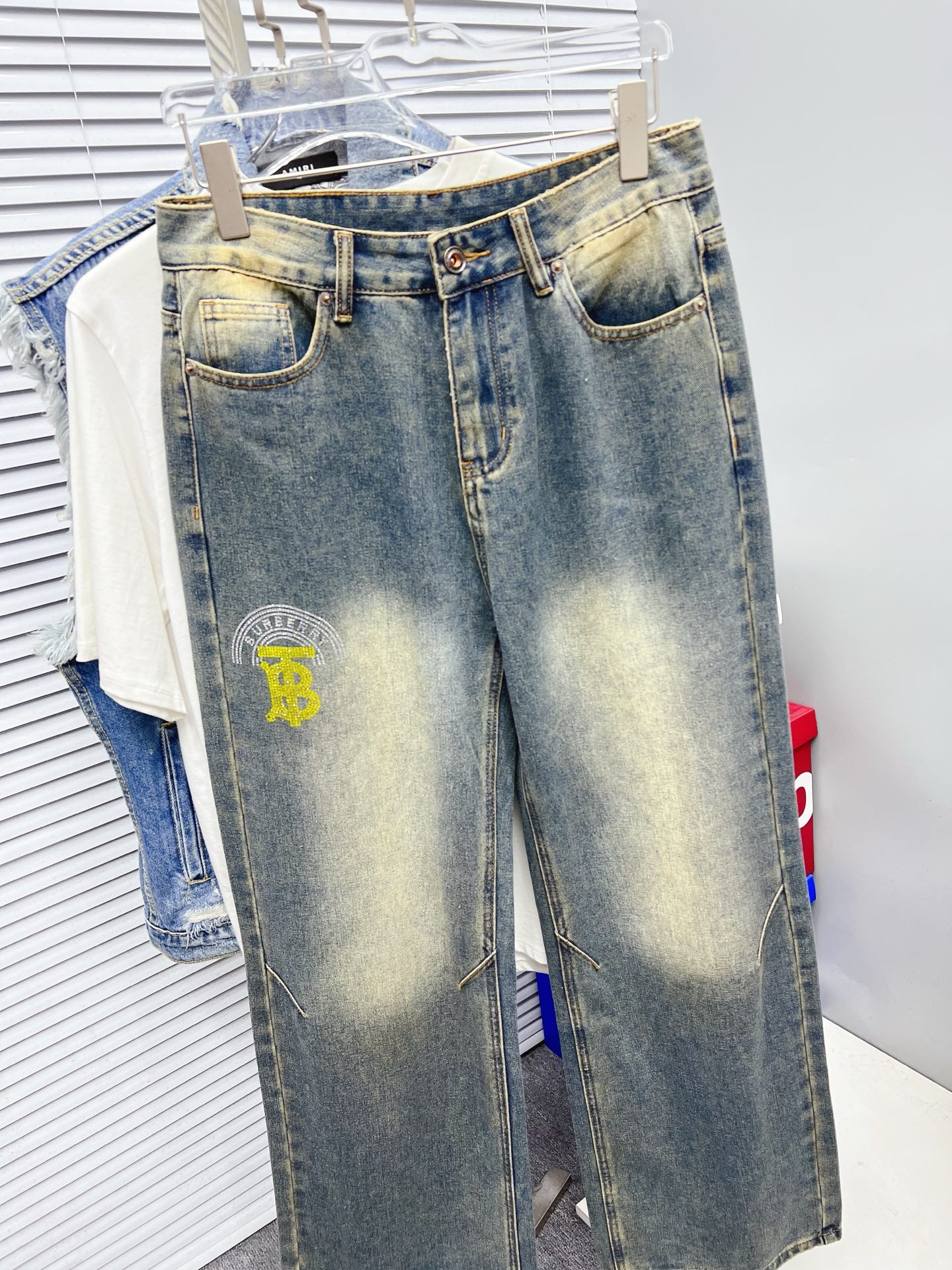 Burberry men's wide-leg jeans. Premium Japanese denim, 13oz, eco-enzyme wash for soft retro finish. Perfect fit, versatile style. Sizes: 29-38 (excl. 35, 37).