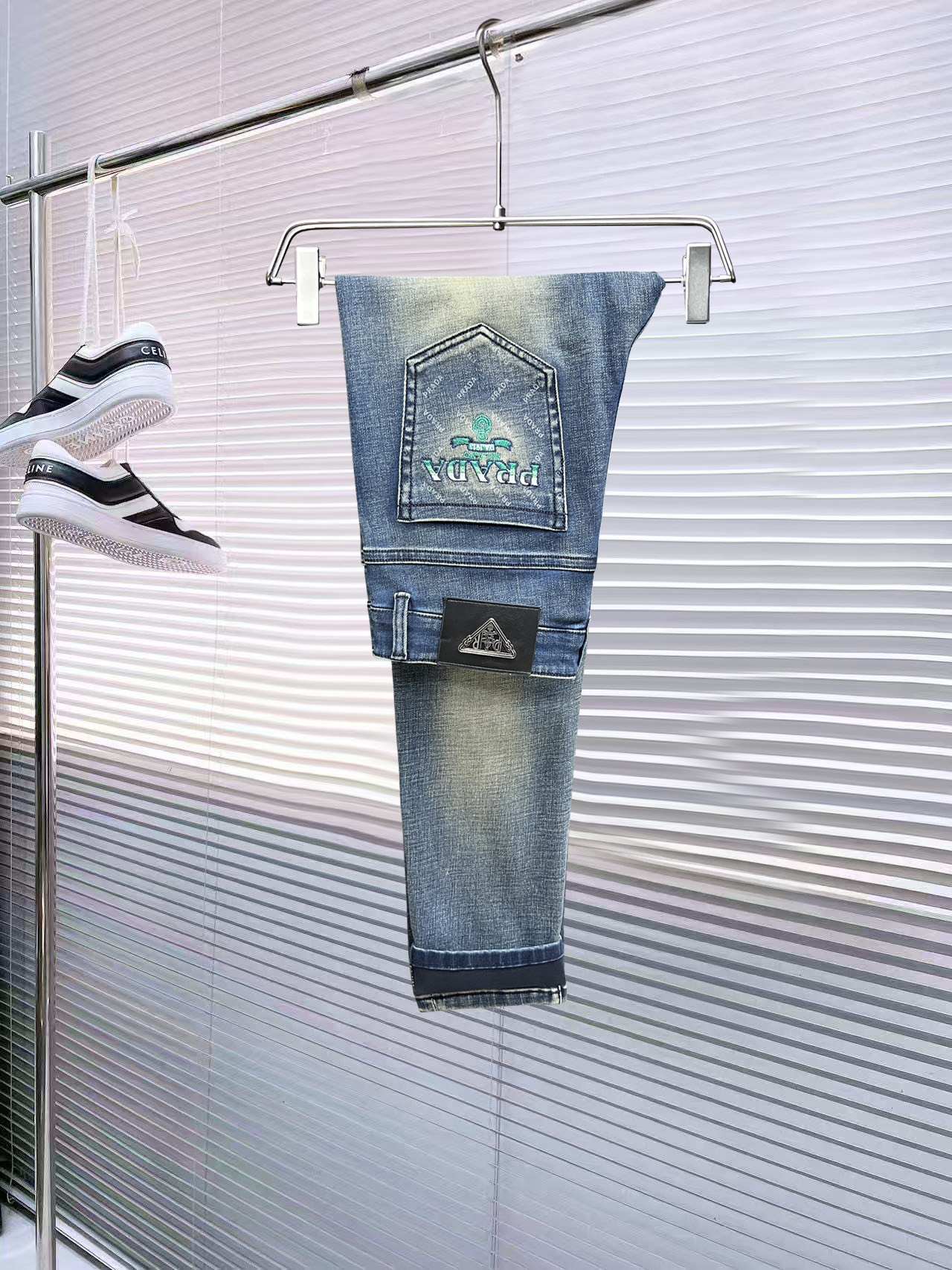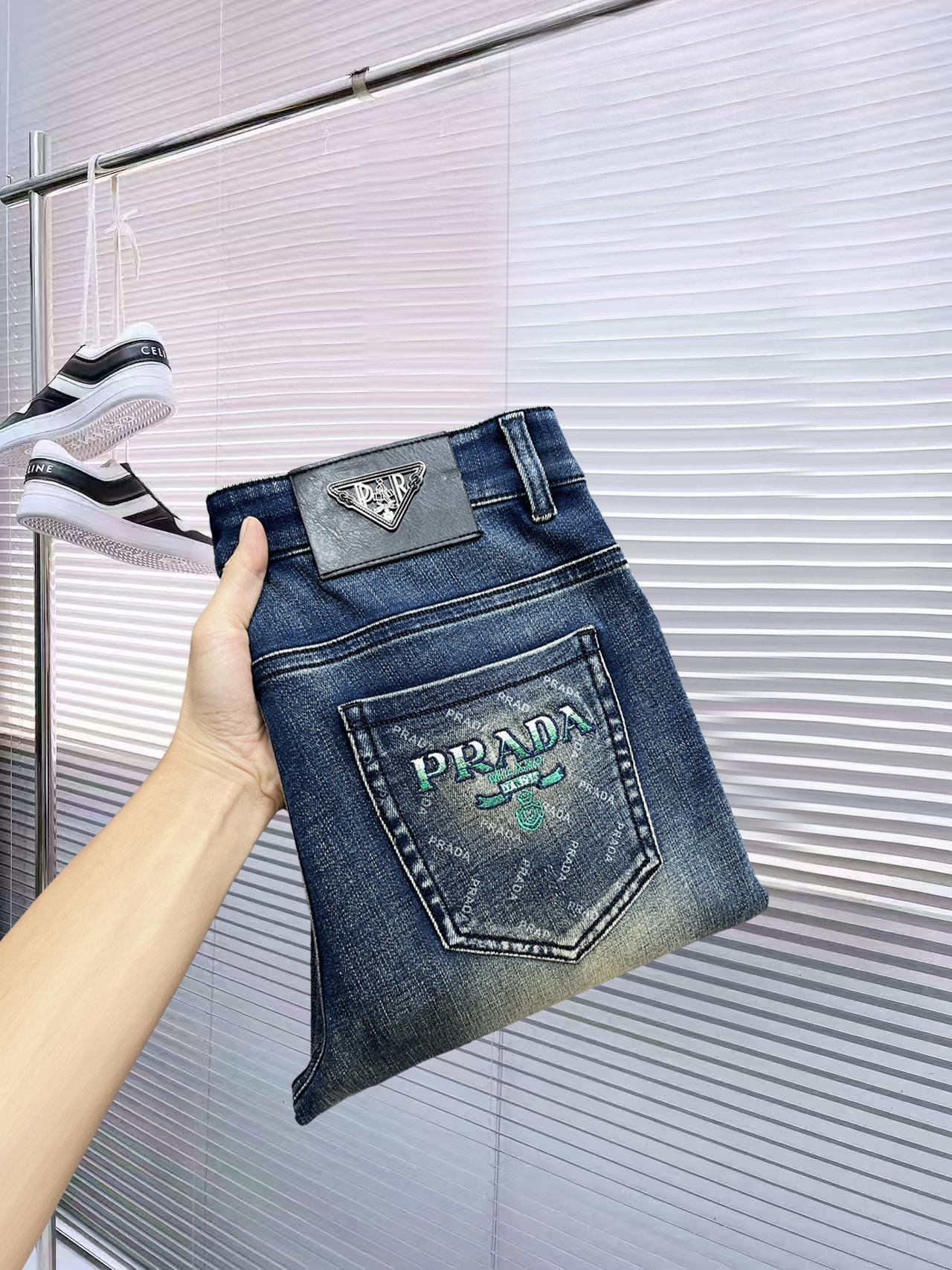 Prada high-end 2025 jeans. New autumn/winter style. Imported cotton denim, comfortable fit. Classic design, versatile. Sizes 29-38.