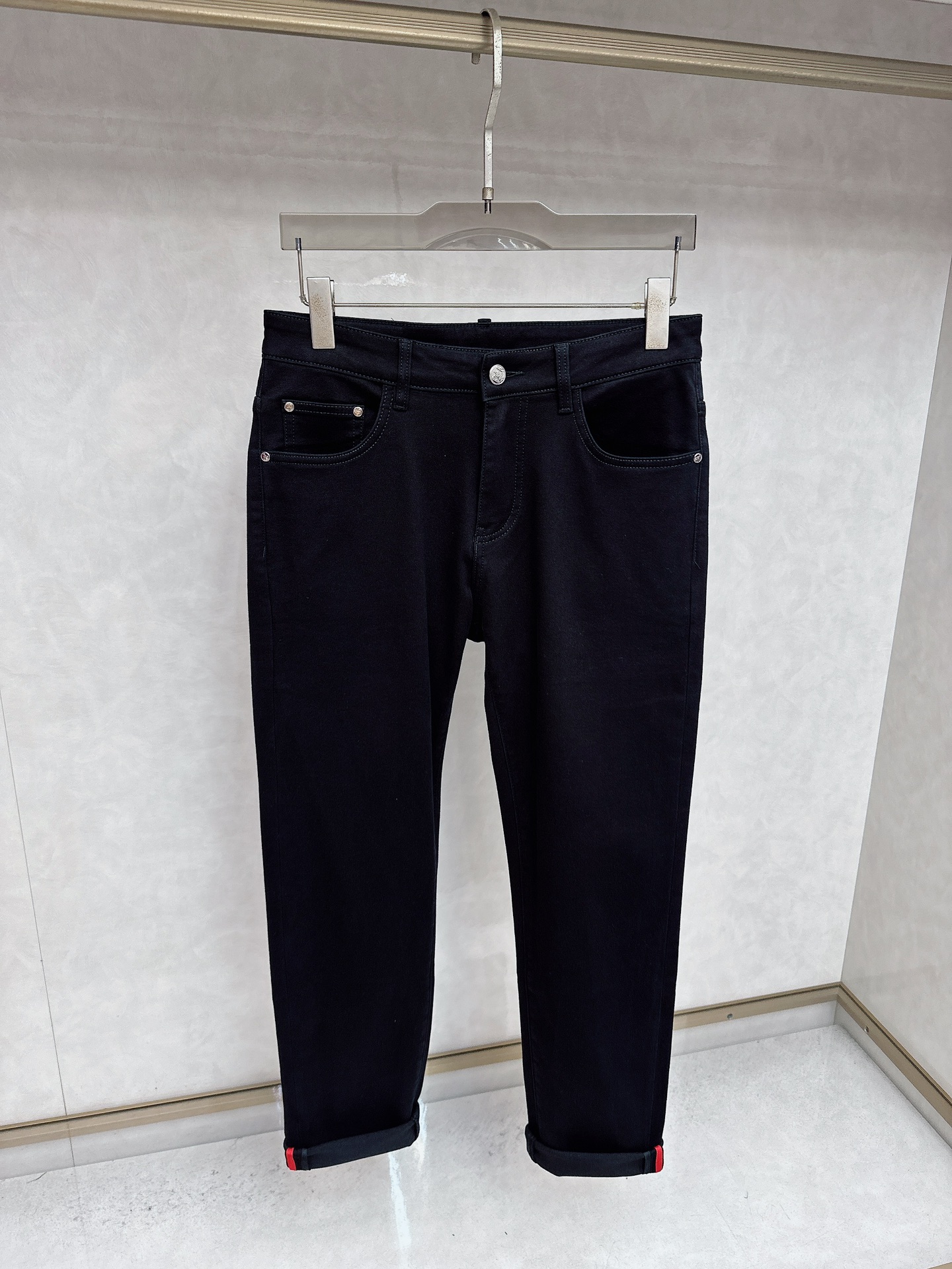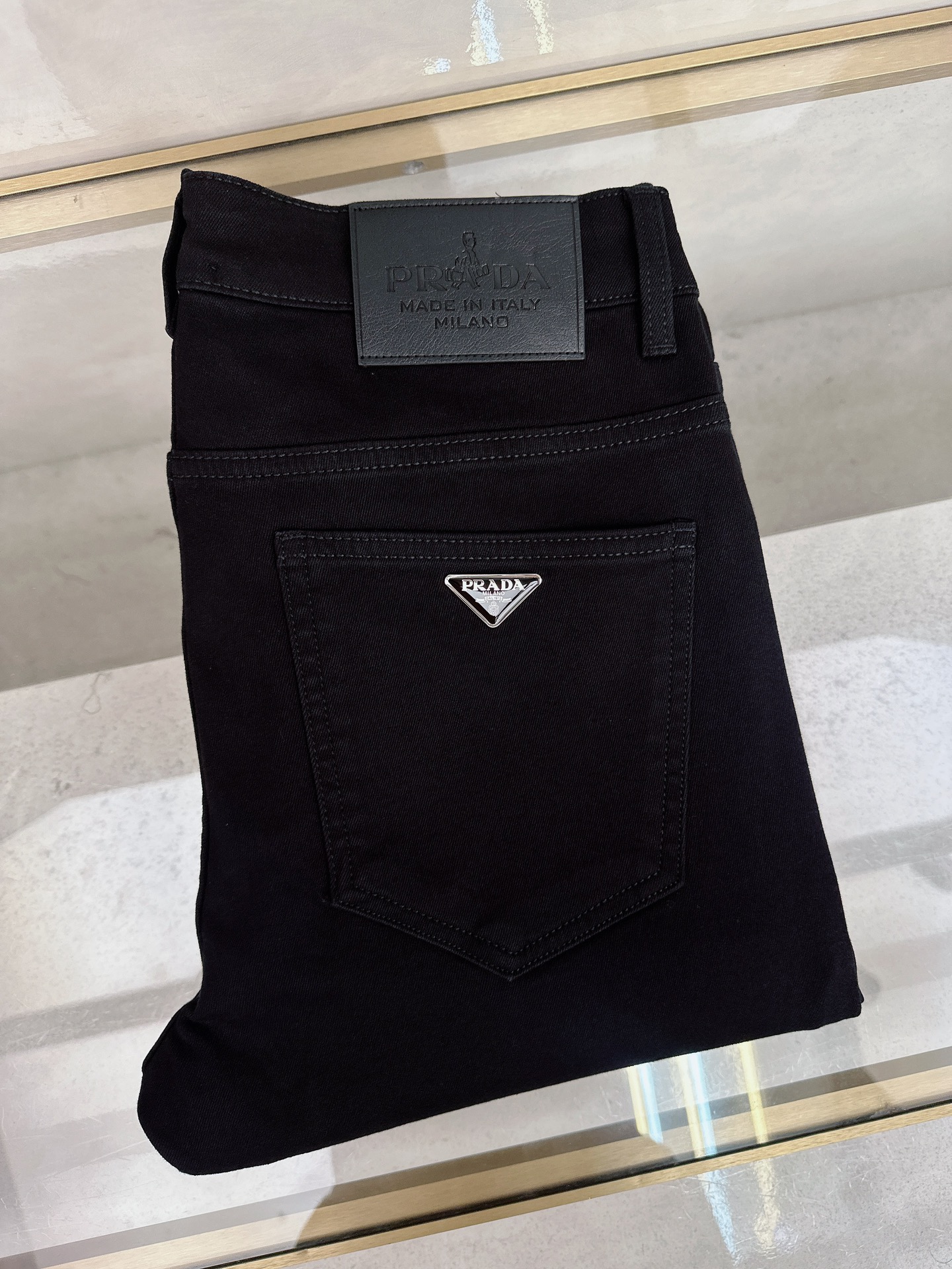 Prada 2025 Fall/Winter high-quality jeans, slim fit with stretch, comfortable. Classic logo, minimalist European style. Sizes 29-38.