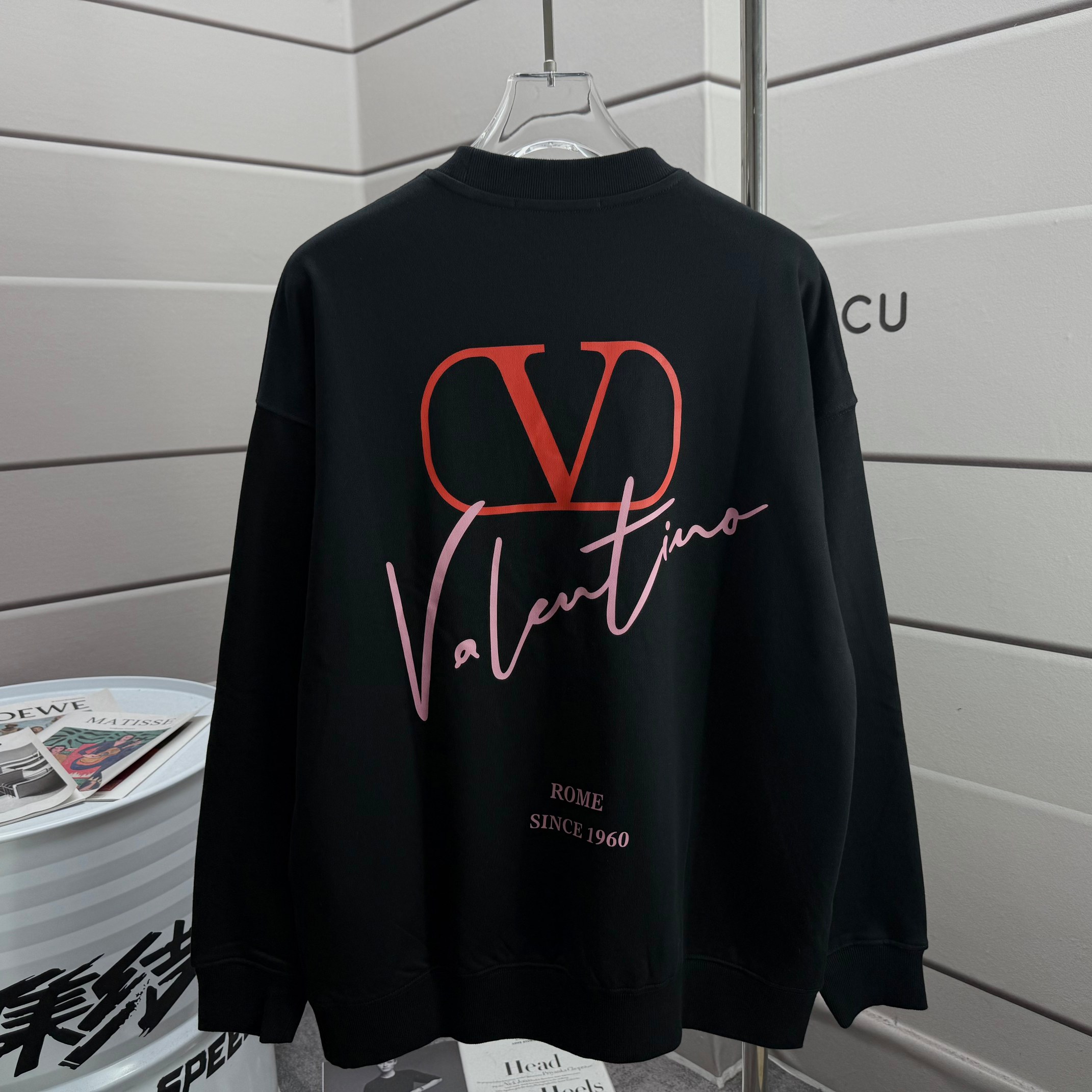 Valentino 2025 Spring/Summer New Arrival Classic Pink Embroidered Letter Pattern Print Custom Terry Fabric Long-Sleeved Hoodie Unisex