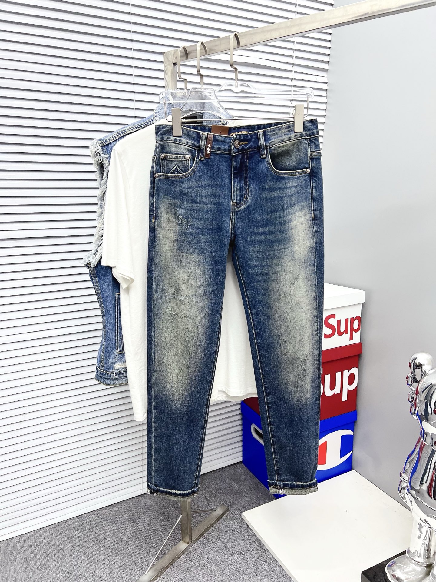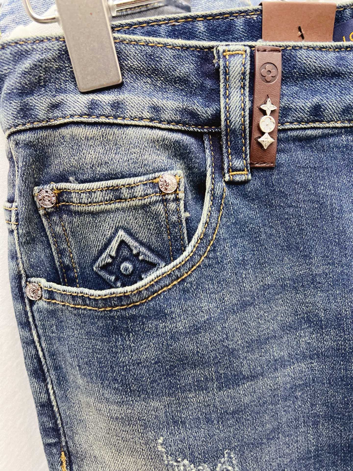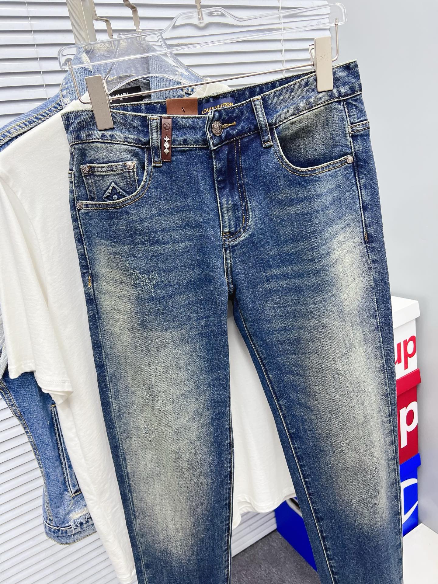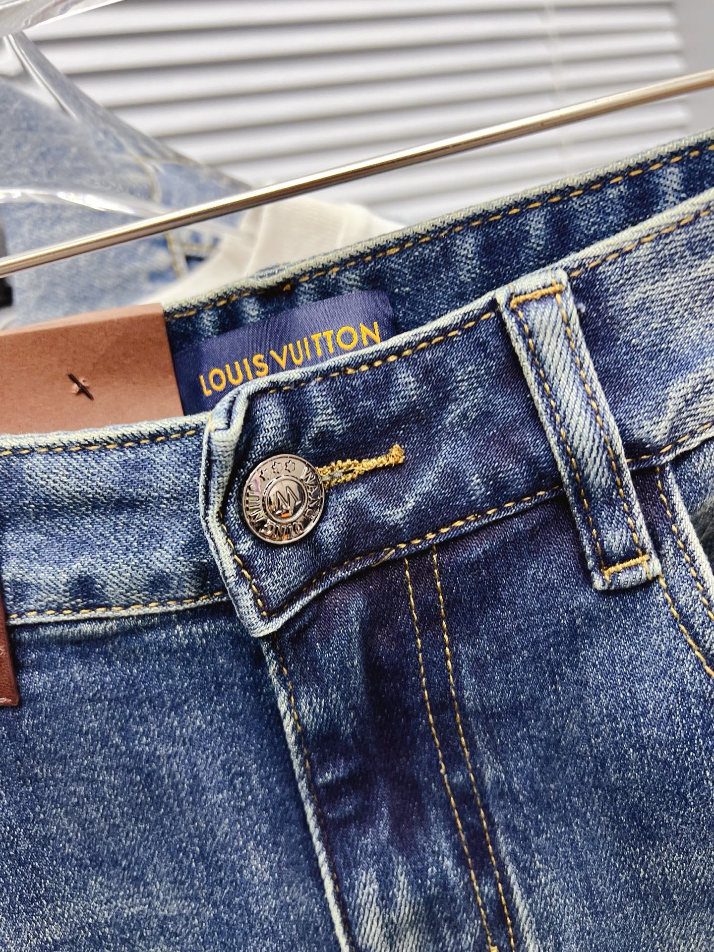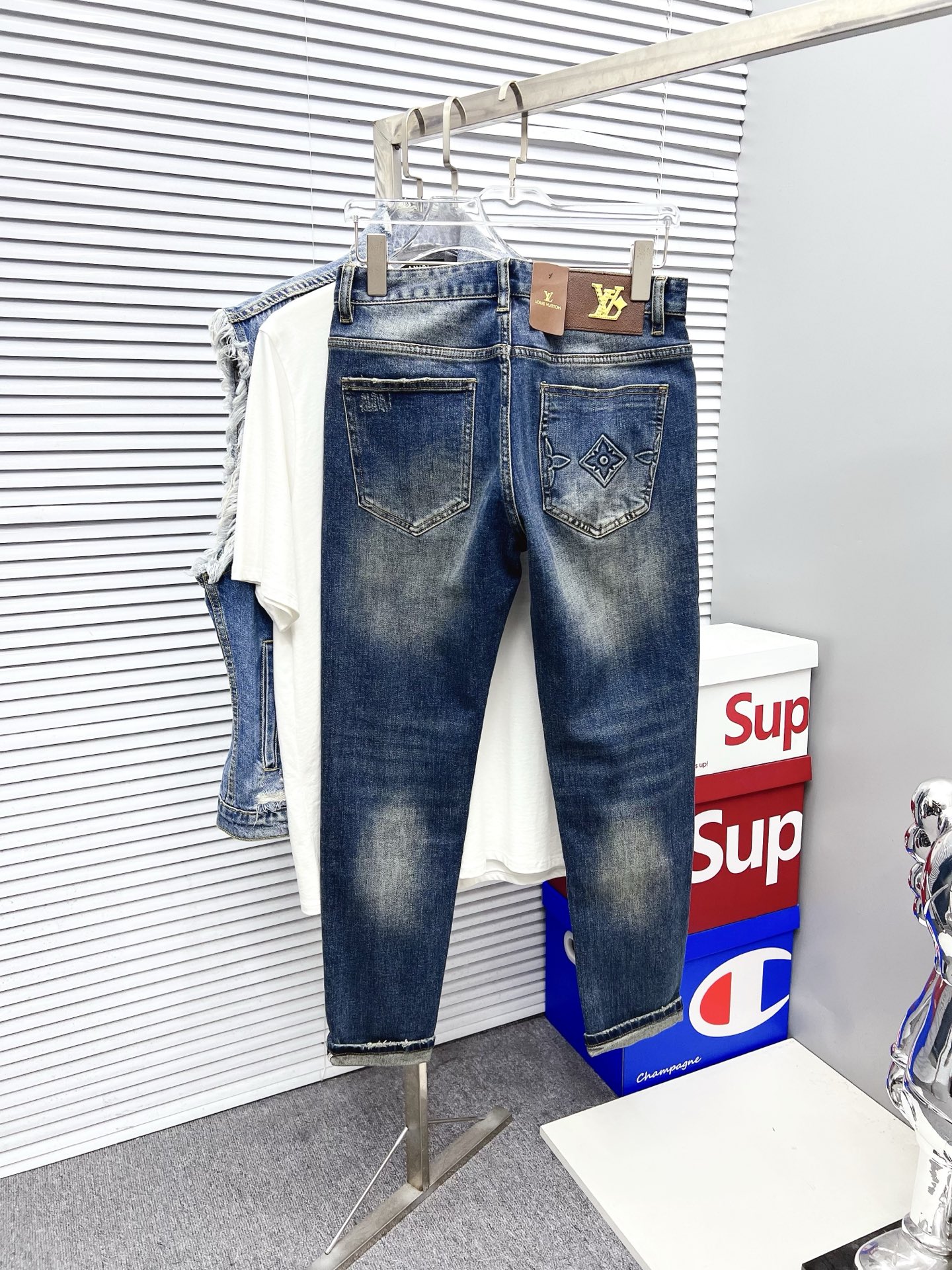 LV men's denim jeans. Premium imported fabric, 13oz Japanese denim, eco-friendly enzyme wash. Soft yet structured with subtle stretch. Flattering fit, versatile styling. Sizes 28-38 (excl. 35, 37).