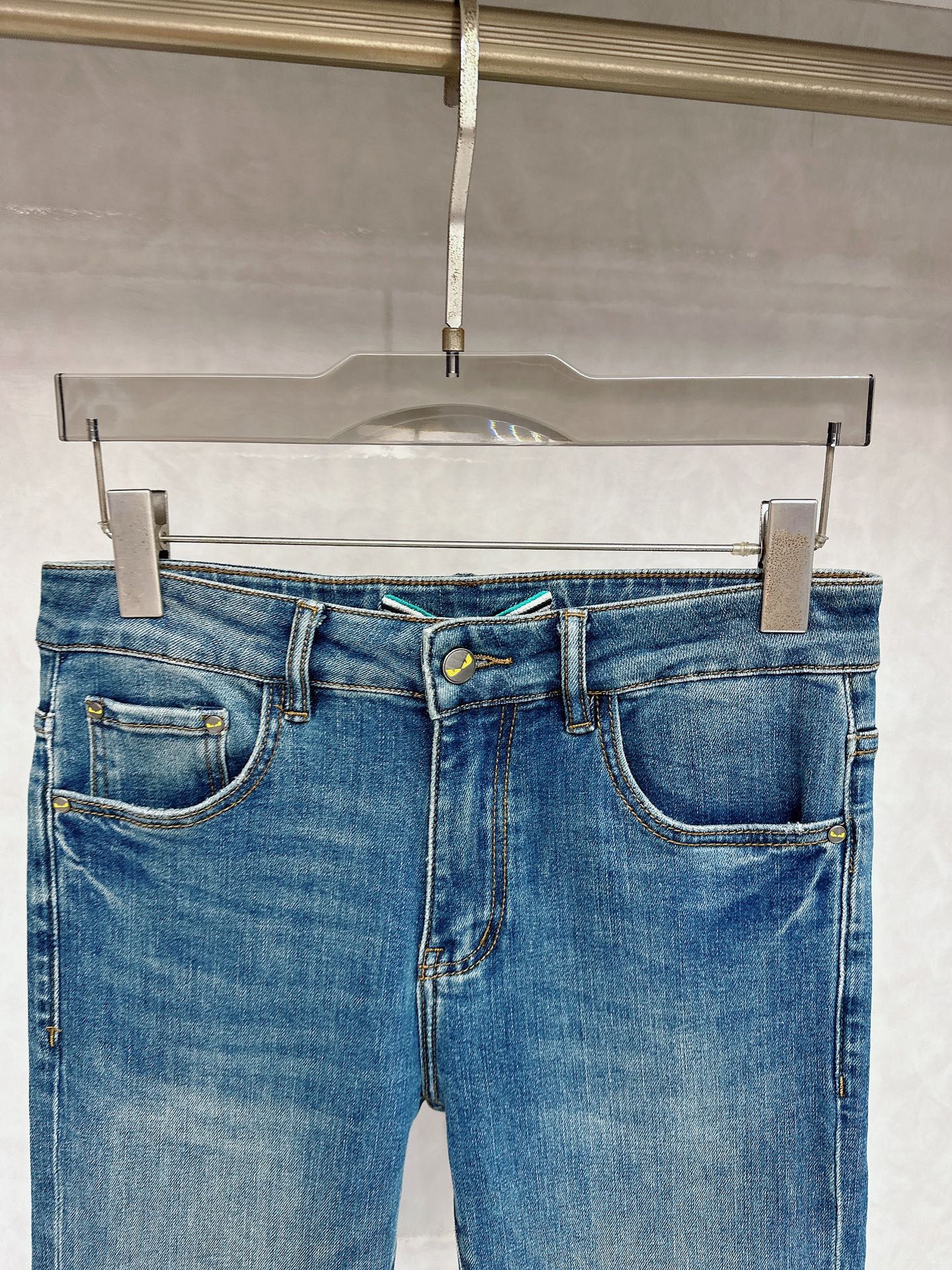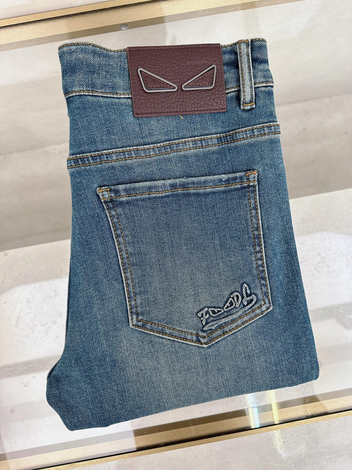 Fendi 2025 autumn-winter men's casual jeans. Custom fabric, soft and comfortable. Heavy wash process, top-notch feel and breathability. All hardware logos custom molded. Sizes 29-38 (no 37).