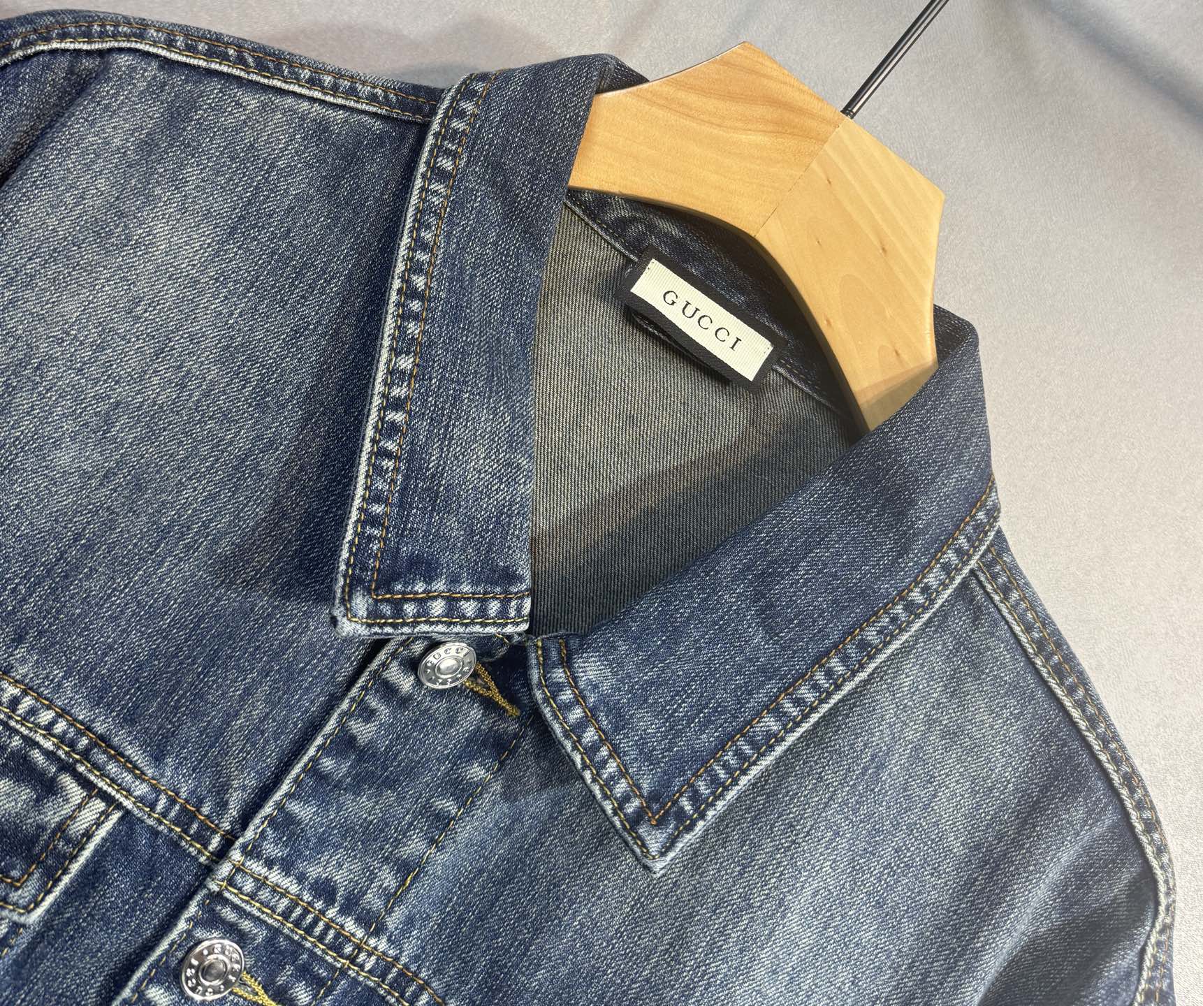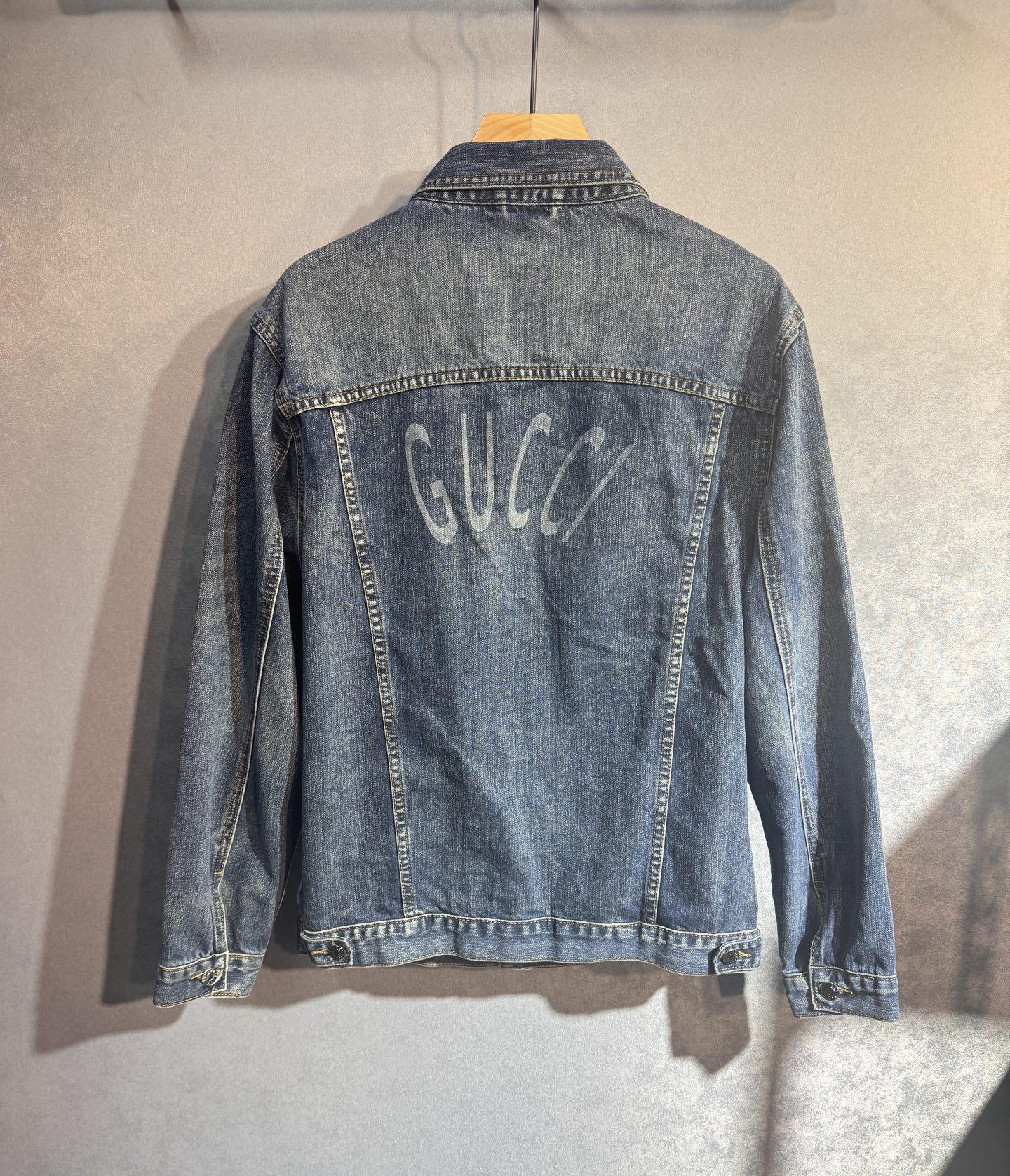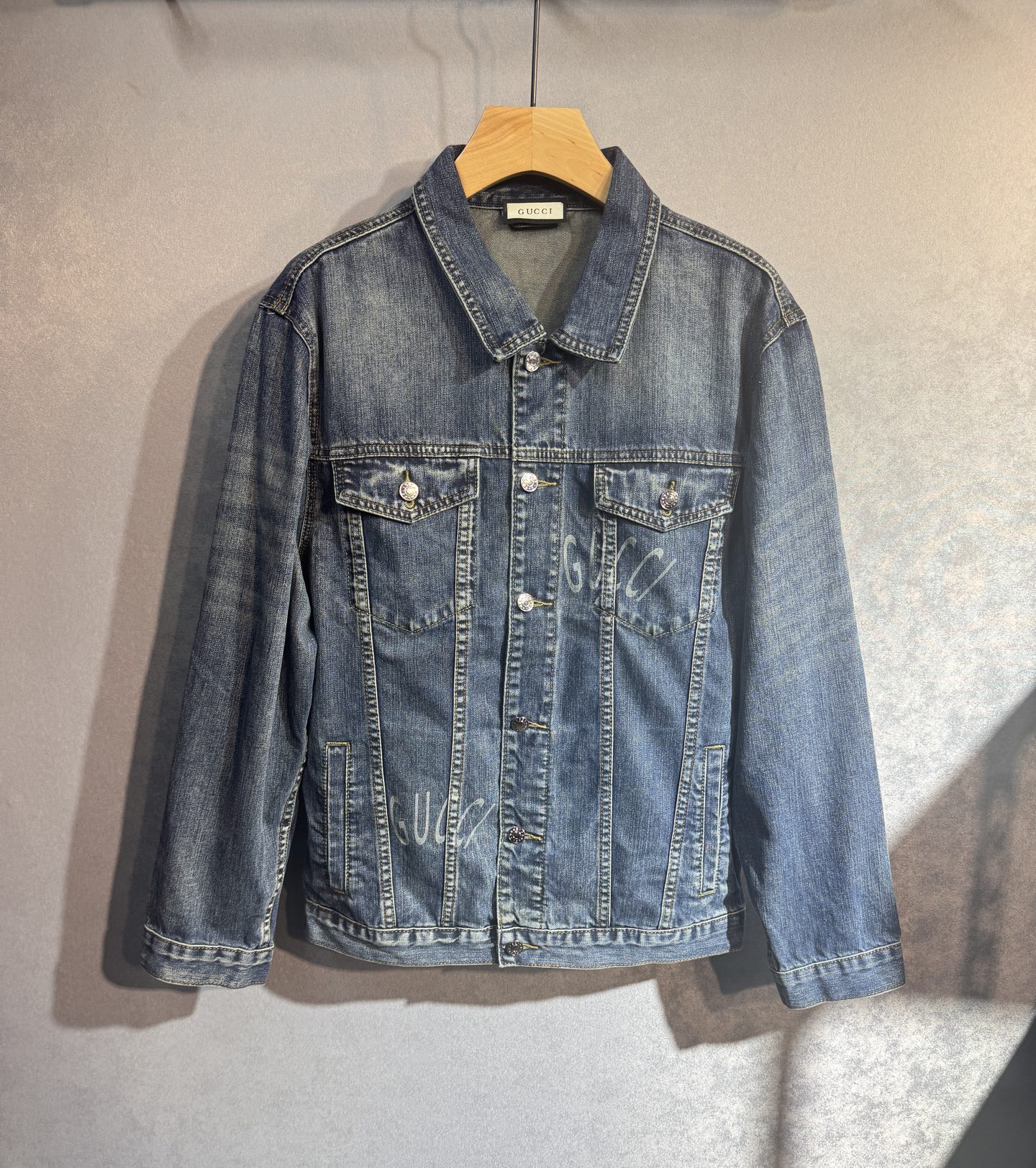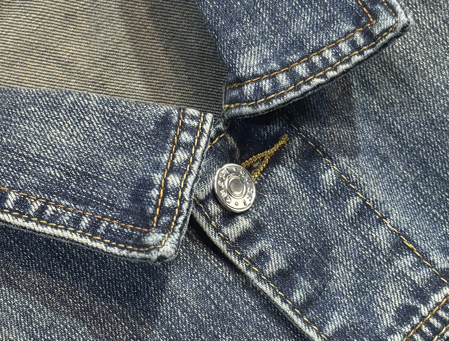 GUCCI autumn-winter denim jacket & jeans. Retro wash, oversized fit, custom cotton, embroidery, logo buttons. Unisex sizes M-3XL. Must-have item.