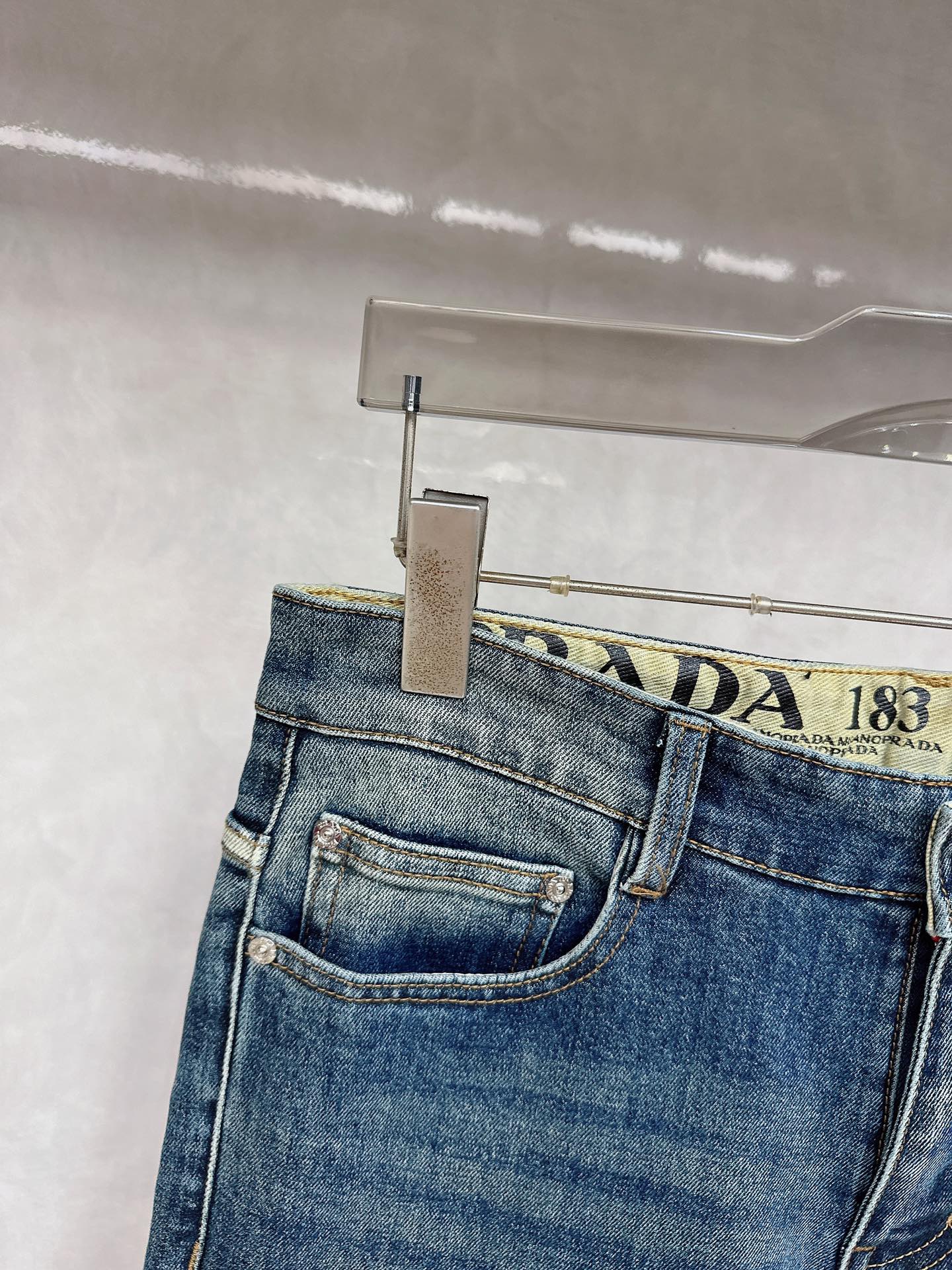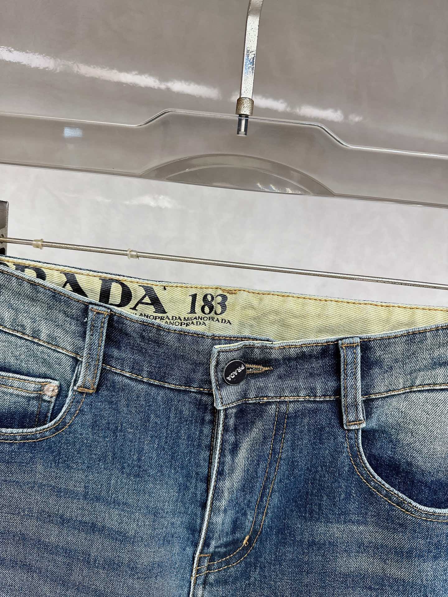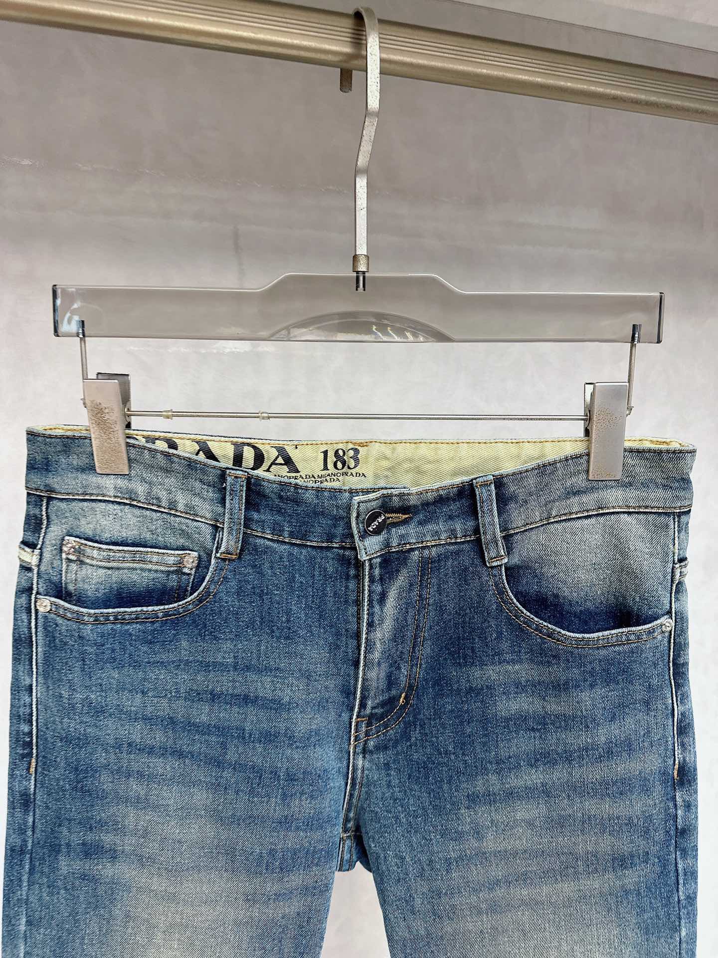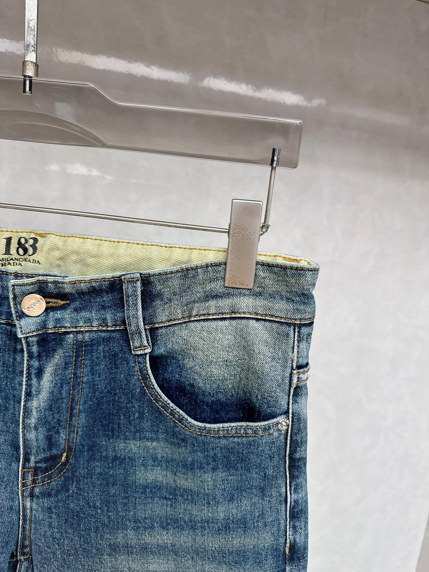 Prada 2025 Fall/Winter high-quality jeans, slim fit with stretch, comfortable and skin-friendly. Excellent cut and details, minimalist European style, luxury. Sizes: 29-38.