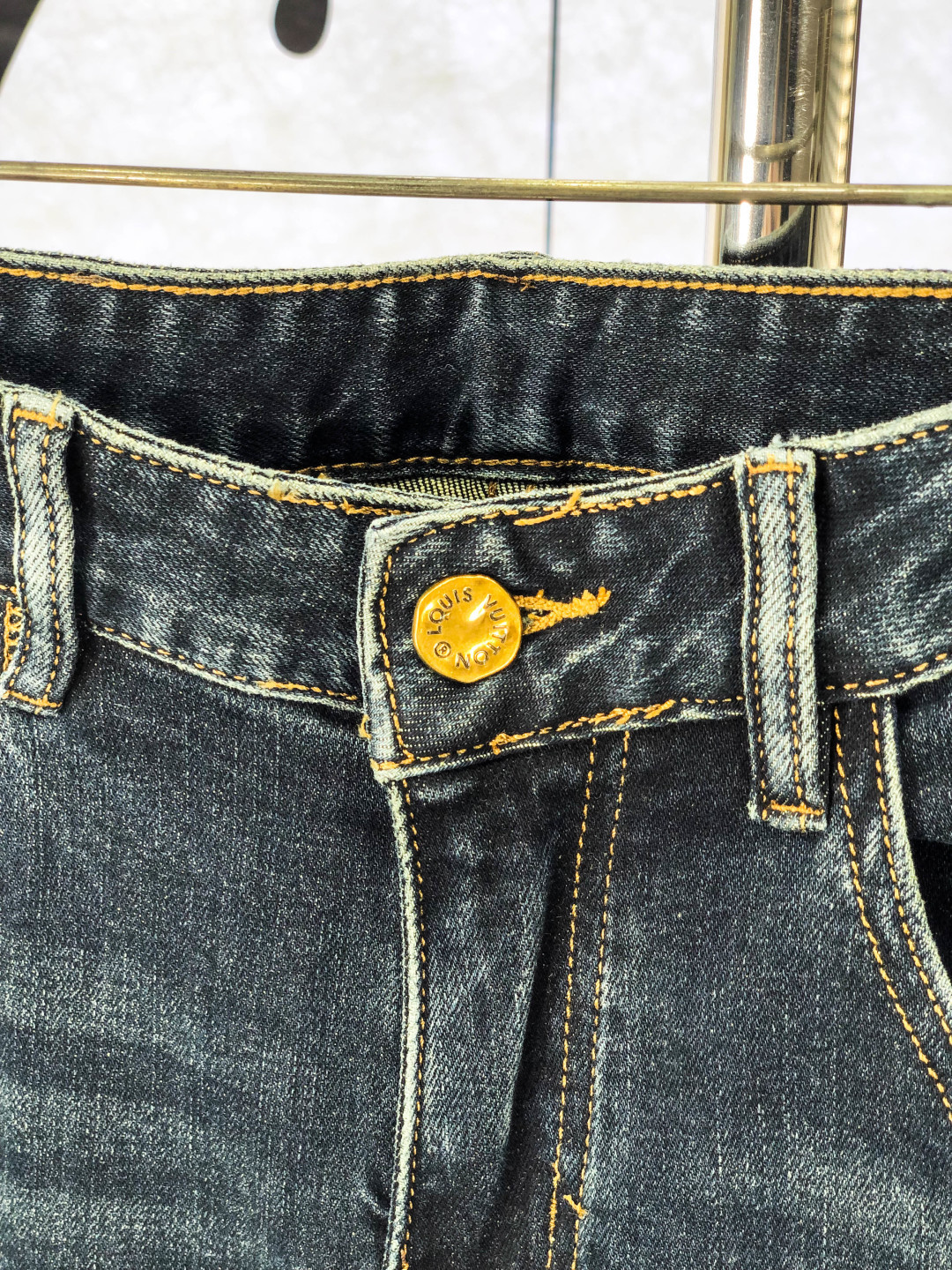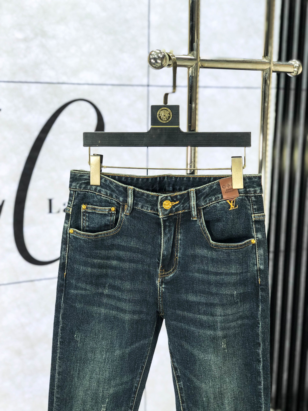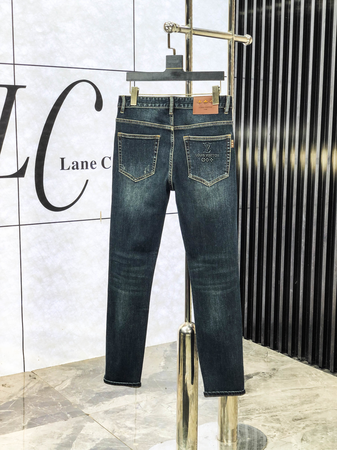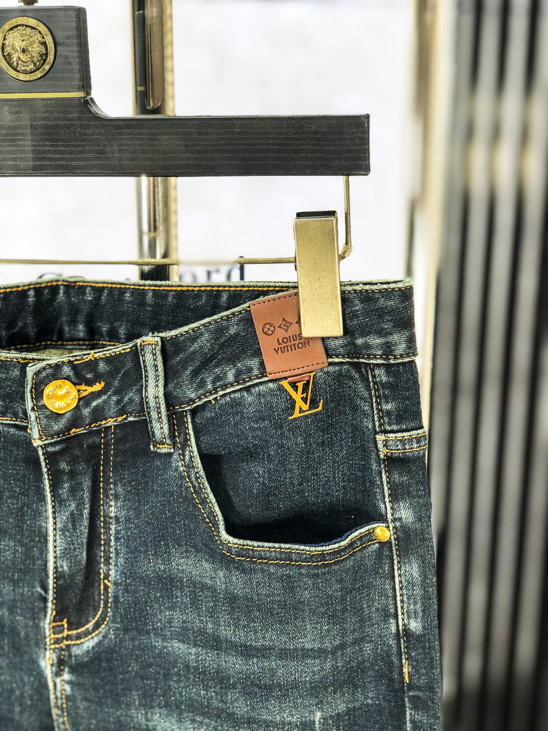 P205. LV-inspired 2025 autumn/winter high-fashion jeans. Ultra-soft denim, light wash. Special fine cotton blend, comfortable. Casual, relaxed style. Traditional hand-rubbed craft, stone-washed. Sizes 29-38.